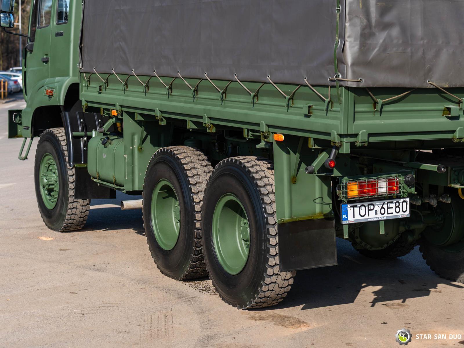 STAR 266 M2 6x6 The price listed in the advertisement is an example of an initial lease payment. Financing details and a full calculation are prepared individually upon request. ________________________________________ Vehicle specifications: • STAR 266 M2 • VIN: 914628 • The vehicle features brand new: - IVECO 180 HP engine - gearbox - driver's cab • Drive: 6x6 • Year of modernization: 2025 • Mileage: 270 km • Gearbox: Manual ________________________________________ Technical parameters: • Permissible gross vehicle weight: 12,350 kg • Permissible gross combination weight: 20,850 kg Axle spacing • Axle 1–2: 2,920 mm • Axle 2–3: 1,240 mm Cargo space dimensions • Length: 4,580 mm • Width: 2,530 mm • Height: 500 mm ________________________________________ Additional equipment: • ABS • Towbar/Cable • Immobilizer • On-board computer • Factory radio • Power steering • Air conditioning • Winch ________________________________________ Additional options: • Box body with tarpaulin cover • Benches for transporting soldiers • Webasto Parking Heater ________________________________________ Services: • Authorized service for cranes from FASSI, HIAB, EFFER, and others • Repairs for all crane brands and trucks • Spare parts availability ________________________________________ Technical Inspections and Certificates: • We are authorized by the Office of Technical Inspection (UDT) • We conduct inspections and coordinate documentation with UDT • We conduct initial vehicle inspections at Diagnostic Stations ________________________________________ Warranty and Operational Readiness: • Possibility to purchase a technical warranty for an additional fee • Professional vehicle preparation for operation ________________________________________ Financing: We offer assistance in arranging a lease or loan for the purchase of a vehicle – ask us for details. ________________________________________ Location: Our headquarters is located in Starachowice. We invite you to inspect the vehicle in person and take a test drive. ________________________________________ Additional Information: Why choose our offer? • Experience and professionalism: We have been selling and servicing 4x4, 6x6, and 8x8 off-road vehicles for years. • Comprehensive service: We provide support with vehicle purchase, financing, and servicing. • Quality guarantee: Each vehicle undergoes a detailed pre-sale inspection, guaranteeing its reliability and roadworthiness. ____________________________________________________ You can find more offers on our sales platform: www.starsanduo-trucks.com ____________________________________________________ Don't wait – contact us today and schedule a vehicle viewing! ____________________________________________________ Legal information: This announcement is for informational purposes only and does not constitute an offer within the meaning of Article 66 § 1 of the Civil Code. Our company is not responsible for minor errors, incomplete information, or outdated information.
