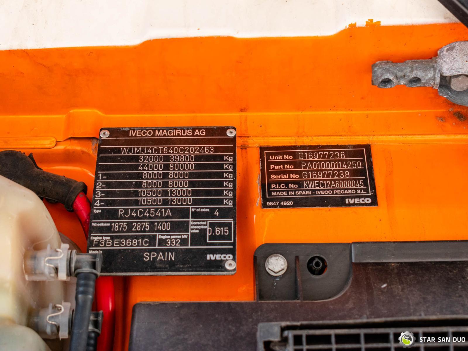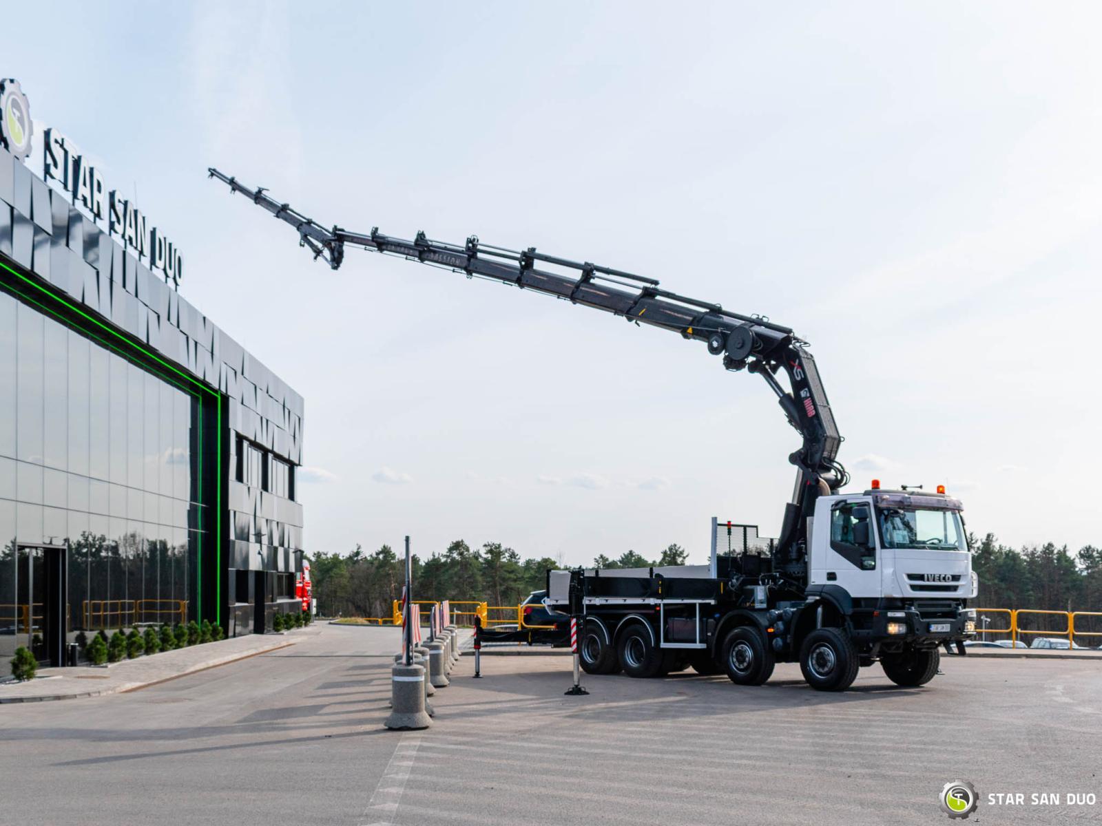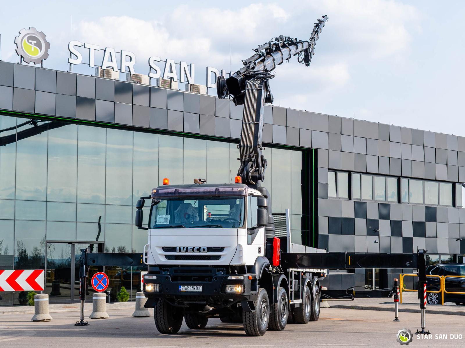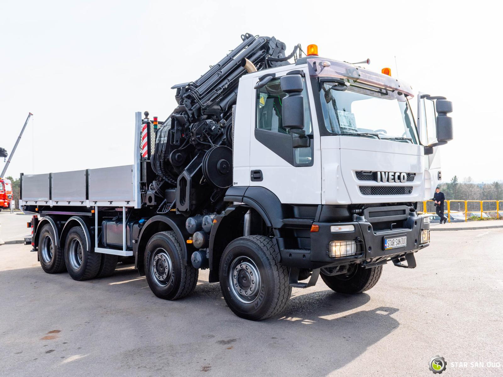 IVECO TRAKKER AD 450 8x8 ID No.: 1049 ________________________________________ Vehicle specifications: • IVECO TRAKKER AD 450 • VIN: WJMJ4CT940C202463 • Drive: 8x8 • Year of manufacture: 2008 • First registration: 23/19/2008 • Engine power: 450 HP • Emission standard: Euro IV • Mileage: 204,500 km • Gearbox: Manual ____________________________________________________ Crane specifications: • HIAB E-7 • 7 hydraulic lifts + 4 Fly Jib lifts • Winch on crane • Radio control ____________________________________________________ Technical parameters: • Kerb weight: 26,565 kg • Gross vehicle weight (GVW) in Poland: 32,000 kg • Payload: 5,435 kg ________________________________________ Cargo space dimensions: • Length: 5,000 mm • Width: 2,450 mm • Height: 600 mm ________________________________________ Vehicle dimensions: • Overall length: 9,200 mm • Overall height: 4,000 mm ________________________________________ Wheelbase: • Axle 1-2: 1,875 mm • Axle 2-3: 2,875 mm • Axle 3-4: 1,400 mm ________________________________________ Suspension: • Front / rear: mechanical • Last axle: - ________________________________________ Optional equipment: • ABS • Central locking • CD player • Electric windows • Towbar • Immobilizer • On-board computer • Factory radio • Tachograph • Power steering • Air conditioning ____________________________________________________ Additional options: • ________________________________________ Maintenance services: • Authorized service for cranes from FASSI, HIAB, EFFER, and others • Repairs of all brands of cranes and trucks • Spare parts available ________________________________________ Technical inspections and certificates: • We are authorized by the Office of Technical Inspection (UDT) • We conduct inspections and coordinate documentation with UDT • We conduct initial vehicle technical inspections at Diagnostic Stations ________________________________________ Warranty and preparation for operation: • Possibility to purchase a technical warranty for an additional fee • Professional preparation of the vehicle and crane for operation ________________________________________ Financing: We offer assistance in arranging a lease or loan for the purchase of a vehicle – ask us for details. ________________________________________ Location: Our headquarters is located in Starachowice. We invite you to inspect the vehicle in person and take a test drive. ________________________________________ Additional Information: Why choose our offer? • Experience and professionalism: we have been selling and servicing 4x4, 6x6, and 8x8 off-road vehicles for years • Comprehensive service: we provide support with vehicle purchase, financing, and servicing • Quality guarantee: each vehicle undergoes a detailed pre-sale inspection, guaranteeing its reliability and roadworthiness ________________________________________ You can find more offers on our sales platform: www.starsanduo-trucks.com ________________________________________ Don't wait – contact us today and schedule a vehicle viewing! ________________________________________ Legal information: This announcement is for informational purposes only and does not constitute an offer within the meaning of Article 66 § 1 of the Civil Code. Our company is not responsible for minor errors, incomplete information, or outdated information.