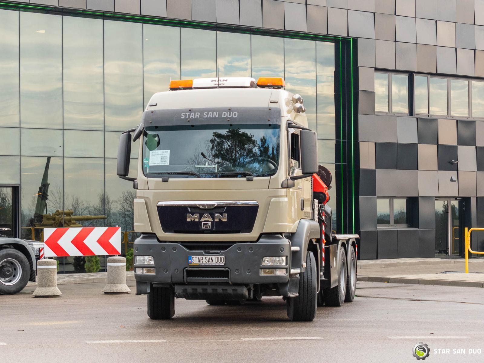 MAN TGS 26.480 6x6 PALFINGER PK 34002 SH ID No.: 989 ________________________________________ Vehicle Specifications: • Model: MAN TGS 26.480 • VIN: WMA70SZZ4BM570528 • Drive: 6x6H • Year of manufacture: 2011 • First registration: 21/07/2011 • Engine power: 480 HP • Emission standard: Euro V • Mileage: 549,088 km • Gearbox: manual ________________________________________ Crane Specifications: • Palfinger PK 34002 SH • 8 hydraulic lifts • Crane winch • Radio control • Crane operating hours: 9,550 h ________________________________________ Technical Parameters: • Curb weight: 17,130 kg • Payload: 8,870 kg • Gross Vehicle Weight (GVW) in Poland: 26,000 kg ________________________________________ Cargo space dimensions: • Length: ––– • Width: ––– • Height: ––– ________________________________________ Wheelbase: • Axle 1-2: 3,550 mm • Axle 2-3: 4,600 mm ________________________________________ Suspension: • Front: air • Rear: air ________________________________________ Additional equipment: • ABS • Central locking • CD • Electric windows • Hook/Cable • Immobilizer • On-board computer • Factory radio • Tachograph • Power steering • Air conditioning ________________________________________ Additional options: ––– ________________________________________ Services: • Authorized service for FASSI, HIAB, and other cranes EFFER and others • Repairs of all brands of cranes and trucks • Spare parts available ________________________________________ Technical inspections and certificates: • We are authorized by the Office of Technical Inspection (UDT) • We conduct inspections and coordinate documentation with UDT • We conduct initial vehicle technical inspections at Diagnostic Stations ________________________________________ Warranty and preparation for operation: • Possibility to purchase a technical warranty for an additional fee • Professional preparation of the vehicle and crane for operation ________________________________________ Financing: We offer assistance in arranging leasing or a loan for the purchase of a vehicle – ask us for details. ________________________________________ Location: Our office is in Starachowice. We invite you to inspect the vehicle in person and take a test drive. ________________________________________ Additional information: Why choose us? • Experience and professionalism: We have been selling and servicing 4x4, 6x6, and 8x8 off-road vehicles for years. • Comprehensive service: We provide support with vehicle purchase, financing, and maintenance. • Quality guarantee: Each vehicle undergoes a detailed pre-sale inspection, guaranteeing its reliability and roadworthiness. ________________________________________ You can find more offers on our sales platform: www.starsanduo-trucks.com ________________________________________ Don't wait – contact us today and schedule a vehicle viewing! ________________________________________ Legal information: This announcement is for informational purposes only and does not constitute an offer within the meaning of Article 66 § 1 of the Civil Code. Our company is not responsible for minor errors, incomplete information, or outdated information.