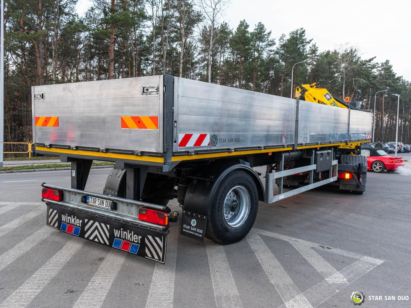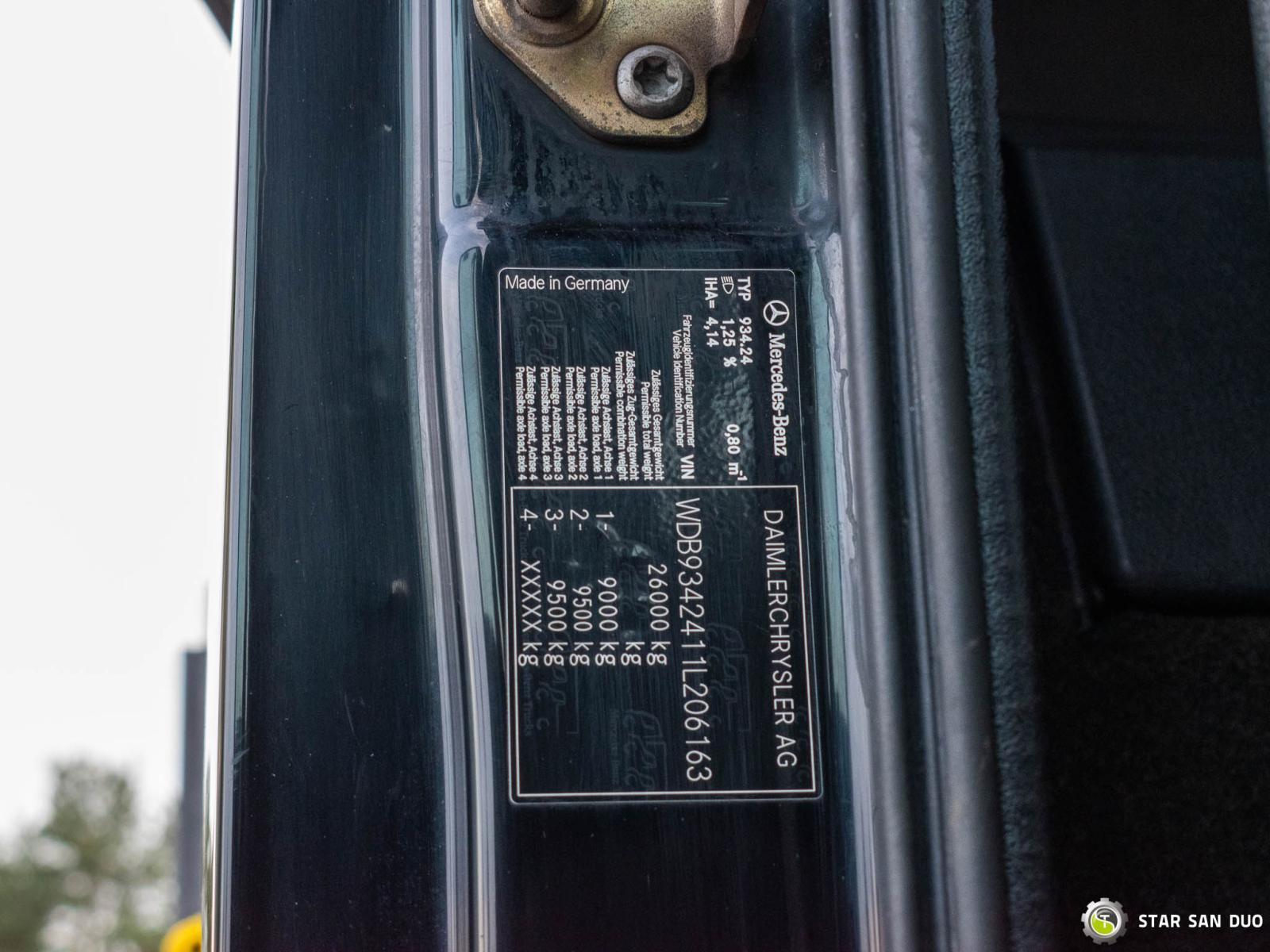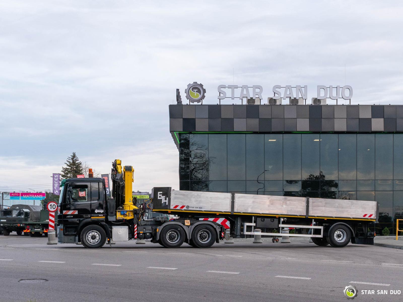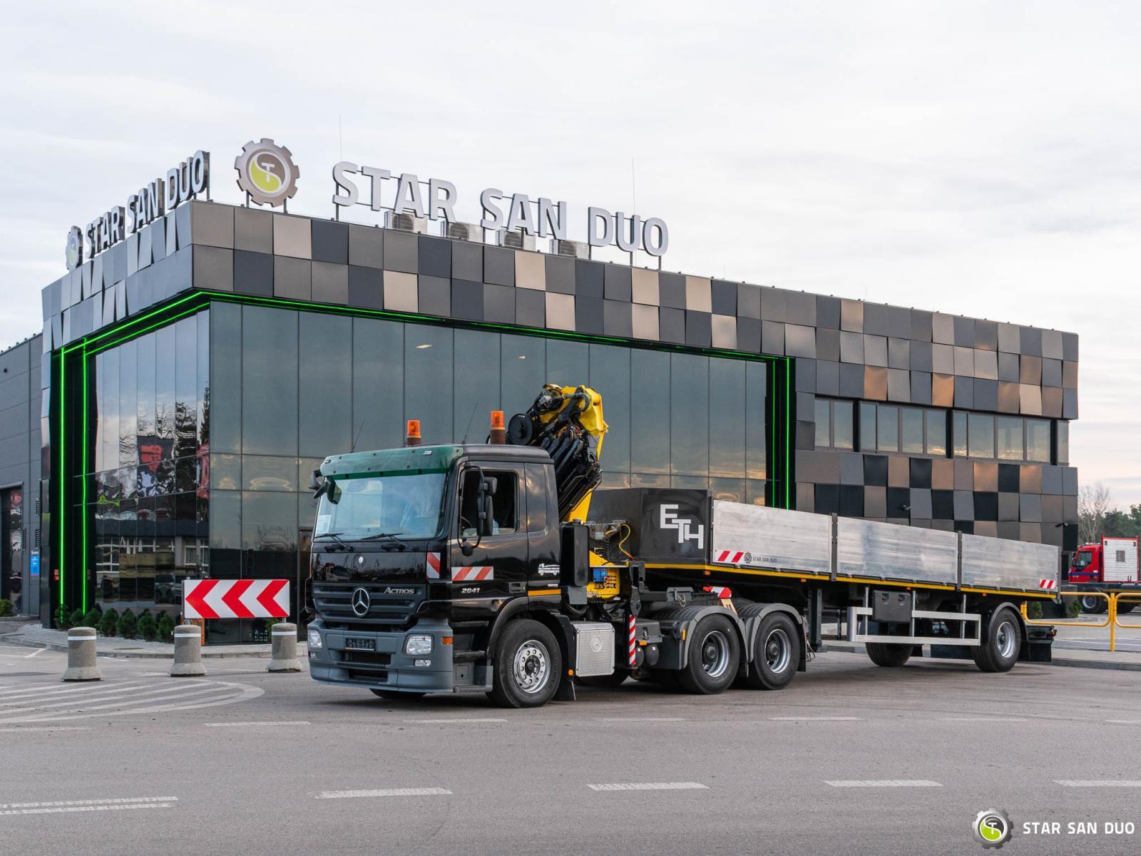 MERCEDES-BENZ ACTROS 2641 6x4 HMF 2820 K6 + SEMI-TRAILER ID: 997 / 998 ________________________________________ Vehicle specifications: • Model: Mercedes-Benz Actros 2641 • VIN: WDB9342411L206163 • Drive: 6x4 • Year of manufacture: 2007 • First registration: 19/04/2007 • Engine power: 410 HP • Emission standard: Euro 4 • Mileage: 553,389 km • Gearbox: automatic ________________________________________ Crane specifications: • Manufacturer: HMF • Model: 2820 K6 • 6 hydraulic sections • 3 Fly-JIB sections • Radio control ________________________________________ Vehicle specifications: • Curb weight: 15,355 kg • Permissible Gross Vehicle Weight (GVW) in Poland: 26,000 kg • Total length: 7,120 mm ________________________________________ Wheelbase: • Axle 1-2: 3,300 mm • Axle 2-3: 1,350 mm ________________________________________ Set-up – semi-trailer: • Manufacturer: RENDERS • Year of production: 2007 • Semi-trailer curb weight: 5,550 kg ________________________________________ Set-up cargo space dimensions: • Length: 9,600 mm • Width: 2,420 mm • Sidewall height: 800 mm ________________________________________ Overall dimensions: • Set length: 10,810 mm • Total height: 2,680 mm ________________________________________ Suspension: • Front / rear: Mechanical/pneumatic ________________________________________ Additional equipment: ABS Central Lock CD Electric windows Towbar Immobilizer On-board computer Factory radio Tachograph Power steering Air conditioning ________________________________________ Additional information: • Tractor unit with trailer • Crane mounted behind the cab • Vehicle ready for operation Services: • Authorized service for cranes of FASSI, HIAB, EFFER, and other brands • Repairs of cranes of all brands and trucks • Spare parts availability ________________________________________ Technical inspections and certificates: • We are authorized by the Office of Technical Inspection (UDT) • We conduct inspections and coordinate documentation with UDT • We perform initial technical inspections of the vehicle at Diagnostic Stations ________________________________________ Warranty and preparation for operation: • Possibility to purchase a technical warranty for an additional fee • Professional vehicle preparation for operation ________________________________________ Financing: We offer assistance in Leasing or financing arrangements for the purchase of a vehicle – ask us for details. ________________________________________ Location: Our office is in Starachowice. We invite you to inspect the vehicle in person and take it for a test drive. ________________________________________ Additional information: Why choose our offer? • Experience and professionalism – many years of sales and service of specialized vehicles. • Comprehensive service – purchase, financing, and service in one place. • Quality guarantee – each vehicle undergoes a detailed inspection before sale. ________________________________________ You can find more offers on our sales platform: www.starsanduo-trucks.com ________________________________________ Don't wait – contact us today and schedule a vehicle viewing. ________________________________________ Legal information: This announcement is for informational purposes only and does not constitute an offer within the meaning of Article 66 § 1 of the Civil Code. The company is not responsible for any minor errors or outdated information.