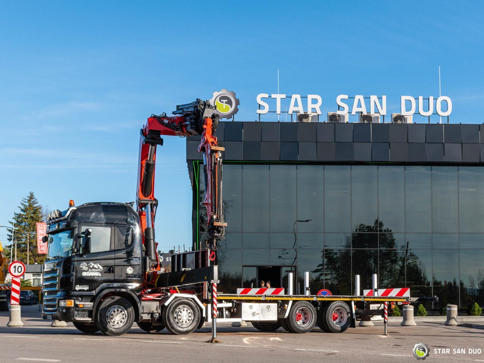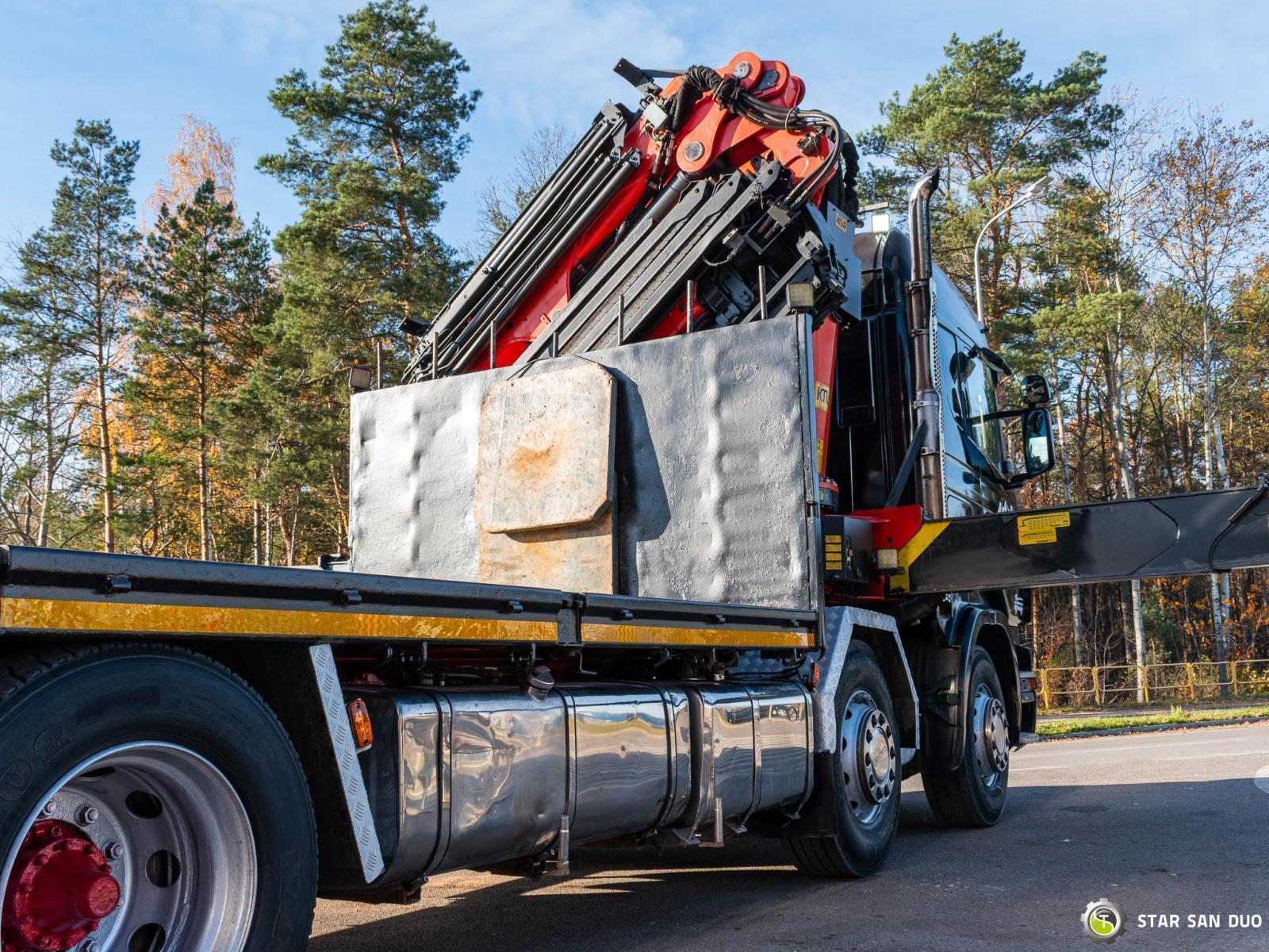 SCANIA R470 8x2 PALFINGER PK 56002 ID No.: 949 ________________________________________ Vehicle specifications: • Model: Scania R470 • VIN: YS2R8X20002015110 • Drive: 8x2 • Year of manufacture: 2006 • First registration: 28.06.2006 • Engine power: 470 HP (345 kW) • Emission standard: Euro 3 • Mileage: 652,915 km • Gearbox: manual • Suspension: front air / rear air ____________________________________________________ Crane specifications: • PALFINGER PK 56002 • 6 hydraulic lifts + 5 lifts on Fly Jib • Radio control ____________________________________________________ Technical parameters: • Curb weight: 21,530 kg • Payload: 4,470 kg • Gross Vehicle Weight (GVW) in Poland: 26,000 kg ________________________________________ Loading space dimensions: • Length: 7,450 mm + 1,500 mm (extending rear beam) • Width: 2,570 mm • Height: – ________________________________________ Wheelbase: • 1–2: 1,900 mm • 2–3: 3,970 mm • 3–4: 1,300 mm ________________________________________ Suspension: • Front: air suspension • Rear: air suspension ________________________________________ Additional equipment: • ABS • Central locking • Air conditioning • Electric windows • Towbar • Immobilizer • On-board computer • Factory radio • Tachograph • Power steering ________________________________________ Additional options: • Extending rear Loading beam (additional 1500 mm) ________________________________________ Services: • Authorized service for cranes from FASSI, HIAB, EFFER, and others • Repairs of all brands of cranes and trucks • Spare parts availability ________________________________________ Technical inspections and certificates: • We are authorized by the Office of Technical Inspection (UDT) • We conduct inspections and coordinate documentation with UDT • We conduct initial vehicle technical inspections at diagnostic stations ________________________________________ Warranty and preparation for operation: • Possibility to purchase a technical warranty for an additional fee • Professional preparation of the vehicle and crane for operation ________________________________________ Financing: We offer assistance in arranging leasing or a loan for the purchase of a vehicle – ask us for details. ________________________________________ Location: Our headquarters is located in Starachowice. We invite you to inspect the vehicle in person and take a test drive. ________________________________________ Additional Information: Why choose our offer? • Experience and professionalism: We have been selling and servicing 4x4, 6x6, and 8x8 off-road vehicles for years. • Comprehensive service: We provide support with vehicle purchase, financing, and servicing. • Quality guarantee: Each vehicle undergoes a detailed pre-sale inspection, guaranteeing its reliability and roadworthiness. ____________________________________________________ You can find more offers on our sales platform: www.starsanduo-trucks.com ____________________________________________________ Don't wait – contact us today and schedule a vehicle viewing! ____________________________________________________ Legal information: This announcement is for informational purposes only and does not constitute an offer within the meaning of Article 66 § 1 of the Civil Code. Our company is not responsible for minor errors, incomplete information, or outdated information.