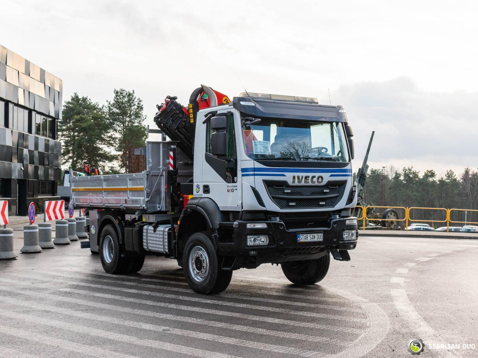 IVECO TRAKKER 450 4x4 PALFINGER PK 23001 EH HDS Żuraw Przyczepa SCHWARZMÜLLER
