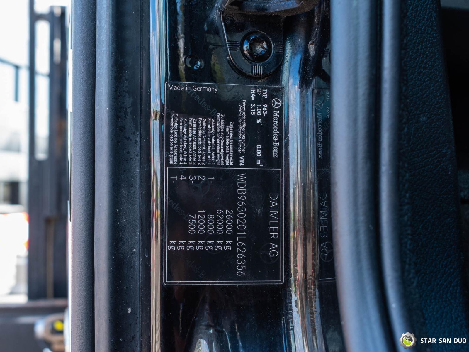 MERCEDES-BENZ ACTROS 2542 6x2 PALFINGER PK 26002 EH ID: 922 ________________________________________ Dane techniczne pojazdu: • Marka: Mercedes-Benz Actros • VIN: WDB9630201L626356 • Napęd: 6x2 (ostatnia oś podnoszona i skrętna) • Rok produkcji: 2012 • Pierwsza rejestracja: 20.03.2013 • Moc silnika: 420 KM • Norma spalin: Euro 5 • Przebieg: 384 000 km • Skrzynia biegów: automatyczna ________________________________________ Specyfikacja żurawia: • Model: Palfinger PK 26002 EH • Liczba segmentów hydraulicznych: 6 • Sterowanie: radiowe ________________________________________ Parametry techniczne: • Masa własna: 15 500 kg • Ładowność: 10 500 kg • Dopuszczalna masa całkowita: 26 000 kg ________________________________________ Wymiary przestrzeni ładunkowej: • Długość: 6 500 mm • Szerokość: 2 500 mm • Wysokość: 800 mm ________________________________________ Rozstaw osi: • Oś 1–2: 1 350 mm • Oś 2–3: 4 600 mm • Oś 3–4: podnoszona i skrętna (P/S) ________________________________________ Zawieszenie: • Przód: mechaniczne (M) • Tył: pneumatyczne (P) ________________________________________ Wyposażenie dodatkowe: • ABS • Centralny zamek • Elektryczne szyby • Immobilizer • Komputer pokładowy • Radio fabryczne • Tachograf • Wspomaganie kierownicy • Klimatyzacja ________________________________________ Usługi serwisowe: • Autoryzowany serwis żurawi marek FASSI, HIAB, EFFER i innych • Naprawy żurawi wszystkich marek oraz samochodów ciężarowych • Dostępność części zamiennych ________________________________________ Badania techniczne i certyfikaty: • Posiadamy uprawnienia Urzędu Dozoru Technicznego (UDT) • Przeprowadzamy badania dozorowe i uzgadniamy dokumentację z UDT • Realizujemy pierwsze badania techniczne pojazdu na Stacjach Diagnostycznych ________________________________________ Gwarancja i przygotowanie do eksploatacji: • Możliwość zakupu gwarancji technicznej za dopłatą • Profesjonalne przygotowanie pojazdu i żurawia do pracy ________________________________________ Finansowanie: Oferujemy pomoc w organizacji leasingu lub kredytu na zakup pojazdu – zapytaj nas o szczegóły. ________________________________________ Lokalizacja: Nasza siedziba znajduje się w Starachowicach. Zapraszamy do osobistego sprawdzenia pojazdu i przeprowadzenia jazdy testowej. ________________________________________ Informacje dodatkowe: Dlaczego warto wybrać naszą ofertę? • Doświadczenie i profesjonalizm: od lat zajmujemy się sprzedażą i serwisem pojazdów terenowych 4x4, 6x6, 8x8. • Kompleksowa obsługa: zapewniamy wsparcie przy zakupie, finansowaniu i serwisowaniu pojazdu. • Gwarancja jakości: każdy pojazd przechodzi szczegółowy przegląd przed sprzedażą, co gwarantuje jego sprawność i niezawodność. ________________________________________ Więcej ofert znajdą Państwo na naszej platformie sprzedażowej: www.starsanduo-trucks.com ________________________________________ Nie czekaj – skontaktuj się z nami już dziś i umów na prezentację pojazdu! ________________________________________ Informacje prawne: Niniejsze ogłoszenie ma charakter wyłącznie informacyjny i nie stanowi oferty w rozumieniu art. 66 § 1 Kodeksu cywilnego. Nasza firma nie ponosi odpowiedzialności za drobne błędy, niepełne informacje lub nieaktualność ogłoszenia.