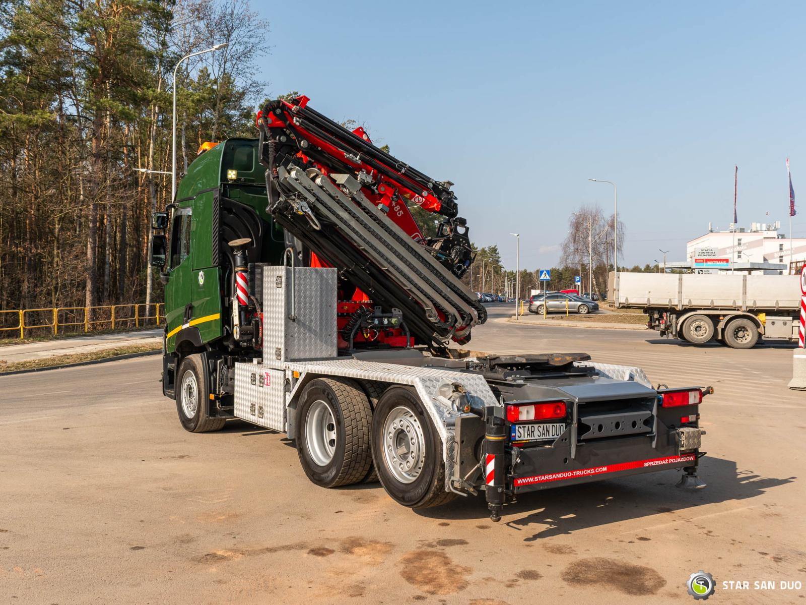 RENAULT T440 6x2 FASSI F485RA.2.26 XE-Dynamic ID nr: 1031 ________________________________________ Dane techniczne pojazdu: • RENAULT T440 • VIN: VF611D362HD000118 • Napęd: 6x2 • Rok produkcji: 2016 • Pierwsza rejestracja: 05.12.2016 • Moc silnika: 440 KM • Norma spalin: Euro VI • Przebieg: 802 621 km • Skrzynia biegów: Automatyczna ________________________________________ Specyfikacja żurawia: • FASSI F485RA.2.26 XE-Dynamic • 6 segmentów hydraulicznych + 4 segmenty Fly Jib • Wciągarka na żurawiu • Sterowanie radiowe • Motogodziny żurawia: 2 537,1 h ________________________________________ Parametry techniczne: • Masa własna: 17 100 kg • Dopuszczalna masa całkowita (DMC) na Polskę: 26 000 kg • Ładowność: 8 900 kg________________________________________ Wymiary przestrzeni ładunkowej: • Długość: — • Szerokość: — • Wysokość: — ________________________________________ Wymiary całkowite: • Długość całkowita: 7 350 mm • Wysokość całkowita: 3 800 mm ________________________________________ Rozstaw osi: • Oś 1–2: 3 400 mm • Oś 2–3: 1 350 mm ________________________________________ Zawieszenie: • Przód: mechaniczne • Tył: pneumatyczne • Ostatnia oś: podnoszona i skrętna ________________________________________ Wyposażenie dodatkowe: • ABS • Centralny zamek • CD • Elektryczne szyby • Hak/Zaczep • Immobilizer • Komputer pokładowy • Radio fabryczne • Tachograf • Wspomaganie kierownicy • Klimatyzacja ________________________________________ Opcje dodatkowe: • Pojazd w konfiguracji ciągnik siodłowy z żurawiem ________________________________________ Usługi serwisowe: • Autoryzowany serwis żurawi marek FASSI, HIAB, EFFER i innych • Naprawy żurawi wszystkich marek oraz samochodów ciężarowych • Dostępność części zamiennych ________________________________________ Badania techniczne i certyfikaty: • Posiadamy uprawnienia Urzędu Dozoru Technicznego (UDT) • Przeprowadzamy badania dozorowe i uzgadniamy dokumentację z UDT • Realizujemy pierwsze badania techniczne pojazdu na Stacjach Diagnostycznych ________________________________________ Gwarancja i przygotowanie do eksploatacji: • Możliwość zakupu gwarancji technicznej za dopłatą • Profesjonalne przygotowanie pojazdu i żurawia do pracy ________________________________________ Finansowanie: Oferujemy pomoc w organizacji leasingu lub kredytu na zakup pojazdu – zapytaj nas o szczegóły. ________________________________________ Lokalizacja: Nasza siedziba znajduje się w Starachowicach. Zapraszamy do osobistego sprawdzenia pojazdu i przeprowadzenia jazdy testowej. ________________________________________ Informacje dodatkowe: Dlaczego warto wybrać naszą ofertę? • Doświadczenie i profesjonalizm • Kompleksowa obsługa • Gwarancja jakości ________________________________________ Więcej ofert znajdą Państwo na naszej platformie sprzedażowej: www.starsanduo-trucks.com ________________________________________ Nie czekaj – skontaktuj się z nami już dziś i umów na prezentację pojazdu! ________________________________________ Informacje prawne: Niniejsze ogłoszenie ma charakter wyłącznie informacyjny i nie stanowi oferty w rozumieniu art. 66 § 1 Kodeksu cywilnego. Nasza firma nie ponosi odpowiedzialności za drobne błędy, niepełne informacje lub nieaktualność ogłoszenia.