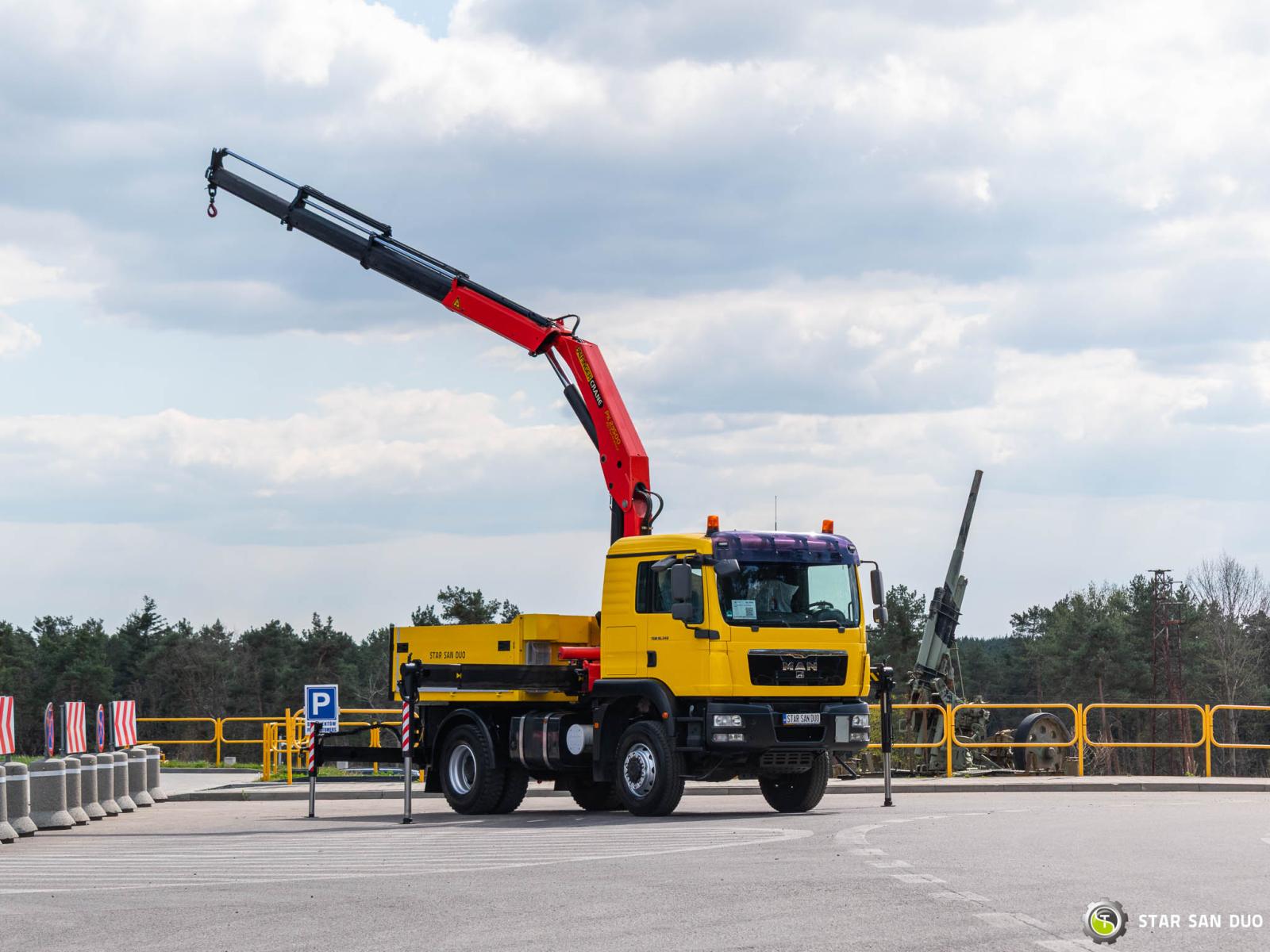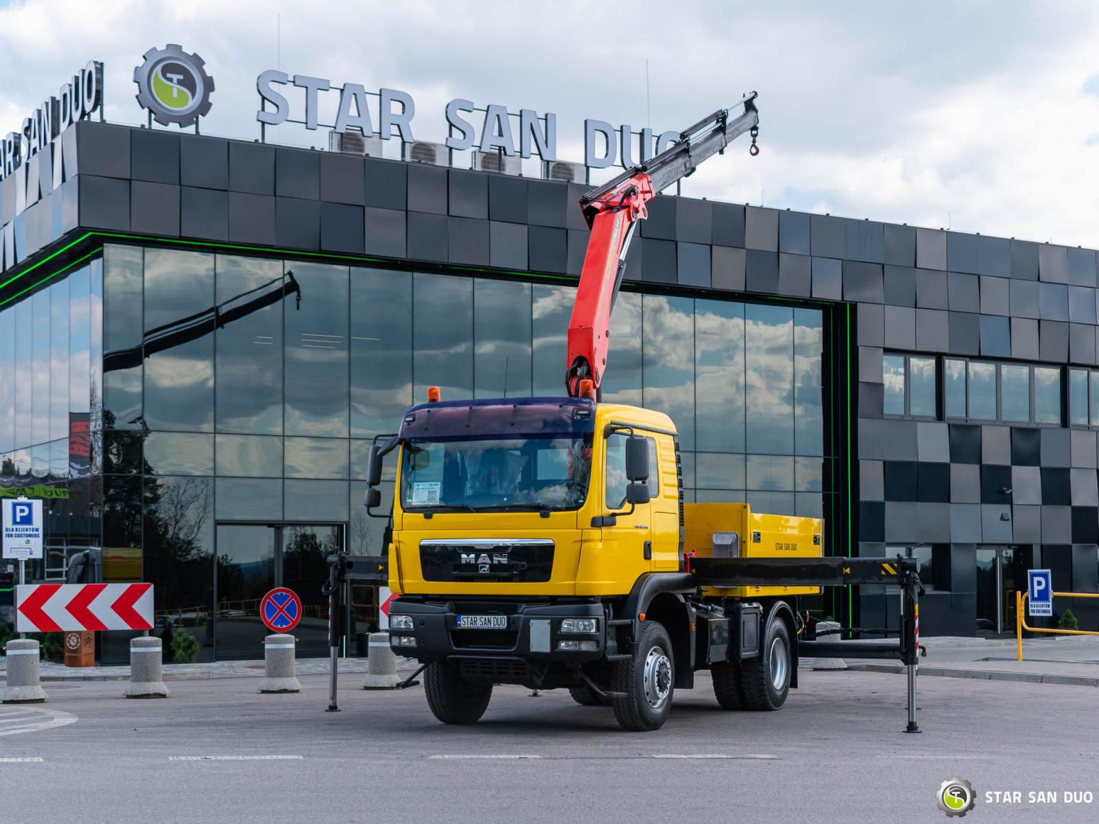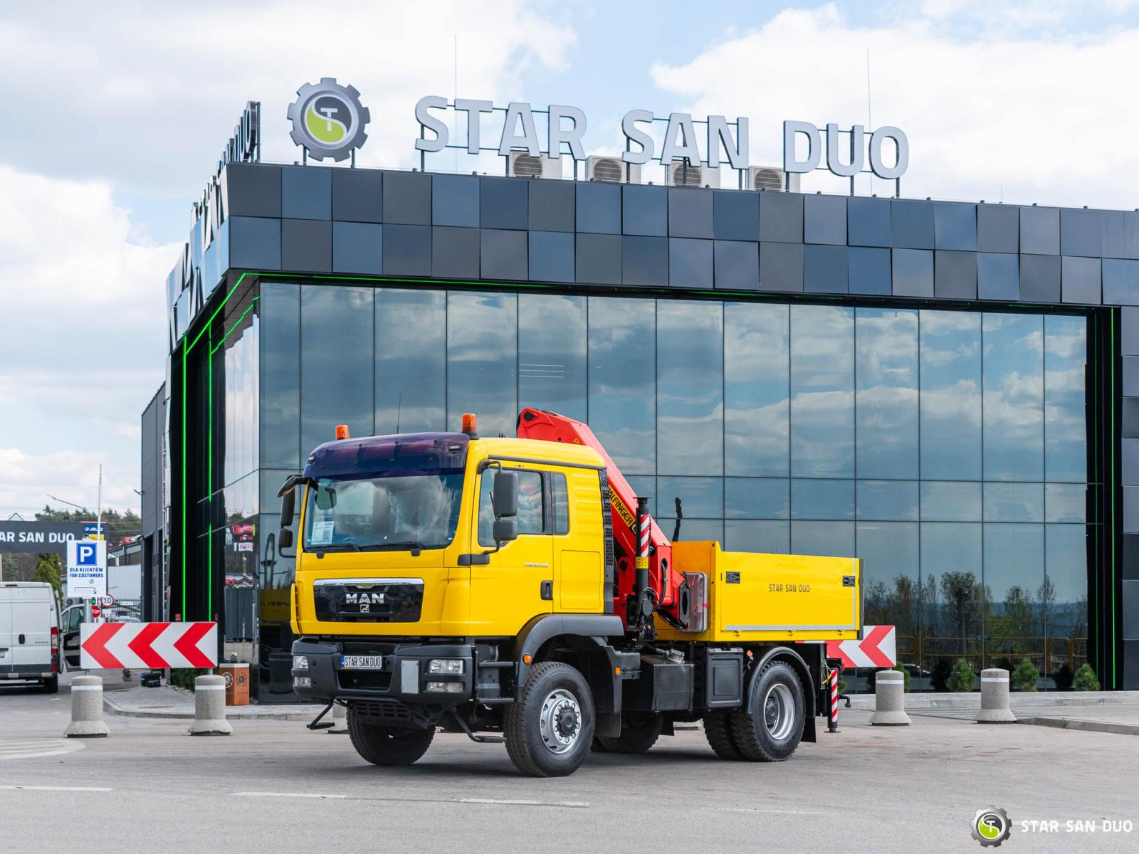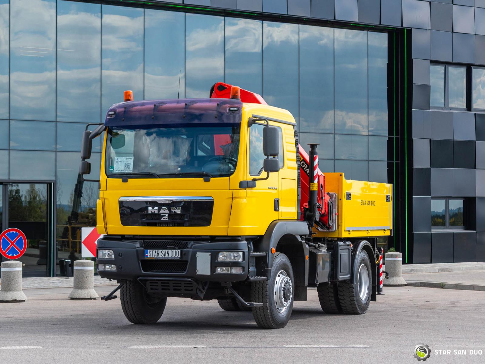 ID No.: 1096 Vehicle specifications: • MAN TGM 18.340 • VIN: WMAN38ZZ99Y234801 • Drive: 4x4 • First registration: 18.06.2009 • Engine power: 340 HP • Emission standard: Euro IV • Mileage: 433,866 km • Gearbox: Manual ____________________________________________________ Crane specifications: • PALFINGER PK 23500 • 3 hydraulic lifts • Radio control ____________________________________________________ Technical parameters: • Curb weight: 11,775 kg • Payload: 6,225 kg • Permissible gross vehicle weight: 18,000 kg ____________________________________________________ Cargo space dimensions: • Length: 2,800 mm • Width: 2,410 mm • Height: 800 mm • Crane operating hours: 1702.9 h ________________________________________ Wheelbase: • 1-2: 3600 mm ________________________________________ Suspension: • Front: mechanical • Rear: mechanical ________________________________________ Overall dimensions: • Overall length: 6750 mm • Overall height: 3750 mm ________________________________________ Additional equipment: • ABS • Central locking • CD player • Electric windows • Hook/Cable • Immobilizer • On-board computer • Factory radio • Tachograph • Power steering • Air conditioning ________________________________________ Additional options: • Box body ________________________________________ Services: • Authorized service for FASSI, HIAB, EFFER, and other crane brands • Repairs for all crane brands and trucks • Parts availability Spare parts ________________________________________ Technical inspections and certificates: • We are authorized by the Office of Technical Inspection (UDT) • We conduct inspections and coordinate documentation with UDT • We conduct initial technical inspections of vehicles at Diagnostic Stations ________________________________________ Warranty and preparation for operation: • Possibility to purchase a technical warranty for an additional fee • Professional preparation of the vehicle and crane for operation ________________________________________ Financing: We offer assistance in arranging leasing or a loan for the purchase of a vehicle – ask us for details. ________________________________________ Location: Our headquarters is in Starachowice. We invite you to inspect the vehicle in person and take a test drive. ________________________________________ Additional information: Why choose us? • Experience and professionalism: We have been selling and servicing 4x4, 6x6, and 8x8 off-road vehicles for years. • Comprehensive service: We provide support with the purchase, financing, and servicing of vehicles. • Quality guarantee: each vehicle undergoes a thorough inspection before sale, guaranteeing its reliability and roadworthiness. ________________________________________ You can find more offers on our sales platform: www.starsanduo-trucks.com ________________________________________ Don't wait – contact us today and schedule a vehicle viewing! ________________________________________ Legal information: This announcement is for informational purposes only and does not constitute an offer within the meaning of Article 66 § 1 of the Civil Code. Our company is not responsible for minor errors, incomplete information, or outdated information.