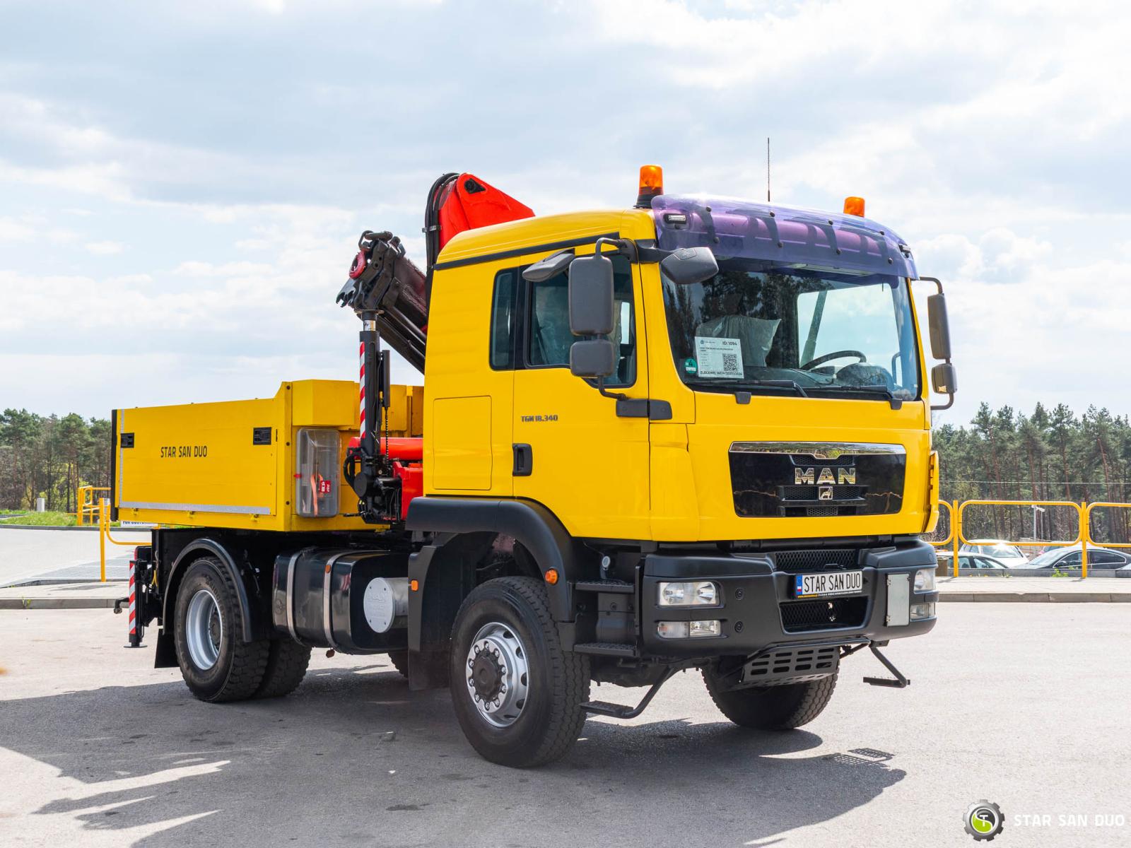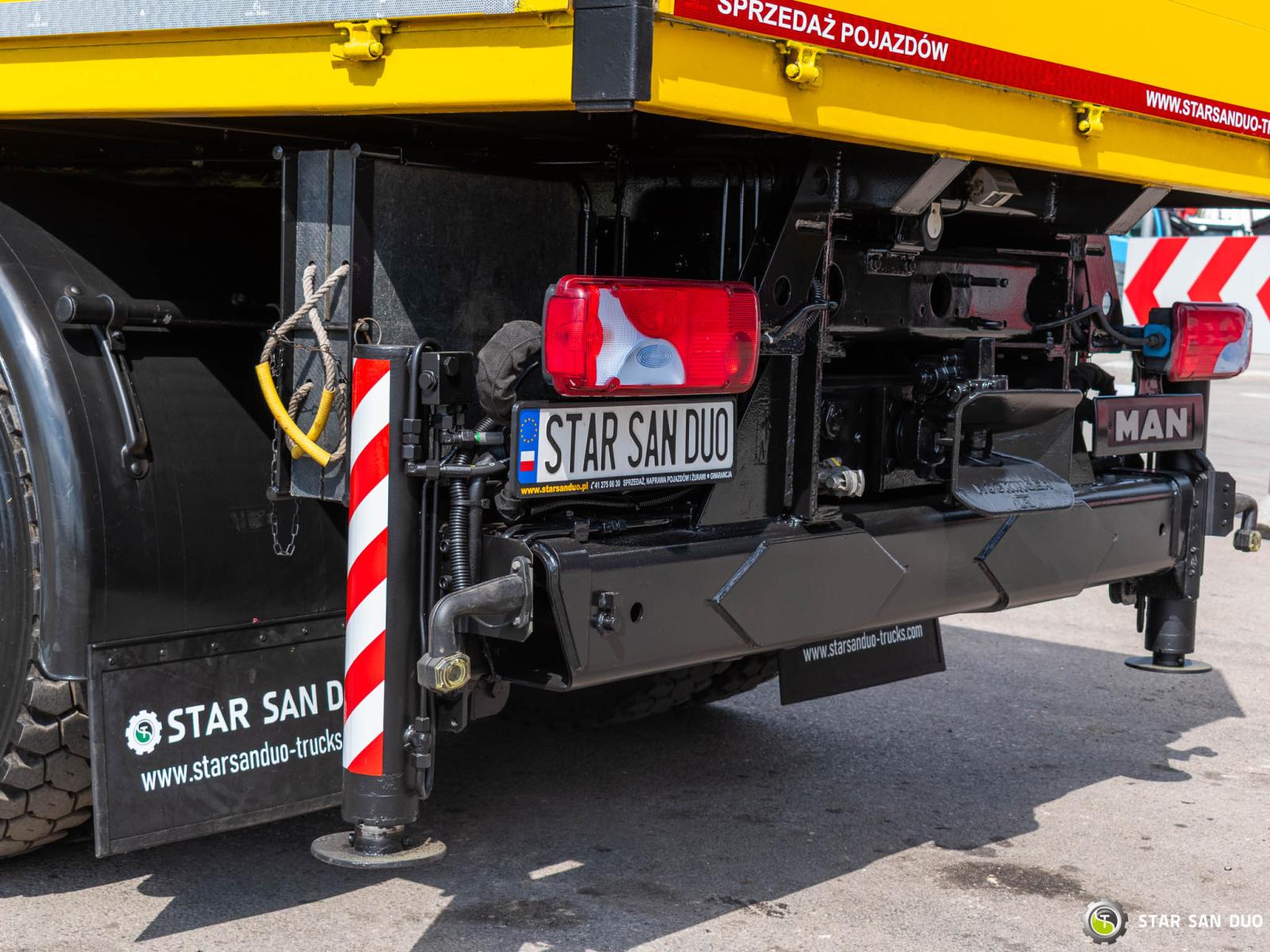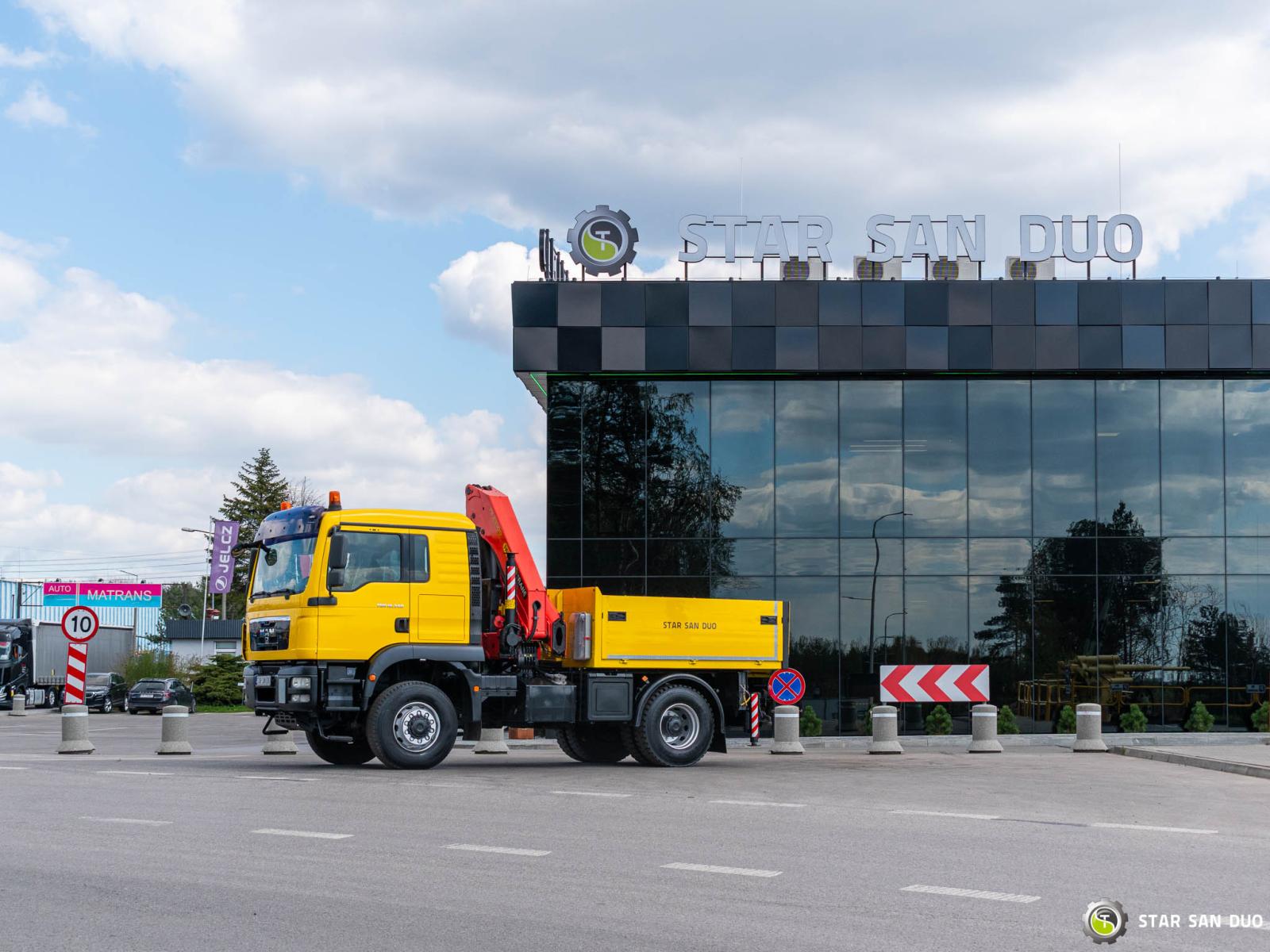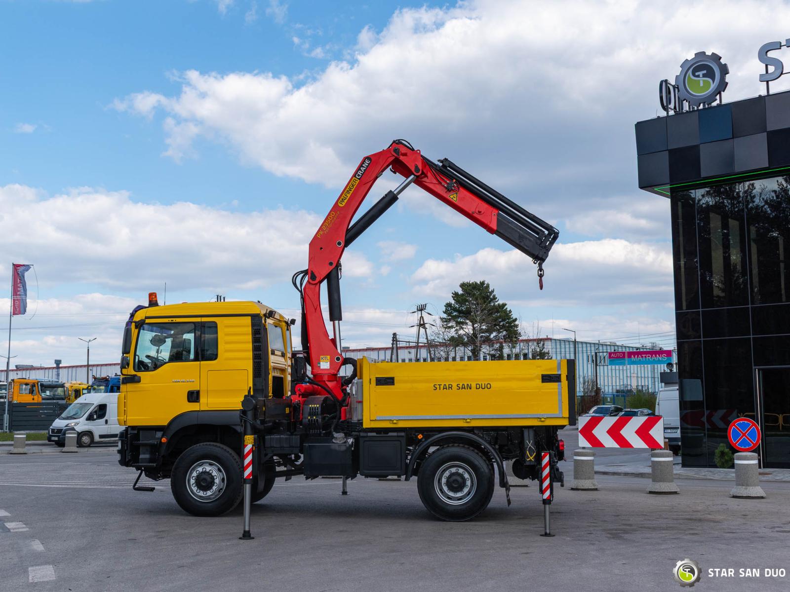 ID No.: 1096 Vehicle specifications: • MAN TGM 18.340 • VIN: WMAN38ZZ99Y234801 • Drive: 4x4 • First registration: 18.06.2009 • Engine power: 340 HP • Emission standard: Euro IV • Mileage: 433,866 km • Gearbox: Manual ____________________________________________________ Crane specifications: • PALFINGER PK 23500 • 3 hydraulic lifts • Radio control ____________________________________________________ Technical parameters: • Curb weight: 11,775 kg • Payload: 6,225 kg • Permissible gross vehicle weight: 18,000 kg ____________________________________________________ Cargo space dimensions: • Length: 2,800 mm • Width: 2,410 mm • Height: 800 mm • Crane operating hours: 1702.9 h ________________________________________ Wheelbase: • 1-2: 3600 mm ________________________________________ Suspension: • Front: mechanical • Rear: mechanical ________________________________________ Overall dimensions: • Overall length: 6750 mm • Overall height: 3750 mm ________________________________________ Additional equipment: • ABS • Central locking • CD player • Electric windows • Hook/Cable • Immobilizer • On-board computer • Factory radio • Tachograph • Power steering • Air conditioning ________________________________________ Additional options: • Box body ________________________________________ Services: • Authorized service for FASSI, HIAB, EFFER, and other crane brands • Repairs for all crane brands and trucks • Parts availability Spare parts ________________________________________ Technical inspections and certificates: • We are authorized by the Office of Technical Inspection (UDT) • We conduct inspections and coordinate documentation with UDT • We conduct initial technical inspections of vehicles at Diagnostic Stations ________________________________________ Warranty and preparation for operation: • Possibility to purchase a technical warranty for an additional fee • Professional preparation of the vehicle and crane for operation ________________________________________ Financing: We offer assistance in arranging leasing or a loan for the purchase of a vehicle – ask us for details. ________________________________________ Location: Our headquarters is in Starachowice. We invite you to inspect the vehicle in person and take a test drive. ________________________________________ Additional information: Why choose us? • Experience and professionalism: We have been selling and servicing 4x4, 6x6, and 8x8 off-road vehicles for years. • Comprehensive service: We provide support with the purchase, financing, and servicing of vehicles. • Quality guarantee: each vehicle undergoes a thorough inspection before sale, guaranteeing its reliability and roadworthiness. ________________________________________ You can find more offers on our sales platform: www.starsanduo-trucks.com ________________________________________ Don't wait – contact us today and schedule a vehicle viewing! ________________________________________ Legal information: This announcement is for informational purposes only and does not constitute an offer within the meaning of Article 66 § 1 of the Civil Code. Our company is not responsible for minor errors, incomplete information, or outdated information.