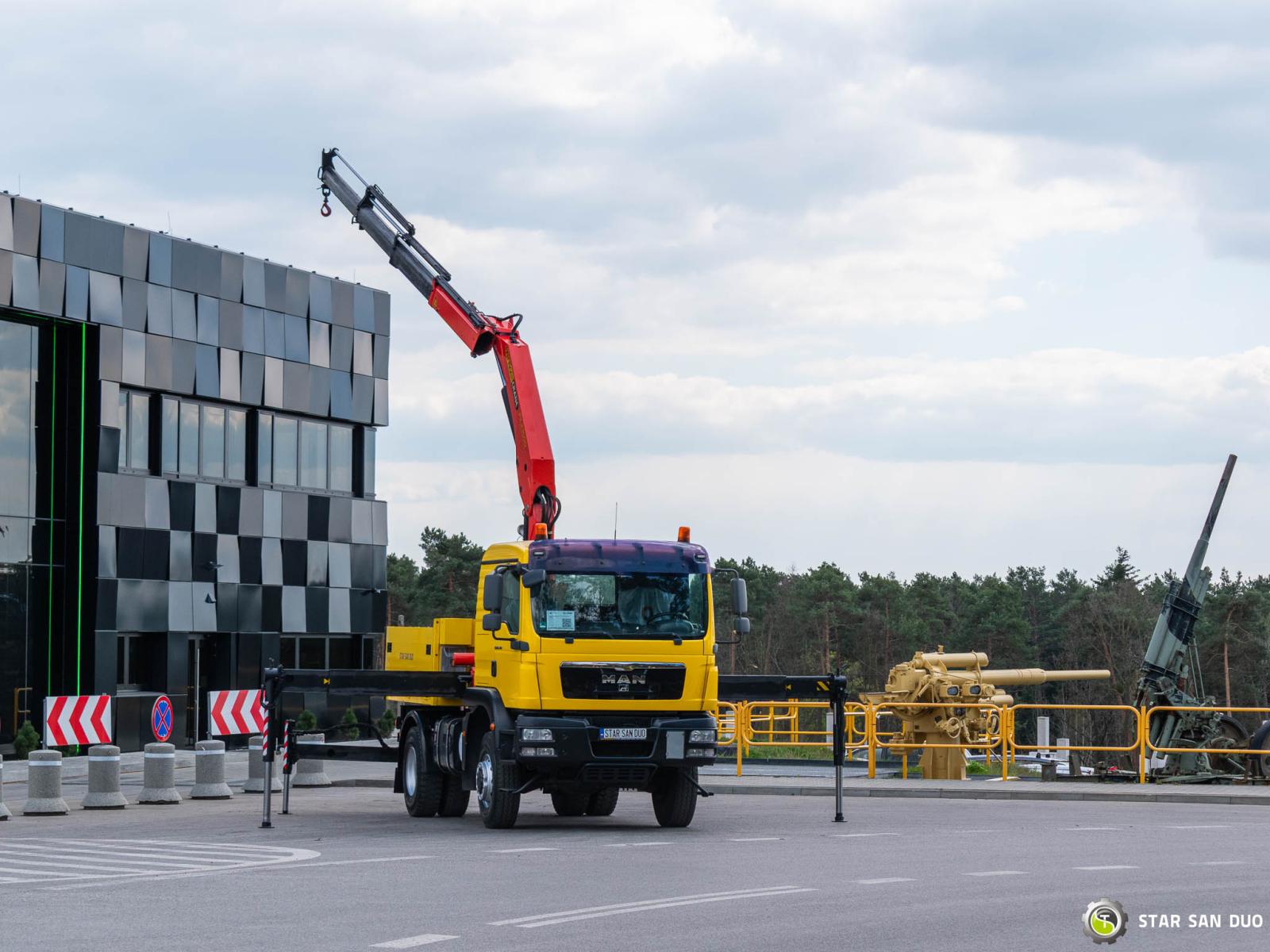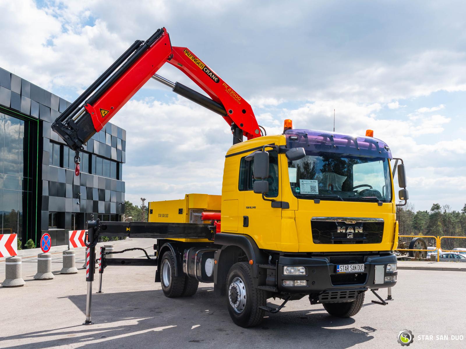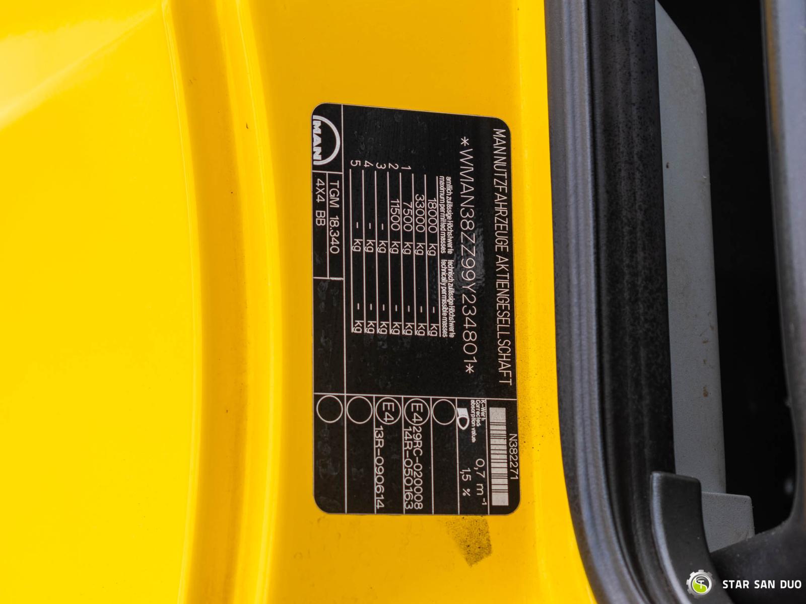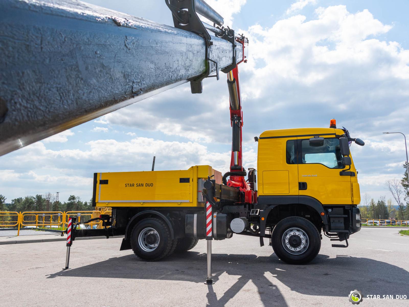 ID No.: 1096 Vehicle specifications: • MAN TGM 18.340 • VIN: WMAN38ZZ99Y234801 • Drive: 4x4 • First registration: 18.06.2009 • Engine power: 340 HP • Emission standard: Euro IV • Mileage: 433,866 km • Gearbox: Manual ____________________________________________________ Crane specifications: • PALFINGER PK 23500 • 3 hydraulic lifts • Radio control ____________________________________________________ Technical parameters: • Curb weight: 11,775 kg • Payload: 6,225 kg • Permissible gross vehicle weight: 18,000 kg ____________________________________________________ Cargo space dimensions: • Length: 2,800 mm • Width: 2,410 mm • Height: 800 mm • Crane operating hours: 1702.9 h ________________________________________ Wheelbase: • 1-2: 3600 mm ________________________________________ Suspension: • Front: mechanical • Rear: mechanical ________________________________________ Overall dimensions: • Overall length: 6750 mm • Overall height: 3750 mm ________________________________________ Additional equipment: • ABS • Central locking • CD player • Electric windows • Hook/Cable • Immobilizer • On-board computer • Factory radio • Tachograph • Power steering • Air conditioning ________________________________________ Additional options: • Box body ________________________________________ Services: • Authorized service for FASSI, HIAB, EFFER, and other crane brands • Repairs for all crane brands and trucks • Parts availability Spare parts ________________________________________ Technical inspections and certificates: • We are authorized by the Office of Technical Inspection (UDT) • We conduct inspections and coordinate documentation with UDT • We conduct initial technical inspections of vehicles at Diagnostic Stations ________________________________________ Warranty and preparation for operation: • Possibility to purchase a technical warranty for an additional fee • Professional preparation of the vehicle and crane for operation ________________________________________ Financing: We offer assistance in arranging leasing or a loan for the purchase of a vehicle – ask us for details. ________________________________________ Location: Our headquarters is in Starachowice. We invite you to inspect the vehicle in person and take a test drive. ________________________________________ Additional information: Why choose us? • Experience and professionalism: We have been selling and servicing 4x4, 6x6, and 8x8 off-road vehicles for years. • Comprehensive service: We provide support with the purchase, financing, and servicing of vehicles. • Quality guarantee: each vehicle undergoes a thorough inspection before sale, guaranteeing its reliability and roadworthiness. ________________________________________ You can find more offers on our sales platform: www.starsanduo-trucks.com ________________________________________ Don't wait – contact us today and schedule a vehicle viewing! ________________________________________ Legal information: This announcement is for informational purposes only and does not constitute an offer within the meaning of Article 66 § 1 of the Civil Code. Our company is not responsible for minor errors, incomplete information, or outdated information.