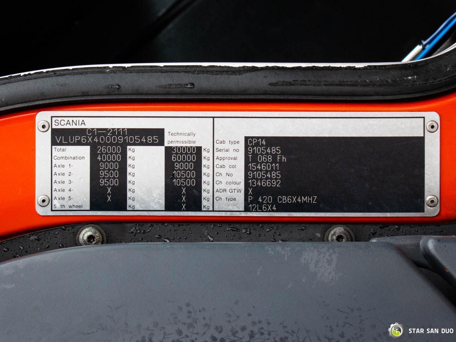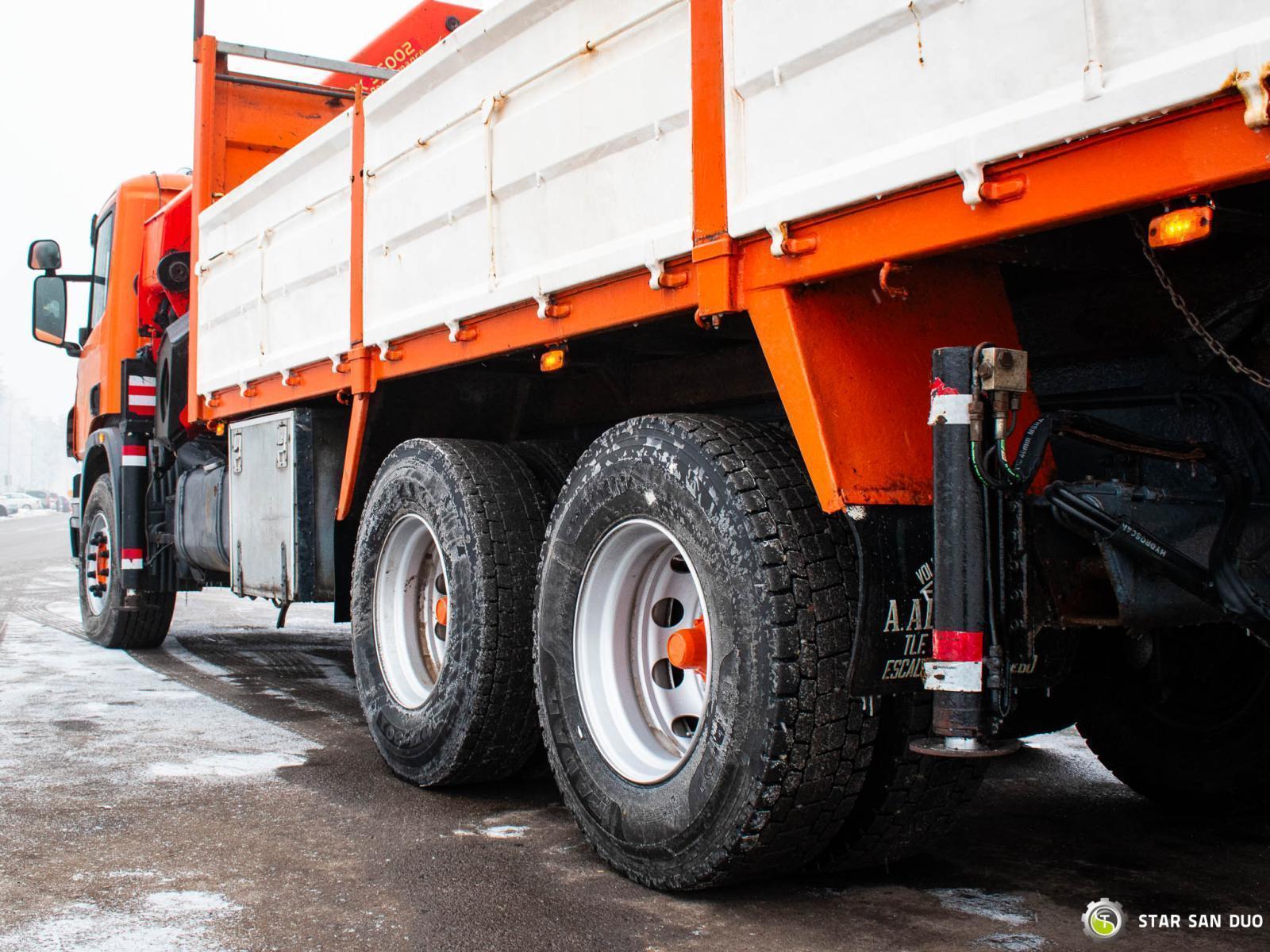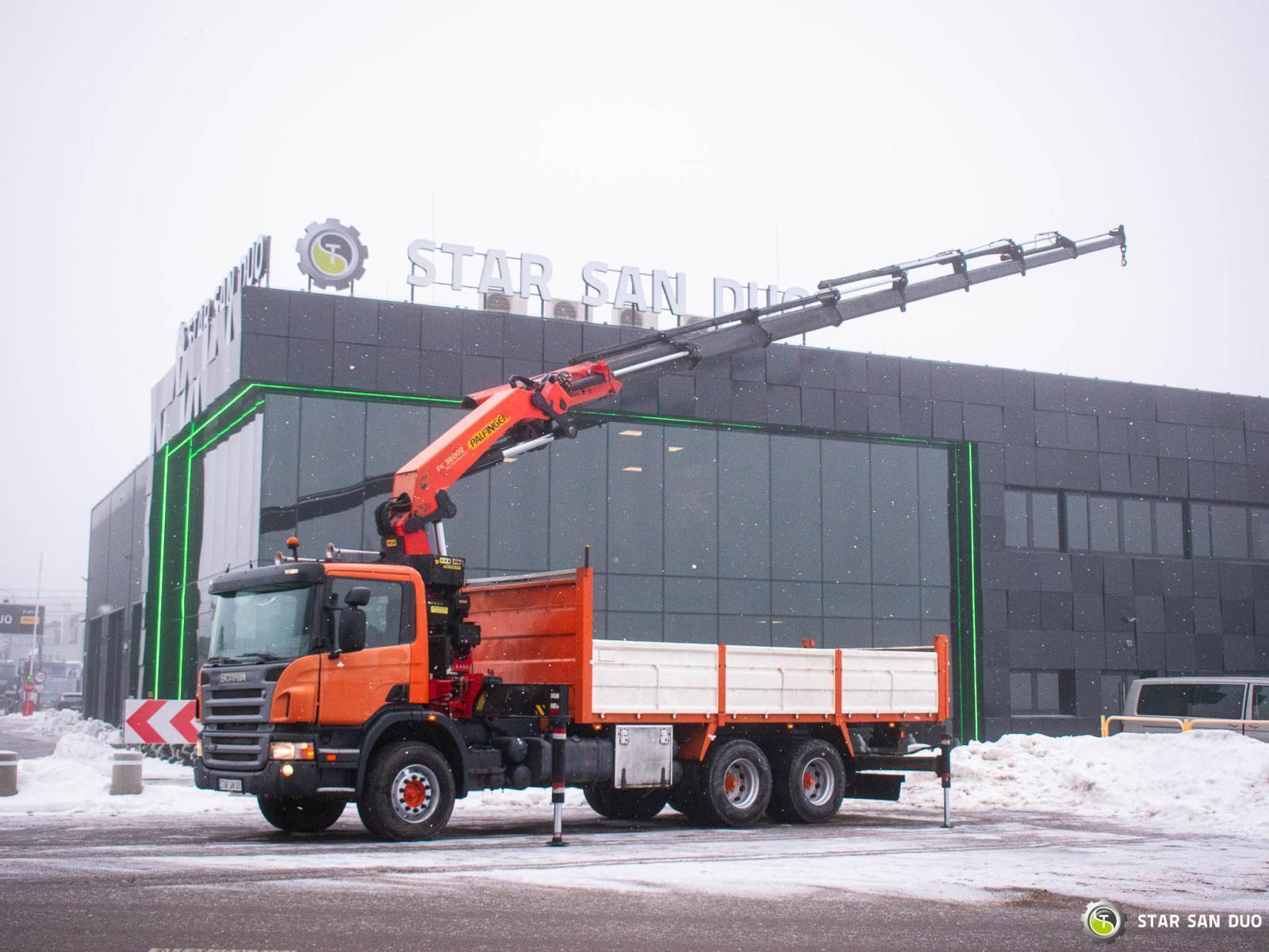 SCANIA P420 6x4 PALFINGER PK 36002 ID No.: 1026 ________________________________________ Vehicle specifications: • SCANIA P420 • VIN: YLPG6X40002015485 • Drive: 6x4 • Year of manufacture: 2006 • First registration: 18/04/2006 • Engine power: 420 HP • Emission standard: Euro III • Mileage: 331,141 km • Gearbox: Manual ________________________________________ Crane specifications: • PALFINGER PK 36002 • Number of hydraulic segments: 8 • Crane winch • Radio control ________________________________________ Technical parameters: • Curb weight: 19,150 kg • Gross vehicle weight (GVW) in Poland: 26,000 kg kg • Payload: 6,850 kg ________________________________________ Cargo space dimensions: • Length: 6,300 mm • Width: 2,300 mm • Height: 830 mm ________________________________________ Overall vehicle dimensions: • Overall length: 10,015 mm • Overall height: 3,670 mm ________________________________________ Wheelbase: • Axle 1-2: 4,600 mm • Axle 2-3: 1,350 mm ________________________________________ Suspension: • Front: mechanical • Rear: mechanical ________________________________________ Additional equipment: • ABS • Central locking • CD player • Electric windows • Towbar • Immobilizer • On-board computer • Factory radio • Tachograph • Power steering • Air conditioning ________________________________________ Additional options: • Tipper ____________________________________________________ Services: • Authorized service for cranes from FASSI, HIAB, EFFER, and others • Repairs of all crane brands and trucks • Spare parts available ____________________________________________________ Technical inspections and certificates: • We are authorized by the Office of Technical Inspection (UDT) • We conduct inspections and coordinate documentation with UDT • We conduct initial vehicle technical inspections at Diagnostic Stations ____________________________________________________ Warranty and preparation for operation: • Possibility to purchase a technical warranty for an additional fee • Professional preparation of the vehicle and crane for operation ____________________________________________________ Financing: We offer assistance in arranging leasing or a loan for the purchase of a vehicle – ask us for details. ____________________________________________________ Location: Our office is in Starachowice. We invite you to inspect the vehicle in person and take a test drive. ____________________________________________________ Additional information: Why choose us? • Experience and professionalism • Comprehensive service • Quality guarantee ______________________________________ You can find more offers on our sales platform: www.starsanduo-trucks.com ________________________________________ Legal information: This announcement is for informational purposes only and does not constitute an offer within the meaning of Article 66 § 1 of the Civil Code. Our company is not responsible for minor errors, incomplete information, or out-of-date information.