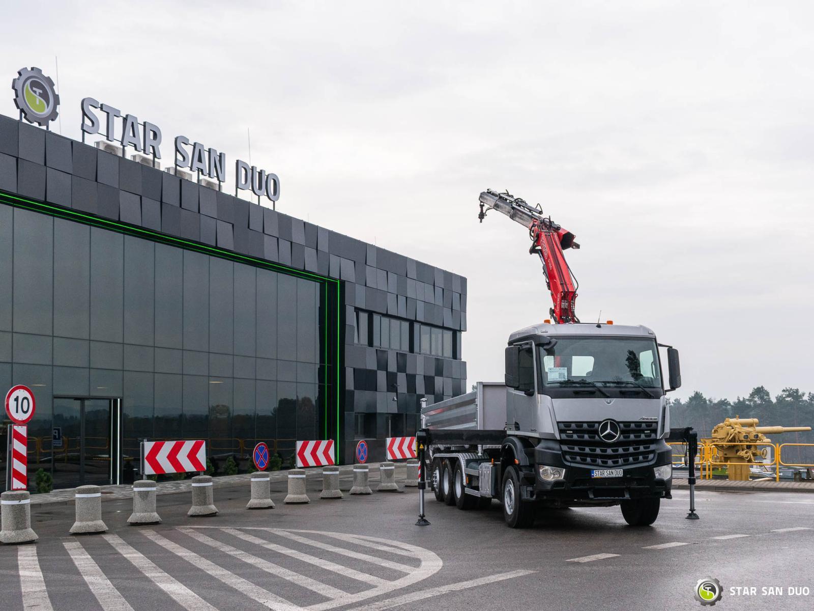 MERCEDES-BENZ AROCS 3643 8x4 FASSI F235A.2.23 E-DYNAMIC ID nr: 1088 ________________________________________ Dane techniczne pojazdu: • MERCEDES-BENZ AROCS 3643 • VIN: WDB9642411L976610 • Napęd: 8x4 • Rok produkcji: 2015 • Pierwsza rejestracja: 12/06/2017 • Moc silnika: 430 KM • Norma spalin: Euro VI • Przebieg: 374494 km • Skrzynia biegów: Automatyczna ________________________________________ Specyfikacja żurawia: • FASSI F235A.2.23 E-Dynamic • 3 segmenty hydrauliczne • Sterowanie radiowe • Rotator • Chwytak • Motogodziny żurawia: 2243 h ________________________________________ Parametry techniczne: • Masa własna: 18 760 kg • Ładowność: 13 240 kg • Dopuszczalna masa całkowita: 32 000 kg ________________________________________ Wymiary przestrzeni ładunkowej: • Długość: 6300 mm • Szerokość: 2410 mm • Wysokość: 800 mm ________________________________________ Rozstaw osi: • 1-2: 4200 mm • 2-3: 1300 mm • 3-4: 1350 mm ________________________________________ Zawieszenie: • Przód: mechaniczne • Tył: pneumatyczne ________________________________________ Wyposażenie dodatkowe: • ABS • Centralny zamek • CD • Elektryczne szyby • Hak/Zaczep • Immobilizer • Komputer pokładowy • Radio fabryczne • Tachograf • Wspomaganie kierownicy • Klimatyzacja ________________________________________ Opcje dodatkowe: • Wywrotka 3-stronna ________________________________________ Usługi serwisowe: • Autoryzowany serwis żurawi marek FASSI, HIAB, EFFER i innych • Naprawy żurawi wszystkich marek oraz samochodów ciężarowych • Dostępność części zamiennych ________________________________________ Badania techniczne i certyfikaty: • Posiadamy uprawnienia Urzędu Dozoru Technicznego (UDT) • Przeprowadzamy badania dozorowe i uzgadniamy dokumentację z UDT • Realizujemy pierwsze badania techniczne pojazdu na Stacjach Diagnostycznych ________________________________________ Gwarancja i przygotowanie do eksploatacji: • Możliwość zakupu gwarancji technicznej za dopłatą • Profesjonalne przygotowanie pojazdu i żurawia do pracy ________________________________________ Finansowanie: Oferujemy pomoc w organizacji leasingu lub kredytu na zakup pojazdu – zapytaj nas o szczegóły. ________________________________________ Lokalizacja: Nasza siedziba znajduje się w Starachowicach. Zapraszamy do osobistego sprawdzenia pojazdu i przeprowadzenia jazdy testowej. ________________________________________ Informacje dodatkowe: Dlaczego warto wybrać naszą ofertę? • Doświadczenie i profesjonalizm: od lat zajmujemy się sprzedażą i serwisem pojazdów terenowych 4x4, 6x6, 8x8. • Kompleksowa obsługa: zapewniamy wsparcie przy zakupie, finansowaniu i serwisowaniu pojazdu. • Gwarancja jakości: każdy pojazd przechodzi szczegółowy przegląd przed sprzedażą, co gwarantuje jego sprawność i niezawodność. ________________________________________ Więcej ofert znajdą Państwo na naszej platformie sprzedażowej : www.starsanduo-trucks.com ________________________________________ Nie czekaj – skontaktuj się z nami już dziś i umów na prezentację pojazdu! ________________________________________ Informacje prawne: Niniejsze ogłoszenie ma charakter wyłącznie informacyjny i nie stanowi oferty w rozumieniu art. 66 § 1 Kodeksu cywilnego. Nasza firma nie ponosi odpowiedzialności za drobne błędy, niepełne informacje lub nieaktualność ogłoszenia.