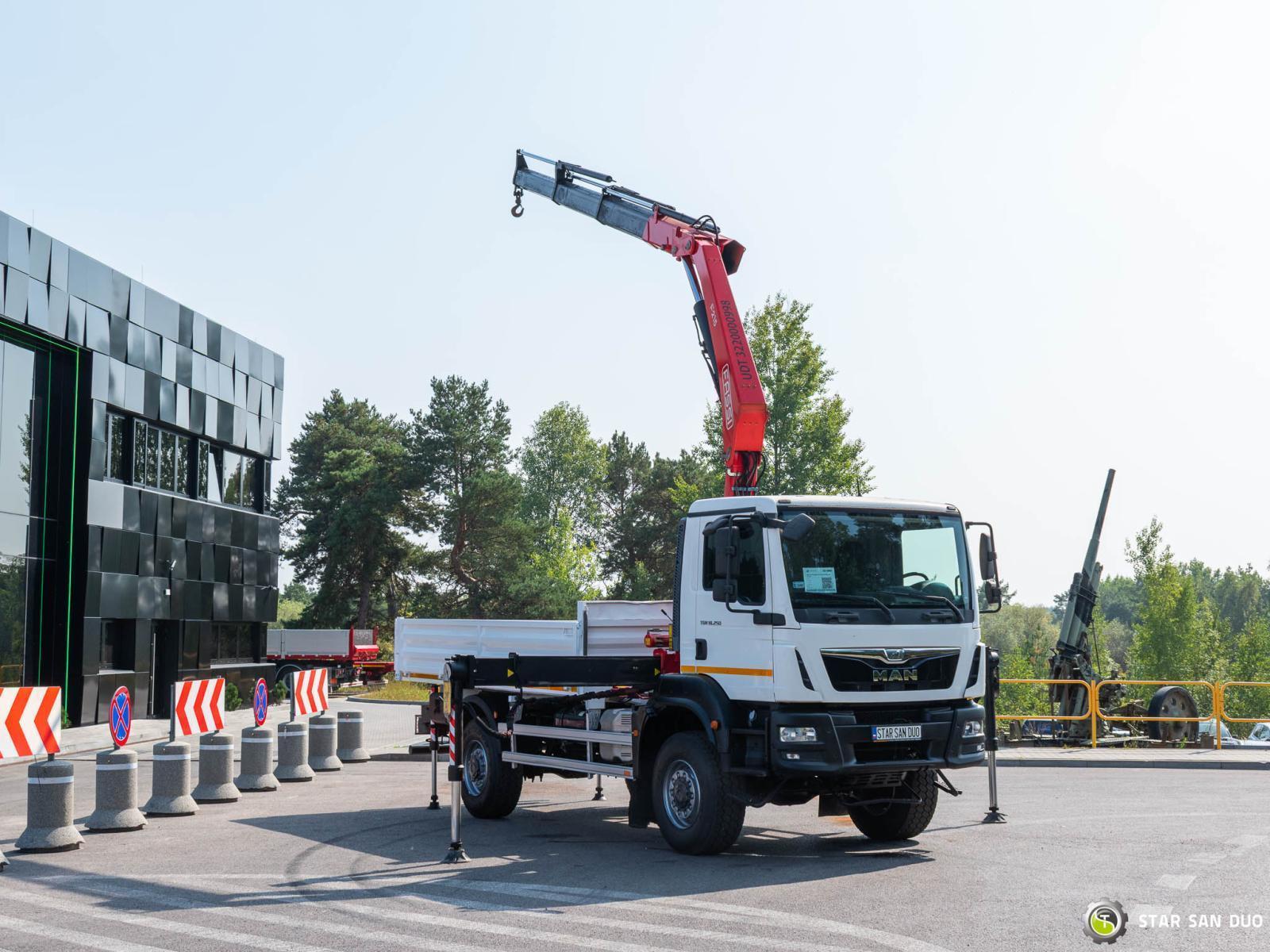 MAN TGM 18.250 4x4 FASSI F215A.0.23 ACTIVE ID: 899 Vehicle specifications: • Model: MAN TGM 18.250 • VIN: WMAN38ZZ4EY319197 • Drive: 4x4 • First registration: 10/09/2014 • Year of manufacture: 2014 • Engine power: 250 HP • Emission standard: Euro VI • Mileage: 63,979 km • Transmission: manual Crane specifications: • Model: Fassi F215A.0.23 Active • 3 hydraulic lifts • Radio control • Crane operating hours: 1052 •For an additional fee, the crane can be equipped with a 4th and 5th arm, extendable manually or hydraulically (sample photos of the arm in the gallery) Technical parameters: • Curb weight: 10,380 kg • Payload: 7,620 kg • Permissible gross vehicle weight in Poland: 18,000 kg kg Cargo space dimensions: • Length: 4,550 mm • Width: 2,420 mm • Height: 600 mm Wheelbase: • 4,100 mm Suspension: • Front: mechanical • Rear: mechanical Additional equipment: • ABS • Central locking • CD player • Electric windows • Towbar • Immobilizer • On-board computer • Factory radio • Tachograph • Power steering • Air conditioning Additional options: • Vehicle fitted with a Fassi F215A.0.23 Active crane Maintenance services: • Authorized service for cranes from FASSI, HIAB, EFFER, and others • Repairs of all brands of cranes and trucks • Spare parts available Technical inspections and certificates: • We are authorized by the Office of Technical Inspection (UDT) • We conduct inspections and we coordinate the documentation with the Office of Technical Inspection (UDT). • We perform the first technical inspections of the vehicle at our Diagnostic Stations. Warranty and preparation for operation: • Possibility to purchase a technical warranty for an additional fee. • Professional preparation of the vehicle and crane for operation. Financing: We offer assistance in arranging a lease or loan for the purchase of a vehicle – ask us for details. Location: Our headquarters is located in Starachowice. We invite you to inspect the vehicle in person and take a test drive. Additional information: Why choose our offer? • Experience and professionalism: We have been selling and servicing 4x4, 6x6, and 8x8 off-road vehicles for years. • Comprehensive service: We provide support with vehicle purchase, financing, and maintenance. • Quality guarantee: Each vehicle undergoes a detailed pre-sale inspection, guaranteeing its operational reliability and reliability. You can find more offers on our sales platform: www.starsanduo-trucks.com Don't wait – contact us today and schedule a vehicle viewing! Legal information: This announcement is for informational purposes only and does not constitute an offer within the meaning of Article 66 § 1 of the Civil Code. Our company is not responsible for minor errors, incomplete information, or outdated information.