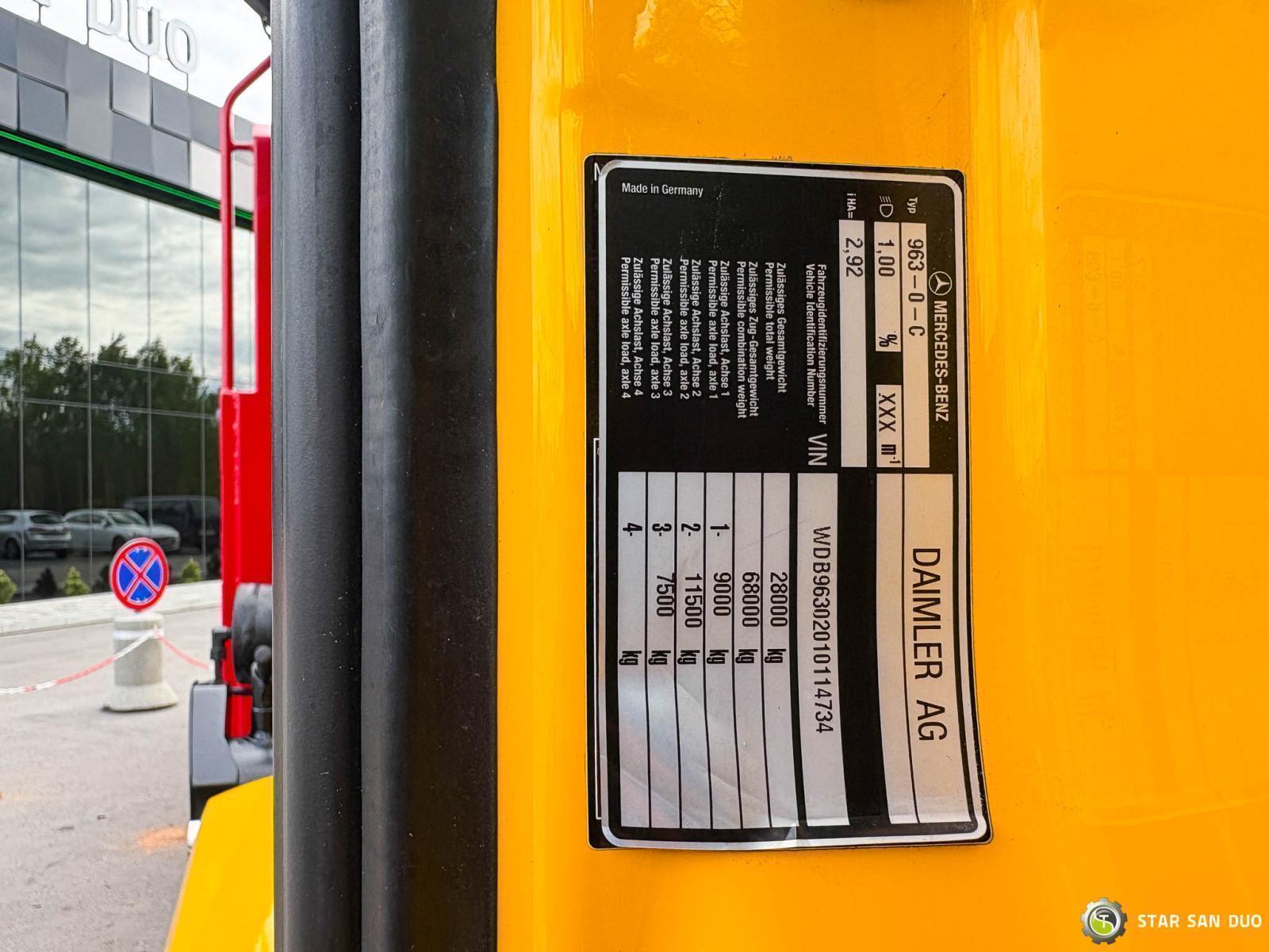MERCEDES-BENZ ACTROS 2536 6x2 PALFINGER PK 26002 EH ID: 861 ________________________________________ Vehicle technical data: Model: Mercedes-Benz Actros 2536 VIN: WDB96302010114734 Drive: 6x2 First registration: 02.03.2017 Engine power: 360 HP Mileage: 296,734 km Gearbox: automatic Emission standard: Euro 6 Cabin: day cab Air conditioning: manual ________________________________________ Crane specification: Model: Palfinger PK 26002 EH 6 hydraulic segments Radio control ________________________________________ Technical parameters: Own weight: 15,970 kg Payload: 10,030 kg Permissible gross weight: 26,000 kg ________________________________________ Cargo space dimensions: Length: 6,600 mm Width: 2,530 mm Height: 600 mm ________________________________________ Wheelbase: Axle 1–2: 1,800 mm Axle 2–3: 1,300 mm ________________________________________ Suspension: Front: mechanical Rear: air ________________________________________ Additional information: Vehicle equipped with a Palfinger PK 26002 EH crane. Imported from Sweden. Ready for registration in Poland. ________________________________________ Additional equipment: • ABS • Central locking • CD • Electric windows • Immobilizer • On-board computer • Tachograph • Power steering ________________________________________ Additional options: • ________________________________________ EXPORT PRICE! ________________________________________ Services: • Authorized service for cranes of the following brands: FASSI, HIAB, EFFER and others • Repairs of cranes of all brands and trucks • Availability of spare parts ________________________________________ Technical tests and certificates: • We have the authorizations of the Office of Technical Inspection (UDT) • We conduct supervision tests and agree on documentation with UDT • We carry out the first technical tests of the vehicle at Diagnostic Stations ________________________________________ Warranty and preparation for operation: • Possibility to purchase a technical guarantee for an additional fee • Professional preparation of the vehicle and crane for work ________________________________________ Financing: We offer assistance in organizing leasing or a loan for the purchase of a vehicle - ask us for details. ________________________________________ Location: Our headquarters is located in Starachowice. We invite you to personally check the vehicle and carry out a test drive. ________________________________________ Additional information: Why is it worth choosing our offer? • Experience and professionalism: we have been selling and servicing 4x4, 6x6, 8x8 off-road vehicles for years. • Comprehensive service: we provide support in purchasing, financing and servicing the vehicle. • Quality guarantee: each vehicle undergoes a detailed inspection before sale, which guarantees its efficiency and reliability. ________________________________________ You can find more offers on our sales platform: www.starsanduo-trucks.com ________________________________________ Don't wait - contact us today and arrange a presentation of the vehicle! ________________________________________ Legal information: This announcement is for informational purposes only and does not constitute an offer within the meaning of Art. 66 § 1 of the Civil Code. Our company is not responsible for minor errors, incomplete information or outdated information in the announcement.