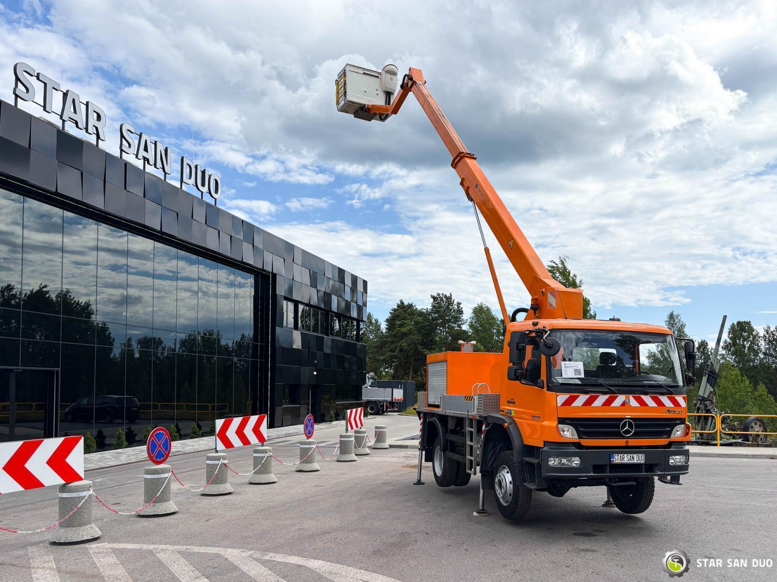 ID No.: 748 Vehicle specifications: • MERCEDES – BENZ ATEGO 1018 • VIN: WDB9703421L182607 • Drive: 4x4 • First registration: 2007 • Engine power: 177 HP • Emission standard: Euro 4 • Mileage: 171,000 km • Gearbox: Manual Lift specification: • WUMAG WT 17 • Working height 17m • Control from the basket ________________________________________ Technical parameters: • Curb weight: 9,130 kg • Payload: 1,370 kg • Permissible gross weight: 10,500 kg ________________________________________ Additional equipment: • ABS • Immobilizer • Factory radio • Tachograph • Power steering ________________________________________ Options additional: • It is possible to install individual wheels as shown in the photo. ________________________________________ Services: • Authorized service for cranes of the following brands: FASSI, HIAB, EFFER and others • Repairs of cranes of all brands and trucks • Availability of spare parts ________________________________________ Technical tests and certificates: • We have the authorizations of the Office of Technical Inspection (UDT) • We conduct supervision tests and agree on documentation with UDT • We carry out the first technical tests of the vehicle at Diagnostic Stations ________________________________________ Warranty and preparation for operation: • Possibility to purchase a technical guarantee for an additional fee • Professional preparation of the vehicle and crane for work ________________________________________ Financing: We offer assistance in organizing leasing or a loan for the purchase of a vehicle - ask us for details. ________________________________________ Location: Our headquarters is located in Starachowice. We invite you to personally check the vehicle and carry out a test drive. ________________________________________ Additional information: Why is it worth choosing our offer? • Experience and professionalism: for years we have been involved in the sale and service of 4x4, 6x6, 8x8 off-road vehicles. • Comprehensive service: we provide support in the purchase, financing and servicing of the vehicle. • Quality guarantee: each vehicle undergoes a detailed inspection before sale, which guarantees its efficiency and reliability. ________________________________________ You can find more offers on our sales platform: www.starsanduo-trucks.com ________________________________________ Don't wait - contact us today and arrange a presentation of the vehicle! ________________________________________ Legal information: This announcement is for information purposes only and does not constitute an offer within the meaning of Art. 66 § 1 of the Civil Code. Our company is not responsible for minor errors, incomplete information or outdated information in the announcement.