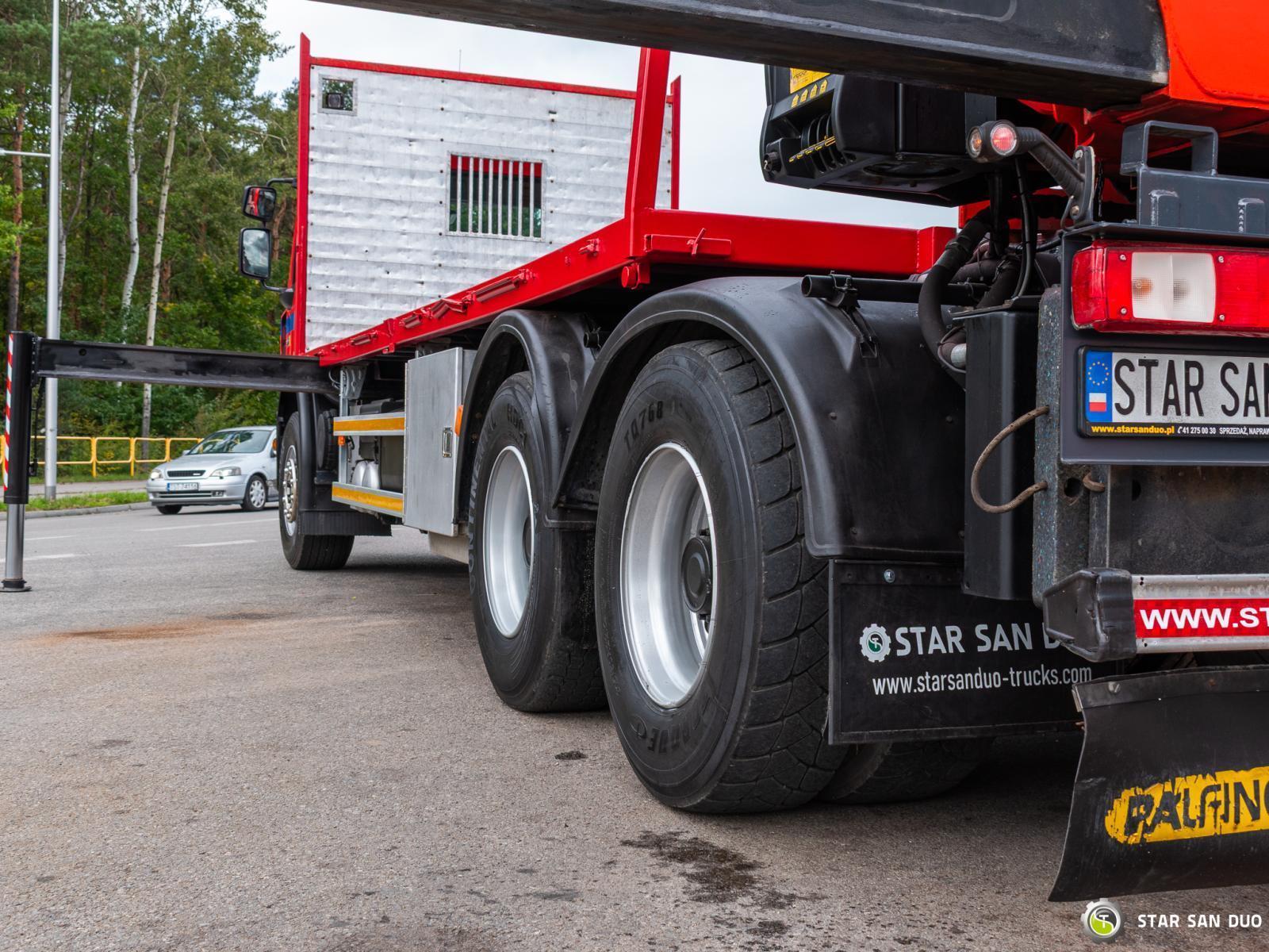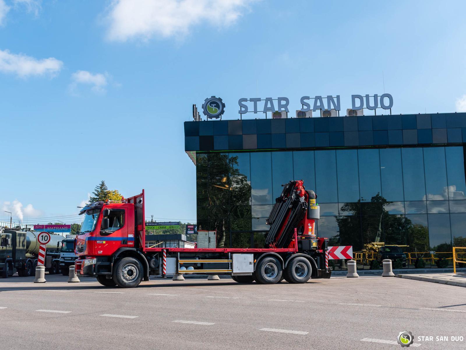 RENAULT PREMIUM 410 6x4 PALFINGER PK 50002 EH ID: 920 ________________________________________ Vehicle specifications: • Model: Renault Lander 410 6x4 • VIN: VF624DPD000000849 • Drive: 6x4 • Year of manufacture: 2009 • First registration: August 28, 2009 • Engine power: 410 HP • Emission standard: Euro 5 • Mileage: 185,280 km • Gearbox: manual ________________________________________ Crane specifications: • PALFINGER PK 50002 EH • 6 hydraulic segments + FLY JIB 4 hydraulic segments • Radio control • Hydraulic winch ________________________________________ Technical parameters: • Curb weight: 20,600 kg • Payload: 5,400 kg • Permissible gross vehicle weight in Poland: 26,000 kg ________________________________________ Cargo space dimensions: • Length: 6,100 mm • Width: 2,420 mm ________________________________________ Wheelbase: • Axle 1-2: 5,500 mm • Axle 2-3: 1,350 mm ________________________________________ Suspension: • Front: mechanical • Rear: mechanical ________________________________________ Additional equipment: • ABS • Central locking • CD • Electric windows • Tow bar/hook • Immobilizer • On-board computer • Factory radio • Tachograph • Power steering • Air conditioning ________________________________________ Additional options: • ________________________________________ Services: • Authorized service for FASSI, HIAB, EFFER and other cranes Other • Repairs of all brands of cranes and trucks • Spare parts available ________________________________________ Technical inspections and certificates: • We are authorized by the Office of Technical Inspection (UDT) • We conduct inspections and coordinate documentation with UDT • We conduct initial vehicle technical inspections at Diagnostic Stations ________________________________________ Warranty and preparation for operation: • Possibility to purchase a technical warranty for an additional fee • Professional preparation of the vehicle and crane for operation ________________________________________ Financing: We offer assistance in arranging leasing or a loan for the purchase of a vehicle – ask us for details. ________________________________________ Location: Our headquarters is in Starachowice. We invite you to inspect the vehicle in person and take a test drive. ________________________________________ Additional information: Why choose us? • Experience and professionalism: We have been selling and servicing 4x4, 6x6, and 8x8 off-road vehicles for years. • Comprehensive service: we provide support with vehicle purchase, financing, and maintenance. • Quality guarantee: each vehicle undergoes a detailed pre-sale inspection, guaranteeing its reliability and roadworthiness. ________________________________________ You can find more offers on our sales platform: www.starsanduo-trucks.com ________________________________________ Don't wait – contact us today and schedule a vehicle viewing! ________________________________________ Legal information: This announcement is for informational purposes only and does not constitute an offer within the meaning of Article 66 § 1 of the Civil Code. Our company is not responsible for minor errors, incomplete information, or outdated information.