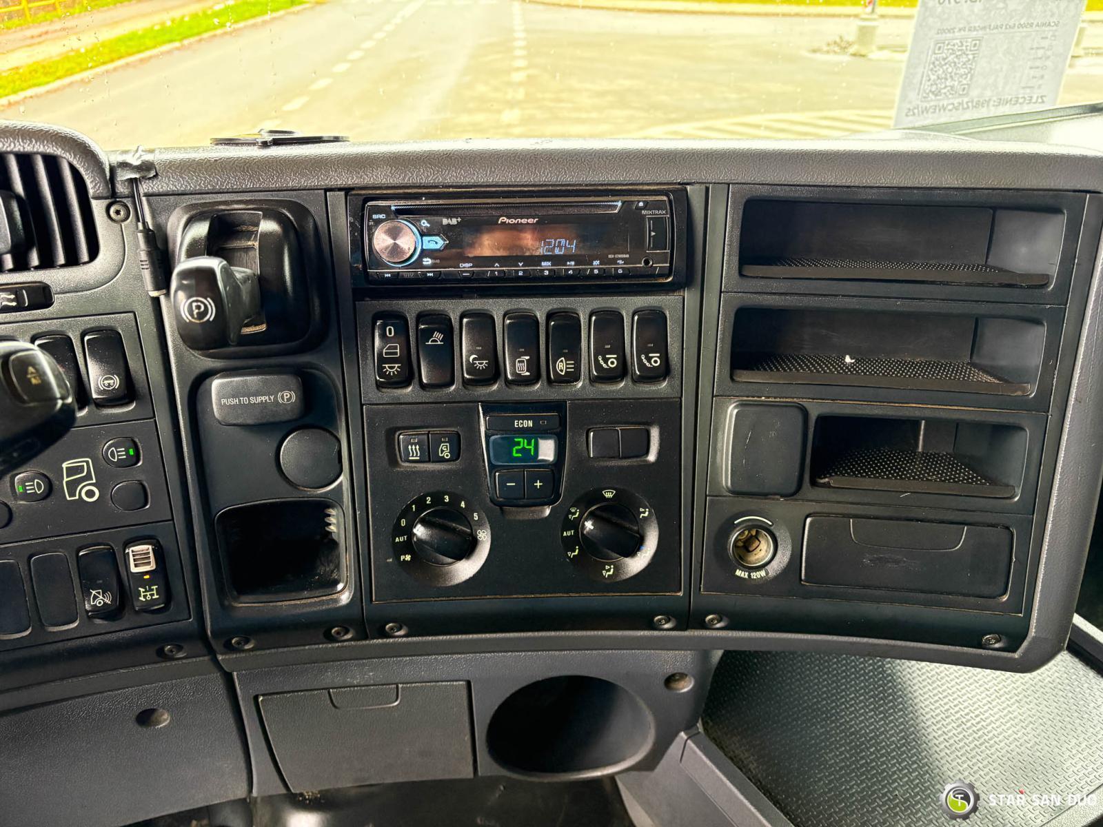 SCANIA R500 6x2 PALFINGER PK 29002 ID No.: 970 ________________________________________ Vehicle specifications: • Model: Scania R500 • VIN: YS2R6X20002042251 • Drive: 6x2 • Year of manufacture: 2008 • First registration: 10/11/2008 • Engine power: 500 HP • Emission standard: Euro IV • Mileage: 475,292 km • Gearbox: automatic • Suspension: mechanical front / air rear ____________________________________________________ Crane specifications: • Palfinger PK 29002 • 8 hydraulic lifts • Radio control • Crane operating hours: 7,390 h ____________________________________________________ Technical parameters: • Curb weight: 16,985 kg • Permissible Gross vehicle weight (GVW) in Poland: 26,000 kg • Payload: 9,015 kg ________________________________________ Cargo space dimensions: • Length: 6,400 mm • Width: 2,450 mm • Height: 600 mm ________________________________________ Wheelbase: • Axle 1-2: 4,700 mm • Axle 2-3: 1,360 mm ________________________________________ Last axle: • liftable ________________________________________ Overall vehicle dimensions: • Overall length: 10,120 mm • Overall height: 3,500 mm ________________________________________ Additional equipment: • ABS • Central locking • CD player • Electric windows • Towbar • Immobilizer • On-board computer • Factory radio • Tachograph • Power steering • Air conditioning ________________________________________ Services: • Authorized service for cranes from FASSI, HIAB, EFFER, and others • Repairs of all crane brands and trucks • Spare parts availability ________________________________________ Technical inspections and certificates: • We are authorized by the Office of Technical Inspection (UDT) • We conduct inspections and coordinate documentation with UDT • We conduct initial vehicle technical inspections at Diagnostic Stations ________________________________________ Warranty and preparation for operation: • Possibility to purchase a technical warranty for an additional fee • Professional preparation of the vehicle and crane for operation ________________________________________ Financing: We offer assistance in arranging leasing or a loan for the purchase of a vehicle – ask us for details. ________________________________________ Location: Our headquarters is located in Starachowice. We invite you to inspect the vehicle in person and take a test drive. ________________________________________ Additional Information: Why choose our offer? • Experience and professionalism: We have been selling and servicing 4x4, 6x6, and 8x8 off-road vehicles for years. • Comprehensive service: We provide support with vehicle purchase, financing, and servicing. • Quality guarantee: Each vehicle undergoes a detailed pre-sale inspection, guaranteeing its reliability and roadworthiness. ____________________________________________________ You can find more offers on our sales platform: www.starsanduo-trucks.com ____________________________________________________ Don't wait – contact us today and schedule a vehicle viewing! ____________________________________________________ Legal information: This announcement is for informational purposes only and does not constitute an offer within the meaning of Article 66 §1 of the Civil Code. Our company is not responsible for minor errors, incomplete information, or outdated information.