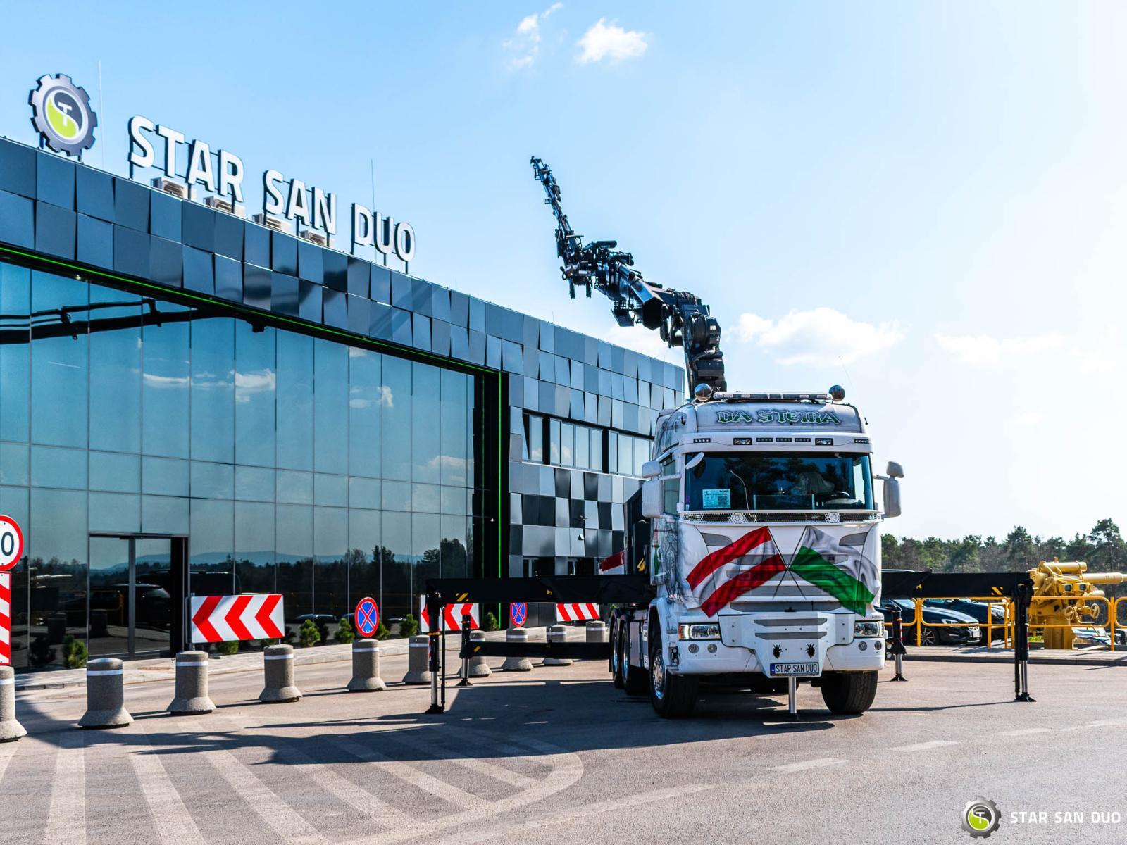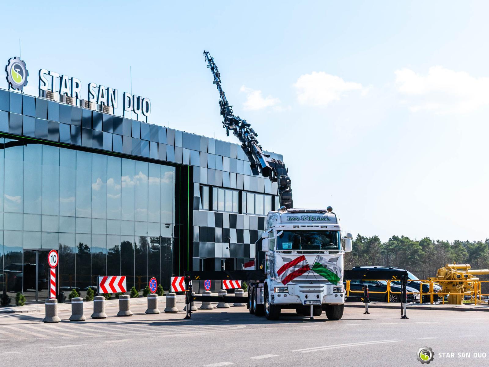 ID nr: 1051 SCANIA R450 6x4 PALFINGER PK 53002 SH ________________________________________ Dane techniczne pojazdu: • SCANIA R450 • VIN: YS2R6X40005456367 • Napęd: 6x4 • Pierwsza rejestracja: 23.06.2017 • Moc silnika: 450 KM • Norma spalin: Euro 6 • Przebieg: 289 466 km • Skrzynia biegów: Automatyczna • Zdejmowana paka • Siodło ________________________________________ Specyfikacja żurawia: • PALFINGER PK 53002 SH • 6 segmentów hydraulicznych + 6 segmentów Fly Jib • 1 segment ręczny • Wciągarka na żurawiu • Sterowanie radiowe • Power Pack • Motogodziny żurawia (Σh): 6 630 h • Motogodziny systemu AOS: 971 h • Motogodziny wysuwu: 5 284 h • Motogodziny wciągarki: 478 h ________________________________________ Parametry techniczne: • Masa własna: 22 150 kg • Dopuszczalna masa całkowita: 26 000 kg • Ładowność: 3 850 kg ________________________________________ Wymiary przestrzeni ładunkowej: • Długość: 4 000 mm • Szerokość: 2 420 mm • Wysokość: 600 mm • Długość całkowita: 8 550 mm • Wysokość całkowita: 4 000 mm ________________________________________ Rozstaw osi: • 1-2: 3 500 mm • 2-3: 1 370 mm ________________________________________ Zawieszenie: • Przód: mechaniczne • Tył: pneumatyczne ________________________________________ Wyposażenie dodatkowe: • ABS • Centralny zamek • CD • Elektryczne szyby • Hak/Zaczep • Immobilizer • Komputer pokładowy • Radio fabryczne • Tachograf • Wspomaganie kierownicy • Klimatyzacja ________________________________________ Opcje dodatkowe: • Pojazd wyposażony w zdejmowaną platformę ładunkową • Możliwość pracy jako ciągnik siodłowy • Wciągarka hydrauliczna na żurawiu • Power Pack ________________________________________ Usługi serwisowe: • Autoryzowany serwis żurawi marek FASSI, HIAB, EFFER i innych • Naprawy żurawi wszystkich marek oraz samochodów ciężarowych • Dostępność części zamiennych ________________________________________ Badania techniczne i certyfikaty: • Posiadamy uprawnienia Urzędu Dozoru Technicznego (UDT) • Przeprowadzamy badania dozorowe i uzgadniamy dokumentację z UDT • Realizujemy pierwsze badania techniczne pojazdu na Stacjach Diagnostycznych ________________________________________ Gwarancja i przygotowanie do eksploatacji: • Możliwość zakupu gwarancji technicznej za dopłatą • Profesjonalne przygotowanie pojazdu i żurawia do pracy ________________________________________ Finansowanie: Oferujemy pomoc w organizacji leasingu lub kredytu na zakup pojazdu - zapytaj nas o szczegóły. ________________________________________ Lokalizacja: Nasza siedziba znajduje się w Starachowicach. Zapraszamy do osobistego sprawdzenia pojazdu i przeprowadzenia jazdy testowej. ________________________________________ Informacje dodatkowe: Dlaczego warto wybrać naszą ofertę? • Doświadczenie i profesjonalizm: od lat zajmujemy się sprzedażą i serwisem pojazdów terenowych 4x4, 6x6, 8x8. • Kompleksowa obsługa: zapewniamy wsparcie przy zakupie, finansowaniu i serwisowaniu pojazdu. • Gwarancja jakości: każdy pojazd przechodzi szczegółowy przegląd przed sprzedażą, co gwarantuje jego sprawność i niezawodność. ________________________________________ Więcej ofert znajdą Państwo na naszej platformie sprzedażowej: www.starsanduo-trucks.com ________________________________________ Nie czekaj - skontaktuj się z nami już dziś i umów na prezentację pojazdu! ________________________________________ Informacje prawne: Niniejsze ogłoszenie ma charakter wyłącznie informacyjny i nie stanowi oferty w rozumieniu art. 66 § 1 Kodeksu cywilnego. Nasza firma nie ponosi odpowiedzialności za drobne błędy, niepełne informacje lub nieaktualność ogłoszenia.
