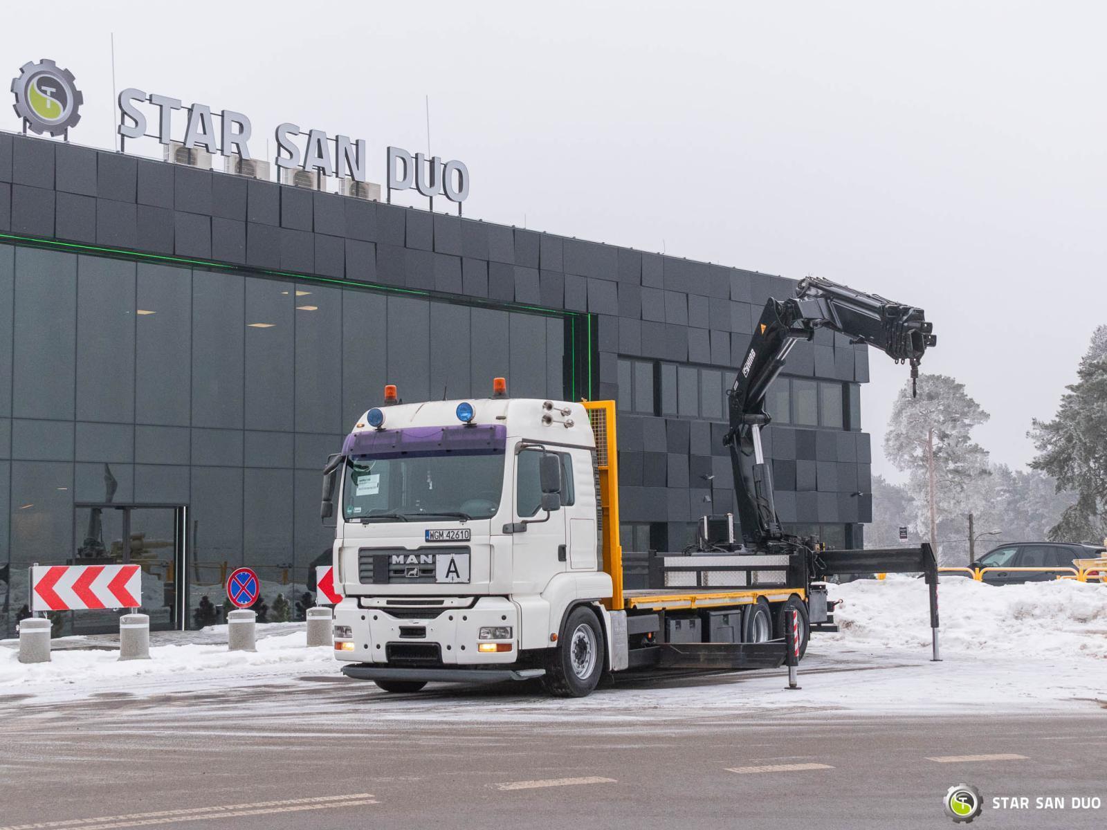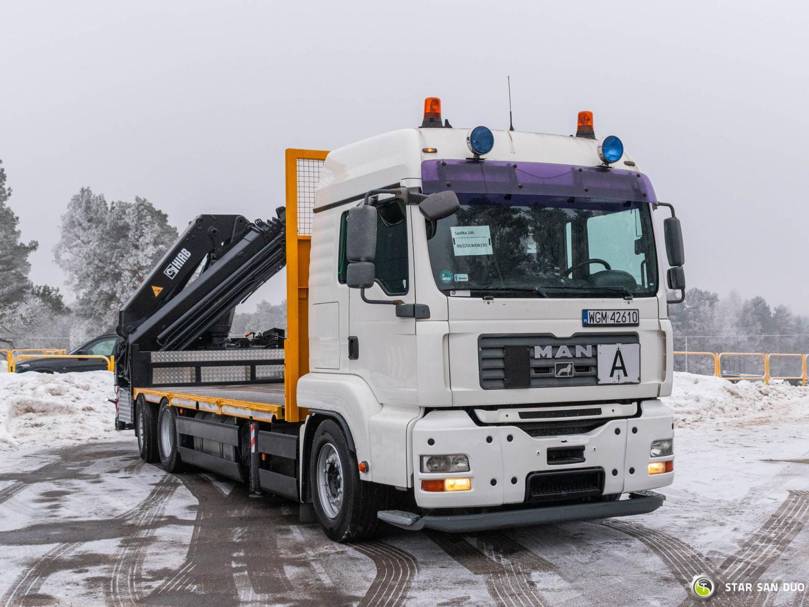 MAN TGA 26.460 HIAB 477 EP-5 HIPRO ID No.: 146 ________________________________________ Vehicle specifications: • MAN TGA 26.460 • VIN: WMAH21ZZX8W101336 • Drive: 6x4 • Year of manufacture: 2007 • First registration: 14.12.2007 • Engine power: 460 HP (324 kW) • Emission standard: Euro 4 • Mileage: 883,972 km • Gearbox: Manual ____________________________________________________ Crane specifications: • HIAB 477 EP-5 HIPRO • Number of hydraulic segments: 5 • Radio control • Overall length: 6,300 mm • Overall width: 2,520 mm ____________________________________________________ Technical parameters: • Curb weight: 19,060 kg • Permissible gross vehicle weight (GVW) in Poland: 26,000 kg • Payload: 6,940 kg • Number of axles: 3 ________________________________________ Additional equipment: • ABS • Central locking • CD player • Electric windows • Towbar • Immobilizer • On-board computer • Factory radio • Tachograph • Power steering • Air conditioning ________________________________________ Additional options: • ________________________________________ Services: • Authorized service for cranes from FASSI, HIAB, EFFER, and others • Repairs of all crane brands and trucks • Spare parts availability ________________________________________ Technical inspections and certificates: • We are authorized by the Office of Technical Inspection (UDT) • We conduct inspections and coordinate documentation with UDT • We perform initial technical inspections of the vehicle at Diagnostic Stations ________________________________________ Warranty and preparation for operation: • Possibility to purchase a technical warranty for an additional fee • Professional preparation of the vehicle and crane for Jobs ________________________________________ Financing: We offer assistance in arranging a lease or loan for the purchase of a vehicle – ask us for details. ________________________________________ Location: Our office is in Starachowice. We invite you to inspect the vehicle in person and take it for a test drive. ________________________________________ Additional Information: Why choose our offer? • Experience and professionalism – we have been selling and servicing specialized vehicles for years • Comprehensive service – sales, financing, service • Each vehicle undergoes a detailed inspection before sale ________________________________________ You can find more offers on our sales platform: www.starsanduo-trucks.com ________________________________________ Don't wait – contact us today and schedule a vehicle viewing. ________________________________________ Legal Information: This announcement is for informational purposes only and does not constitute an offer within the meaning of Article 66 § 1 of the Civil Code. The company is not responsible for any errors, incomplete information or outdated advertisements.