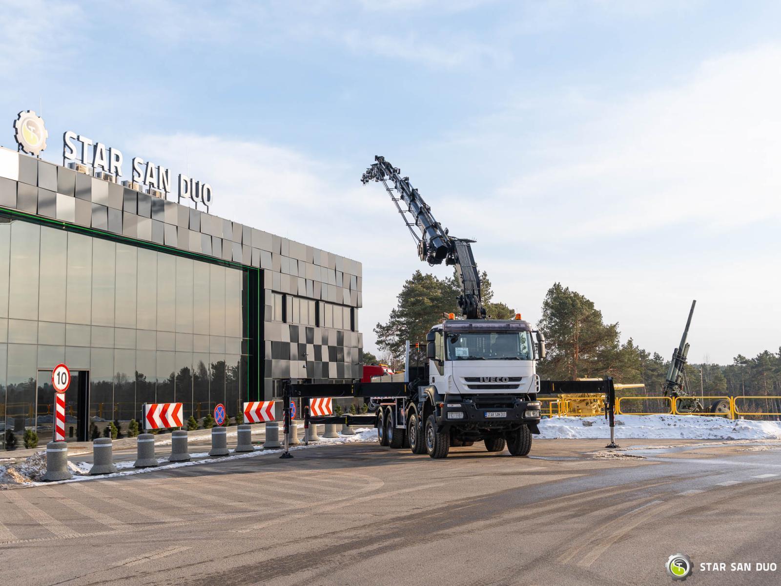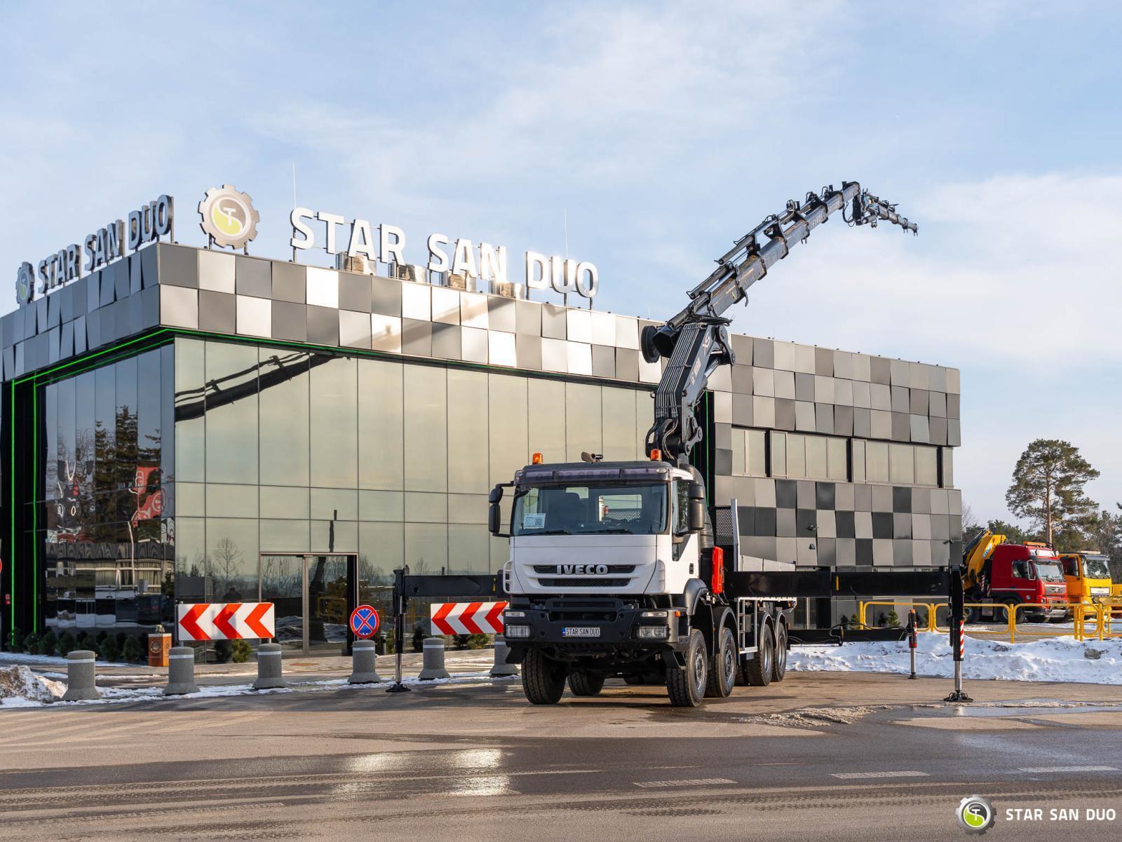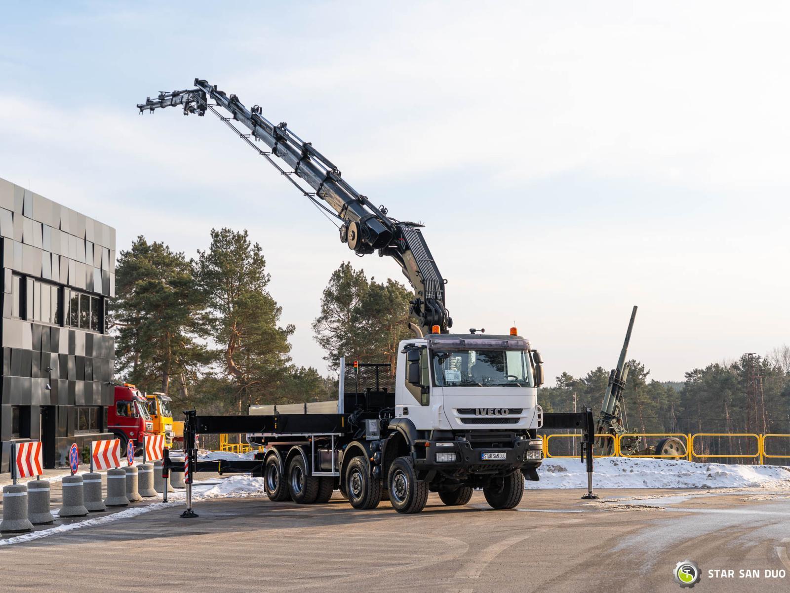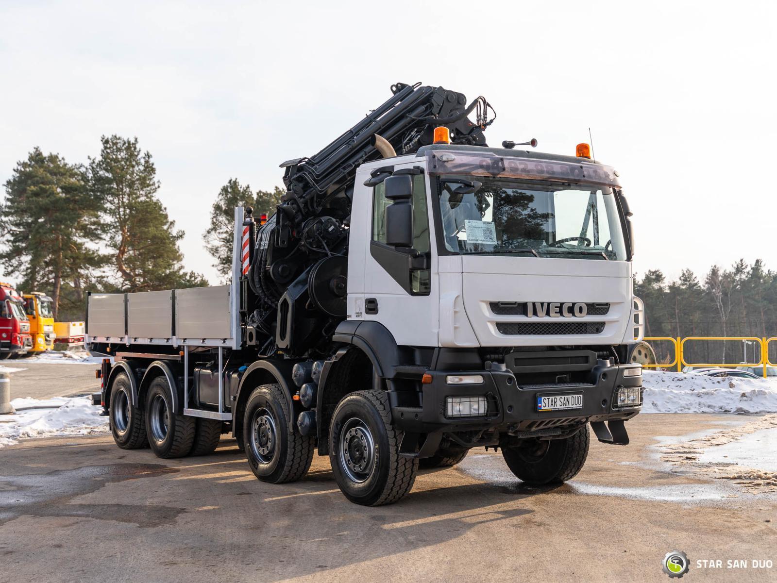 IVECO TRAKKER AD 450 8x8 ID No.: 1049 ________________________________________ Vehicle specifications: • IVECO TRAKKER AD 450 • VIN: WJMJ4CT940C202463 • Drive: 8x8 • Year of manufacture: 2008 • First registration: 23/19/2008 • Engine power: 450 HP • Emission standard: Euro IV • Mileage: 204,500 km • Gearbox: Manual ____________________________________________________ Crane specifications: • HIAB E-7 • 7 hydraulic lifts + 4 Fly Jib lifts • Winch on crane • Radio control ____________________________________________________ Technical parameters: • Kerb weight: 26,565 kg • Gross vehicle weight (GVW) in Poland: 32,000 kg • Payload: 5,435 kg ________________________________________ Cargo space dimensions: • Length: 5,000 mm • Width: 2,450 mm • Height: 600 mm ________________________________________ Vehicle dimensions: • Overall length: 9,200 mm • Overall height: 4,000 mm ________________________________________ Wheelbase: • Axle 1-2: 1,875 mm • Axle 2-3: 2,875 mm • Axle 3-4: 1,400 mm ________________________________________ Suspension: • Front / rear: mechanical • Last axle: - ________________________________________ Optional equipment: • ABS • Central locking • CD player • Electric windows • Towbar • Immobilizer • On-board computer • Factory radio • Tachograph • Power steering • Air conditioning ____________________________________________________ Additional options: • ________________________________________ Maintenance services: • Authorized service for cranes from FASSI, HIAB, EFFER, and others • Repairs of all brands of cranes and trucks • Spare parts available ________________________________________ Technical inspections and certificates: • We are authorized by the Office of Technical Inspection (UDT) • We conduct inspections and coordinate documentation with UDT • We conduct initial vehicle technical inspections at Diagnostic Stations ________________________________________ Warranty and preparation for operation: • Possibility to purchase a technical warranty for an additional fee • Professional preparation of the vehicle and crane for operation ________________________________________ Financing: We offer assistance in arranging a lease or loan for the purchase of a vehicle – ask us for details. ________________________________________ Location: Our headquarters is located in Starachowice. We invite you to inspect the vehicle in person and take a test drive. ________________________________________ Additional Information: Why choose our offer? • Experience and professionalism: we have been selling and servicing 4x4, 6x6, and 8x8 off-road vehicles for years • Comprehensive service: we provide support with vehicle purchase, financing, and servicing • Quality guarantee: each vehicle undergoes a detailed pre-sale inspection, guaranteeing its reliability and roadworthiness ________________________________________ You can find more offers on our sales platform: www.starsanduo-trucks.com ________________________________________ Don't wait – contact us today and schedule a vehicle viewing! ________________________________________ Legal information: This announcement is for informational purposes only and does not constitute an offer within the meaning of Article 66 § 1 of the Civil Code. Our company is not responsible for minor errors, incomplete information, or outdated information.