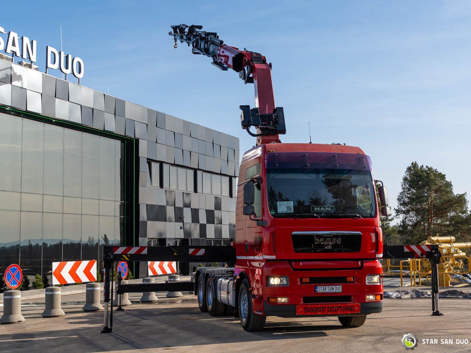 MAN TGA 26.530 6x4 PALFINGER PK 50002 EH ID: 1050 ________________________________________ Vehicle specifications: • MAN TGA 26.530 • VIN: WMAH292Z96M441455 • Drive: 6x4 • Year of manufacture: 2006 • First registration: 02/02/2006 • Engine power: 530 HP • Emission standard: Euro IV • Mileage: 716,345 km • Gearbox: Automatic ____________________________________________________ Crane specifications: • PALFINGER PK 50002 EH • 6 hydraulic segments • Radio control ____________________________________________________ Technical parameters: • Curb weight: 19,610 kg • Gross vehicle weight (GVW) in Poland: 26,000 kg • Payload (calculated): 6,390 kg ________________________________________ Dimensions: • Overall length: 8,720 mm • Overall height: 4,000 mm ________________________________________ Additional equipment: • ABS • Central locking • CD player • Electric windows • Hook/Cable • Immobilizer • On-board computer • Factory radio • Tachograph • Power steering • Air conditioning ________________________________________ Additional options: • Tractor unit with HDS crane ________________________________________ Services: • Authorized service for cranes of FASSI, HIAB, EFFER, and others • Repairs of all brands of cranes and trucks • Spare parts availability ________________________________________ Technical inspections and certificates: • We are authorized by the Office of Technical Inspection (UDT) • We conduct inspections and coordinate documentation with UDT • We carry out First vehicle technical inspection at Diagnostic Stations ________________________________________ Warranty and preparation for operation: • Possibility to purchase a technical warranty for an additional fee • Professional preparation of the vehicle and crane for operation ________________________________________ Financing: We offer assistance in arranging a lease or loan for the purchase of a vehicle – ask us for details. ________________________________________ Location: Our headquarters is in Starachowice. We invite you to inspect the vehicle in person and take a test drive. ________________________________________ Additional information: Why choose our offer? • Experience and professionalism: We have been selling and servicing 4x4, 6x6, and 8x8 off-road vehicles for years. • Comprehensive service: We provide support with the purchase, financing, and servicing of the vehicle. • Quality guarantee: Each vehicle undergoes a detailed pre-sale inspection, guaranteeing its operational reliability and reliability. ________________________________________ You can find more offers on our sales platform: www.starsanduo-trucks.com ________________________________________ Don't wait – contact us today and schedule a vehicle viewing! ________________________________________ Legal information: This announcement is for informational purposes only and does not constitute an offer within the meaning of Article 66 § 1 of the Civil Code. Our company is not responsible for minor errors, incomplete information, or out-of-date information.
