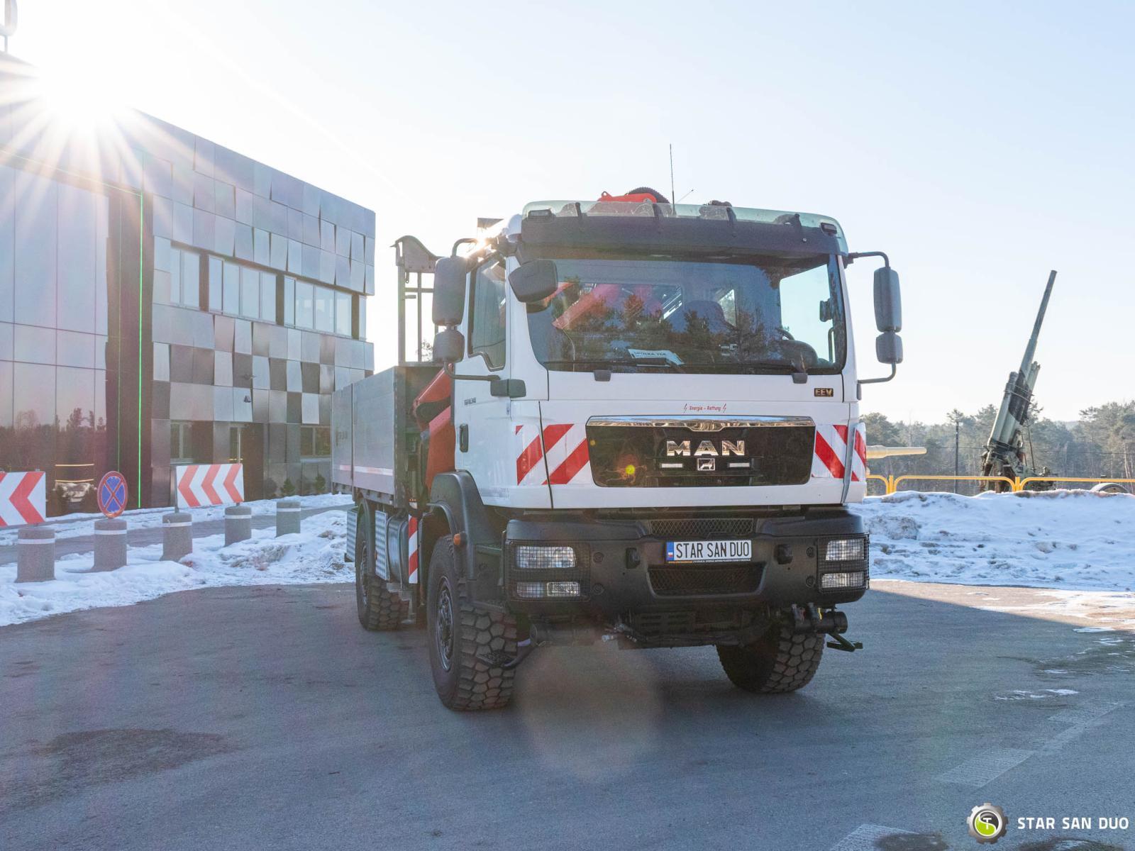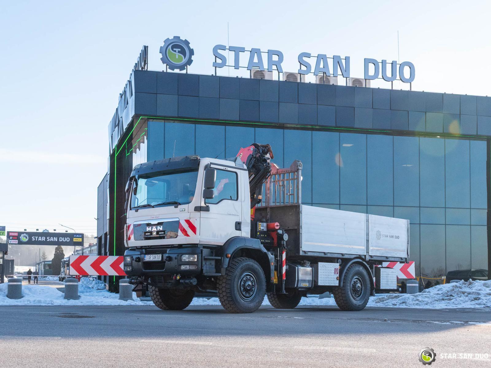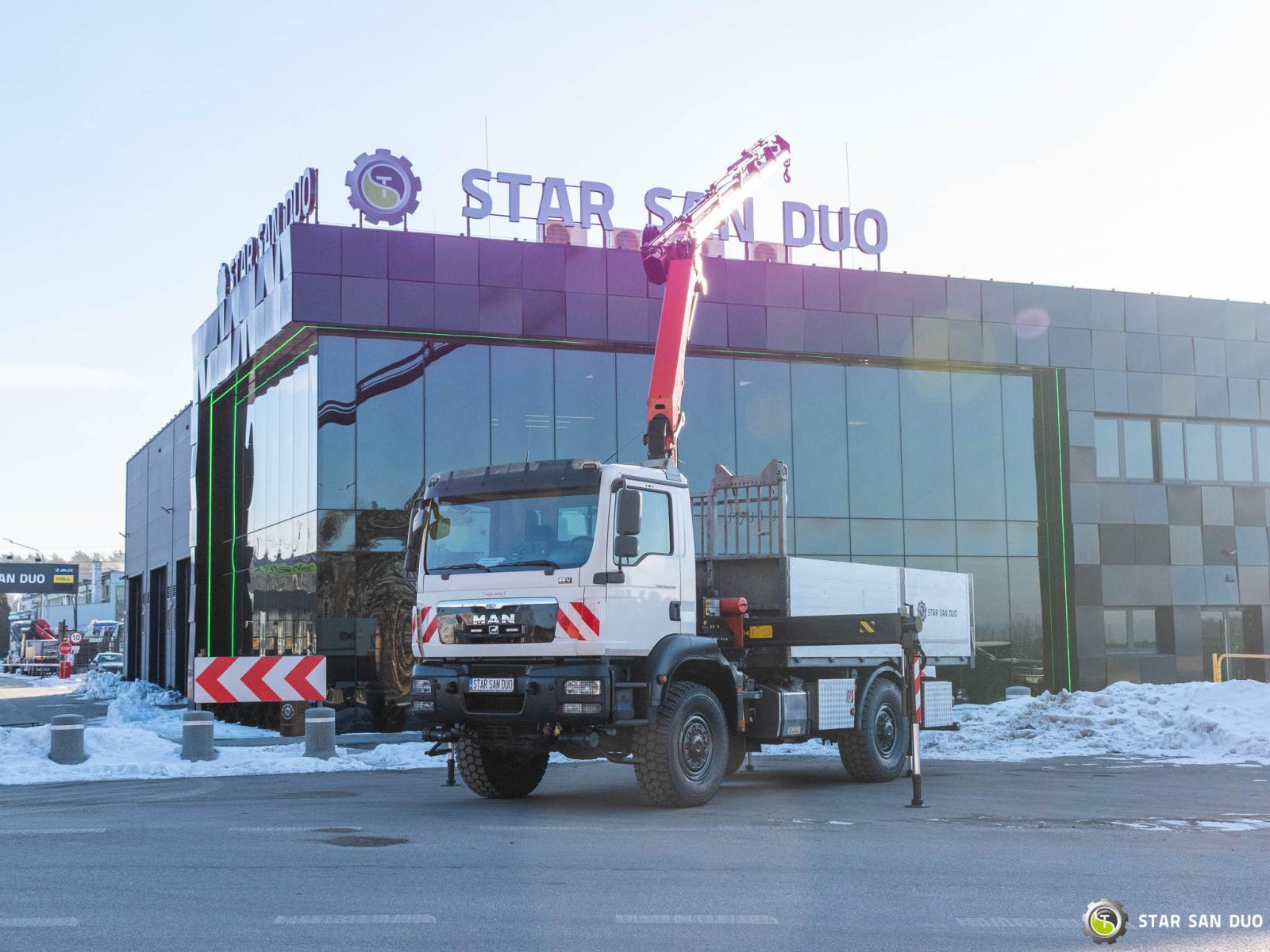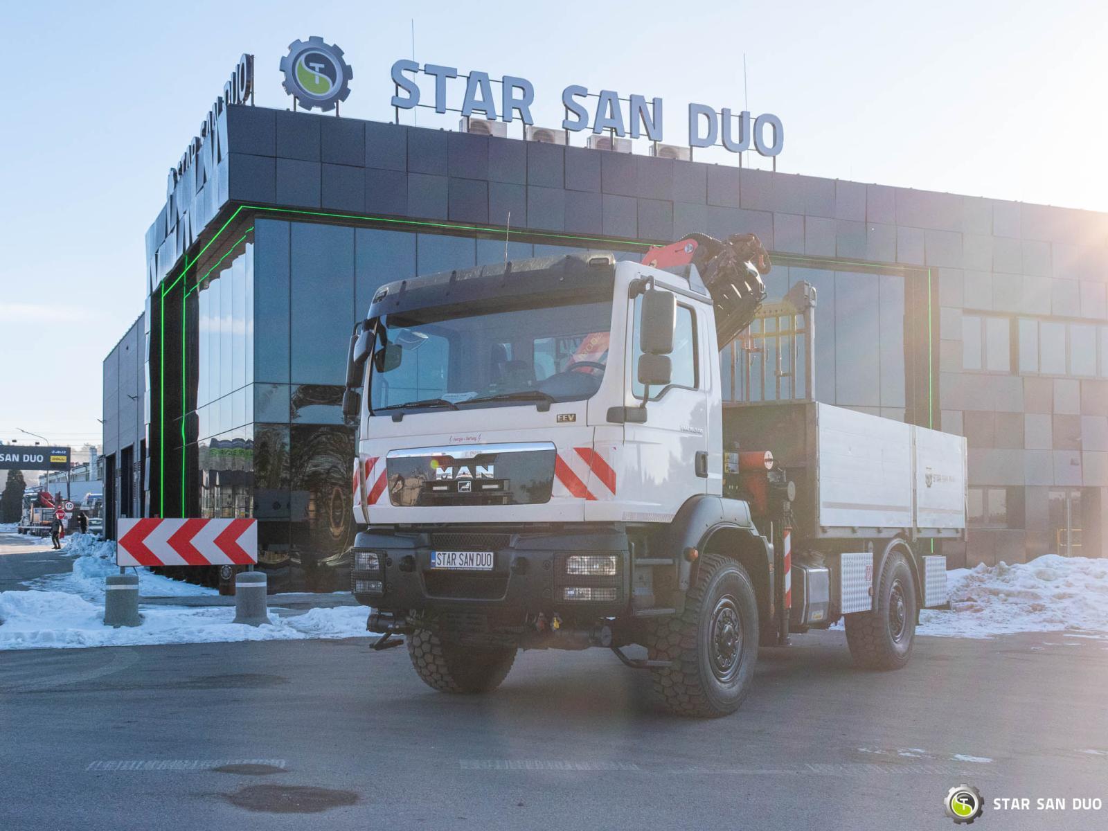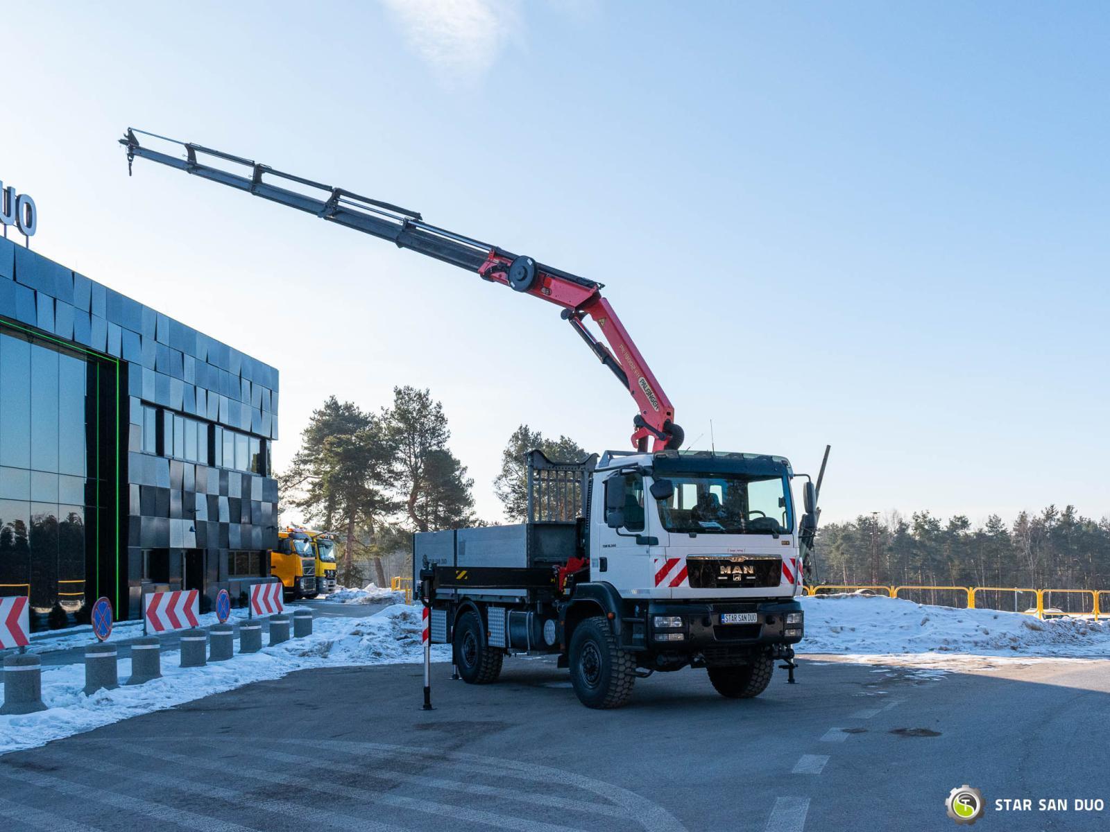 MAN TGM 18.340 4x4 PALFINGER PK 18002-D ID No.: 768 ________________________________________ Vehicle specifications: • MAN TGM 18.340 • VIN: WMAN38ZZ9BY269036 • Drive: 4x4 • Year of manufacture: 2011 • First registration: 24.11.2011 • Engine power: 340 HP (250 kW) • Emission standard: Euro V • Mileage: 190,713 km • Transmission: Manual ________________________________________ Crane specifications: • PALFINGER PK 18002-D • 5 hydraulic lifts + 1 manual lift • Radio control ________________________________________ Technical parameters: • Curb weight: 12,740 kg • Permissible gross vehicle weight (GVW) for Poland: 18,000 kg • Payload: 5,185 kg ________________________________________ Cargo space dimensions: • Length: — • Width: — • Height: — ________________________________________ Additional equipment: • ABS • Central locking • CD player • Electric windows • Hook/Cable • Immobilizer • On-board computer • Factory radio • Tachograph • Power steering • Air conditioning ________________________________________ Additional options: • ________________________________________ Maintenance services: • Authorized service for cranes from FASSI, HIAB, EFFER, and others • Repairs of all crane brands and trucks • Spare parts availability ________________________________________ Technical inspections and certificates: • We are authorized by the Office of Technical Inspection (UDT) • We conduct inspections and coordinate documentation with UDT • We perform the first technical inspections of the vehicle Diagnostic Stations ________________________________________ Warranty and preparation for operation: • Possibility to purchase a technical warranty for an additional fee • Professional preparation of the vehicle and crane for operation ________________________________________ Financing: We offer assistance in arranging a lease or loan for the purchase of a vehicle – ask us for details. ________________________________________ Location: Our headquarters is in Starachowice. We invite you to inspect the vehicle in person and take a test drive. ________________________________________ Additional information: Why choose our offer? • Experience and professionalism – we have been selling and servicing 4x4, 6x6, and 8x8 off-road vehicles for years. • Comprehensive service – support with purchase, financing, and servicing. • Quality guarantee – each vehicle undergoes a detailed inspection before sale. ________________________________________ You can find more offers on our sales platform: www.starsanduo-trucks.com ________________________________________ Don't wait – contact us today and schedule a vehicle viewing! ________________________________________ Legal information: This announcement is for informational purposes only and does not constitute an offer within the meaning of Article 66 § 1 of the Civil Code. Our company is not responsible for minor errors, incomplete information, or outdated information.