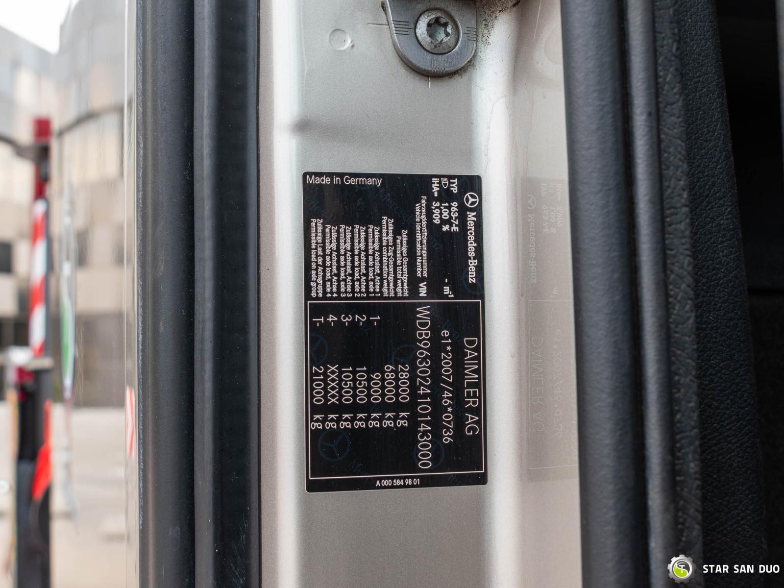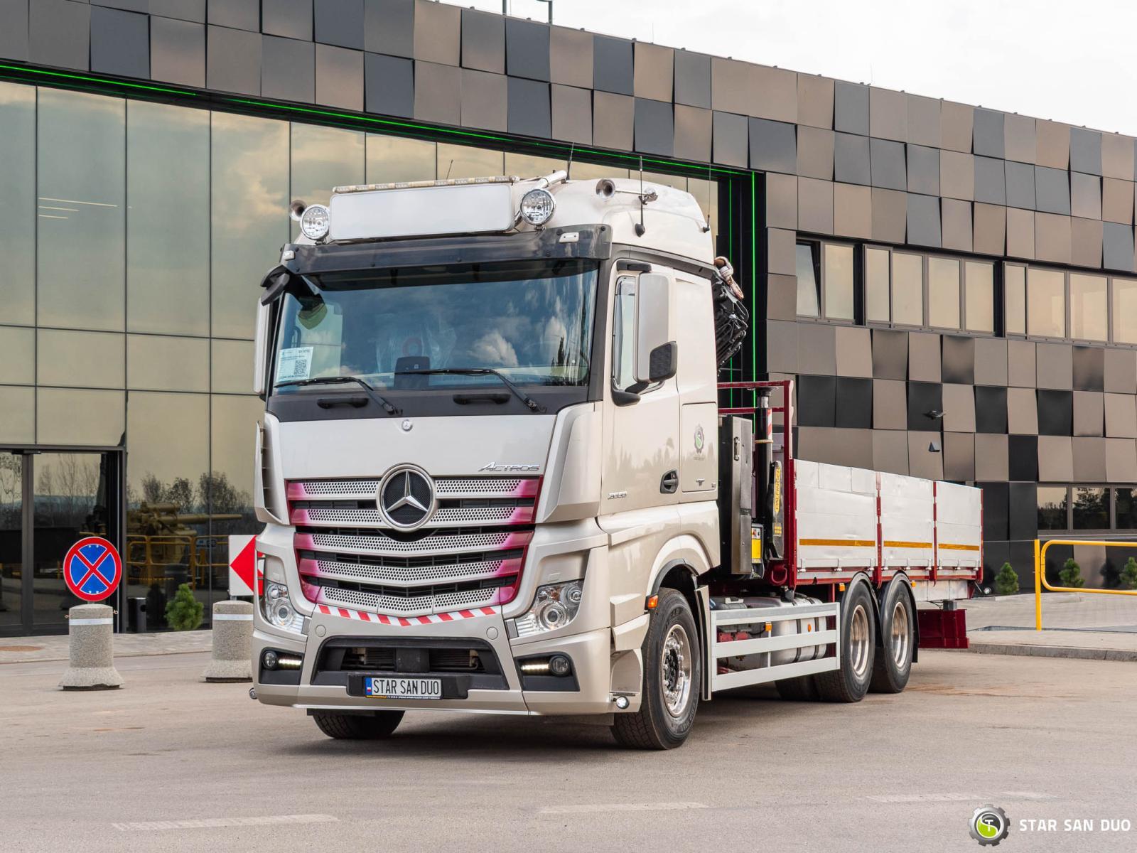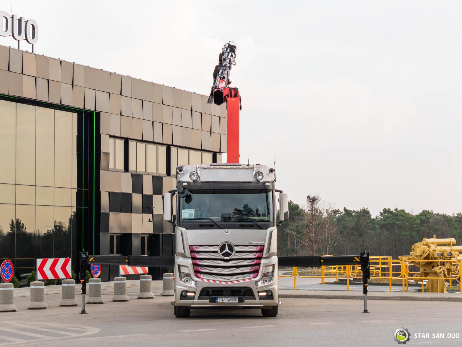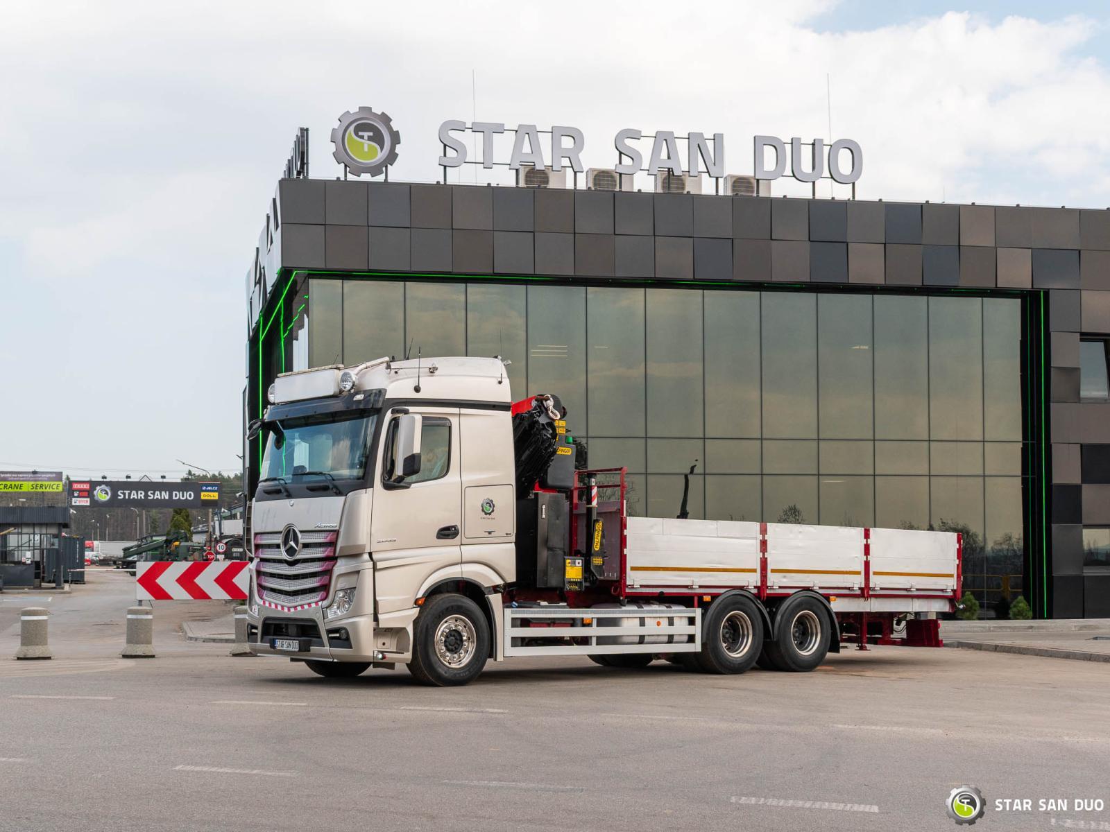 ID No.: 1072 MERCEDES-BENZ ACTROS 2653 6x4 PALFINGER PK 34002 SH ________________________________________ Vehicle specifications: • MERCEDES-BENZ ACTROS 2653 • VIN: WDB96302410143000 • Drive: 6x4 • Year of manufacture: 2017 • First registration: 29.05.2017 • Engine power: 530 HP • Emission standard: Euro 6 • Mileage: 262,072 km • Transmission: Automatic ________________________________________ Crane specifications: • PALFINGER PK 34002 SH • 6 hydraulic lifts • Radio control • Crane operating hours: 3,390 h ________________________________________ Technical parameters: • Curb weight: 17,375 kg • Gross Vehicle Weight (GVW) in Poland: 26,000 kg • Payload: 8,625 kg ________________________________________ Cargo space dimensions: • Length: 6,700 mm • Width: • Height: 800 mm ________________________________________ Wheelbase: • 1-2: 4,600 mm • 2-3: 1,350 mm ________________________________________ Overall vehicle dimensions: • Overall length: 10,700 mm • Overall height: 3,700 mm ________________________________________ Suspension: • Front: mechanical • Rear: air ________________________________________ Additional equipment: • ABS • Central locking • CD player • Electric windows • Towbar • Immobilizer • On-board computer • Factory radio • Tachograph • Power steering • Air conditioning ________________________________________ Additional options: • Bodywork Box truck with aluminum sides ________________________________________ Services: • Authorized service for cranes from FASSI, HIAB, EFFER, and others • Repairs of all brands of cranes and trucks • Spare parts available ________________________________________ Technical inspections and certificates: • We are authorized by the Office of Technical Inspection (UDT) • We conduct inspections and coordinate documentation with UDT • We conduct initial vehicle technical inspections at diagnostic stations ________________________________________ Warranty and preparation for operation: • Possibility to purchase a technical warranty for an additional fee • Professional preparation of the vehicle and crane for operation ________________________________________ Financing: We offer assistance in arranging leasing or a loan for the purchase of a vehicle – ask us for details. ________________________________________ Location: Our headquarters is located in Starachowice. We invite you to inspect the vehicle in person and take a test drive. ________________________________________ Additional Information: Why choose our offer? • Experience and professionalism: We have been selling and servicing 4x4, 6x6, and 8x8 off-road vehicles for years. • Comprehensive service: We provide support with vehicle purchase, financing, and servicing. • Quality guarantee: Each vehicle undergoes a detailed pre-sale inspection, guaranteeing its reliability and roadworthiness. ____________________________________________________ You can find more offers on our sales platform: www.starsanduo-trucks.com ____________________________________________________ Don't wait – contact us today and schedule a vehicle viewing! ____________________________________________________ Legal information: This announcement is for informational purposes only and does not constitute an offer within the meaning of Article 66 §1 of the Civil Code. Our company is not responsible for minor errors, incomplete information, or outdated information.