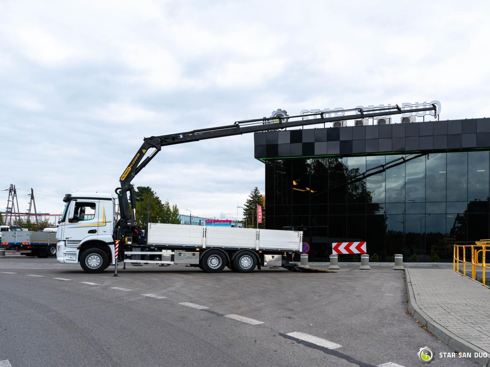 MERCEDES-BENZ AROCS 2532 6x2 PALFINGER PK 22002 EH ID No.: 934 ________________________________________ Vehicle specifications: • Model: Mercedes-Benz Arocs 2532 • VIN: WDB96302010185277 • Drive: 6x2 • Year of manufacture: 2017 • First registration: 07.03.2018 • Engine power: 320 HP • Emission standard: Euro 6 • Mileage: 173,341 km • Transmission: automatic • Suspension: front air / rear air • Curb weight: 13,465 kg • Payload: 12,535 kg • Gross vehicle weight (GVW) in Poland: 26,000 kg • Color: white ________________________________________ Specifications Crane: • PALFINGER PK 22002 EH • 6 hydraulic lifts • Radio control ________________________________________ Technical parameters: • Wheelbase: 4500 / 1350 mm ________________________________________ Cargo space dimensions: • Length: 6600 mm • Width: 2450 mm • Height: 800 mm ________________________________________ Additional equipment: • ABS • Air conditioning • Central locking • Electric windows • On-board computer • Factory radio • Tachograph • Power steering ________________________________________ Additional options: • Liftable and steerable rear axle ________________________________________ Services: • Authorized service center for cranes from FASSI, HIAB, EFFER, and others • Repairs of all crane brands and trucks • Spare parts availability ________________________________________ Technical inspections and certificates: • We are licensed by the Office of Technical Inspection (UDT). • We conduct inspections and coordinate documentation with UDT. • We conduct initial vehicle inspections at Diagnostic Stations. ________________________________________ Warranty and preparation for operation: • Possibility to purchase a technical warranty for an additional fee. • Professional preparation of the vehicle and crane for operation. ________________________________________ Financing: We offer assistance in arranging leasing or a loan for the purchase of a vehicle – ask us for details. ________________________________________ Location: Our headquarters is in Starachowice. We invite you to inspect the vehicle in person and take a test drive. ________________________________________ Additional information: Why choose us? • Experience and professionalism: We have been selling and servicing 4x4, 6x6, and 8x8 off-road vehicles for years. • Comprehensive service: We provide support with vehicle purchase, financing, and servicing. • Quality guarantee: each vehicle undergoes a thorough inspection before sale, guaranteeing its reliability and roadworthiness. ________________________________________ You can find more offers on our sales platform: www.starsanduo-trucks.com ________________________________________ Don't wait – contact us today and schedule a vehicle viewing! ________________________________________ Legal information: This announcement is for informational purposes only and does not constitute an offer within the meaning of Article 66 §1 of the Civil Code. Our company is not responsible for minor errors, incomplete information, or out-of-date information.