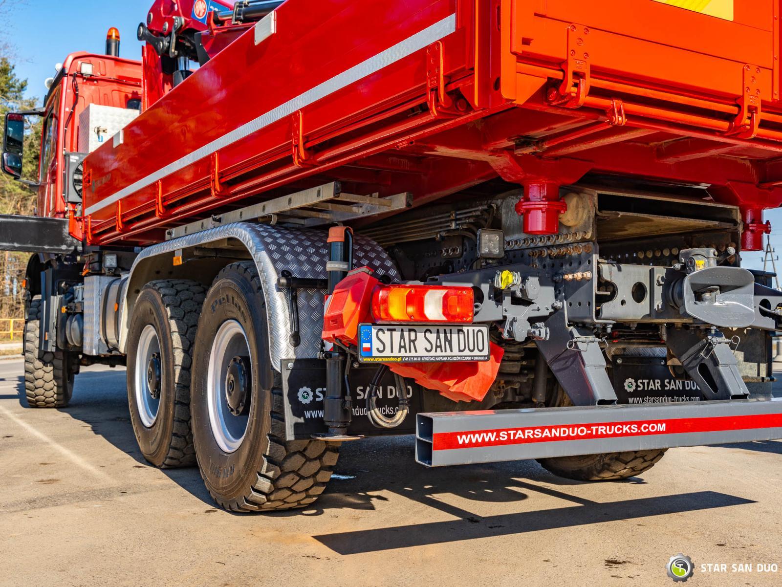 MERCEDES-BENZ AROCS 3345 6x6 HMF 3220 K ID: 908 ________________________________________ Vehicle specifications: • MERCEDES-BENZ AROCS 3345 • VIN: WDB96421810287771 • Drive: 6x6 • Year of manufacture: 2018 • First registration: 08.11.2018 • Engine power: 450 HP • Emission standard: Euro 6 • Mileage: 123,600 km • Gearbox: automatic ________________________________________ Crane specifications: • HMF 3220 K • Control: radio • Number of hydraulic segments: 4 • Hydraulic winch ________________________________________ Technical parameters: • Curb weight: 12,809 kg • Payload: 13,191 kg • Permissible Gross weight: 26,000 kg Cargo space dimensions: • Length: 5200 mm • Width: 2450 mm • Height: 550 mm ________________________________________ Wheelbase: • 1–2: 4750 mm • 2–3: 1450 mm • Rear axle: liftable Suspension: • Front: mechanical • Rear: air ________________________________________ Additional equipment: • ABS • Central locking • CD player • Electric windows • Hook/Cable • Immobilizer • On-board computer • Factory radio • Tachograph • Power steering • Air conditioning ________________________________________ Additional options: • Tipper body ________________________________________ Services: • Authorized service for cranes from FASSI, HIAB, EFFER, and others • Repairs for cranes of all brands and trucks • Spare Parts Availability ________________________________________ Technical Inspections and Certificates: • We are authorized by the Office of Technical Inspection (UDT) • We conduct inspections and coordinate documentation with UDT • We conduct initial vehicle inspections at Diagnostic Stations ________________________________________ Warranty and Operational Readiness: • Possibility to purchase a technical warranty for an additional fee • Professional preparation of the vehicle and crane for operation ________________________________________ Financing: We offer assistance in arranging leasing or a loan for the purchase of a vehicle – ask us for details. ________________________________________ Location: Our headquarters is in Starachowice. We invite you to inspect the vehicle in person and take a test drive. ________________________________________ Additional Information: Why choose us? • Experience and professionalism: We have been selling and servicing 4x4, 6x6, and 8x8 off-road vehicles for years. • Comprehensive service: we provide support with vehicle purchase, financing, and maintenance. • Quality guarantee: each vehicle undergoes a detailed pre-sale inspection, guaranteeing its reliability and roadworthiness. ________________________________________ You can find more offers on our sales platform: www.starsanduo-trucks.com ________________________________________ Don't wait – contact us today and schedule a vehicle viewing! ________________________________________ Legal information: This announcement is for informational purposes only and does not constitute an offer within the meaning of Article 66 § 1 of the Civil Code. Our company is not responsible for minor errors, incomplete information, or outdated information.
