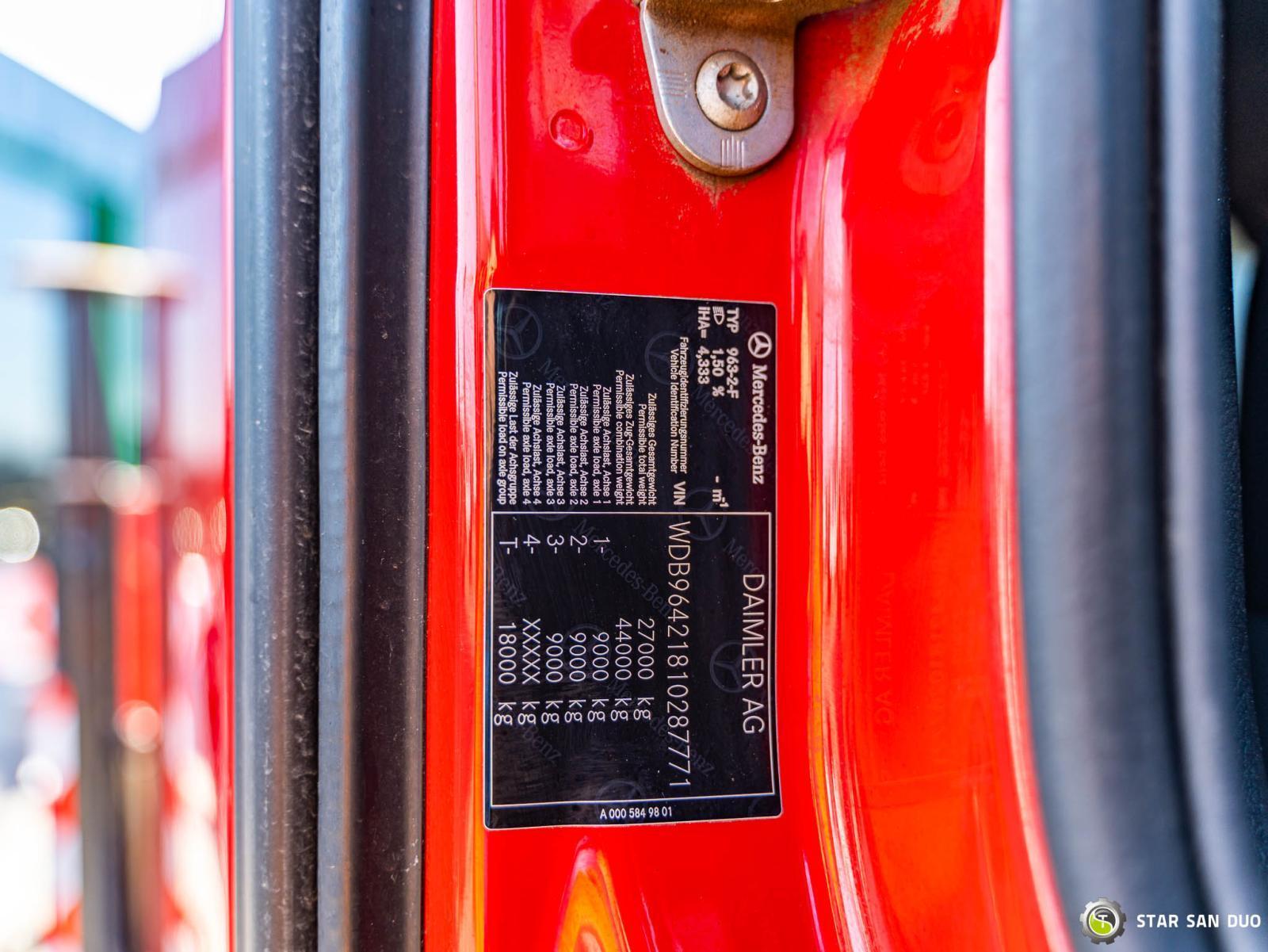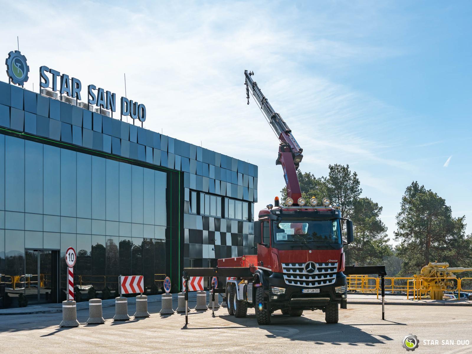 MERCEDES-BENZ AROCS 3345 6x6 HMF 3220 K ID: 908 ________________________________________ Vehicle specifications: • MERCEDES-BENZ AROCS 3345 • VIN: WDB96421810287771 • Drive: 6x6 • Year of manufacture: 2018 • First registration: 08.11.2018 • Engine power: 450 HP • Emission standard: Euro 6 • Mileage: 123,600 km • Gearbox: automatic ________________________________________ Crane specifications: • HMF 3220 K • Control: radio • Number of hydraulic segments: 4 • Hydraulic winch ________________________________________ Technical parameters: • Curb weight: 12,809 kg • Payload: 13,191 kg • Permissible Gross weight: 26,000 kg Cargo space dimensions: • Length: 5200 mm • Width: 2450 mm • Height: 550 mm ________________________________________ Wheelbase: • 1–2: 4750 mm • 2–3: 1450 mm • Rear axle: liftable Suspension: • Front: mechanical • Rear: air ________________________________________ Additional equipment: • ABS • Central locking • CD player • Electric windows • Hook/Cable • Immobilizer • On-board computer • Factory radio • Tachograph • Power steering • Air conditioning ________________________________________ Additional options: • Tipper body ________________________________________ Services: • Authorized service for cranes from FASSI, HIAB, EFFER, and others • Repairs for cranes of all brands and trucks • Spare Parts Availability ________________________________________ Technical Inspections and Certificates: • We are authorized by the Office of Technical Inspection (UDT) • We conduct inspections and coordinate documentation with UDT • We conduct initial vehicle inspections at Diagnostic Stations ________________________________________ Warranty and Operational Readiness: • Possibility to purchase a technical warranty for an additional fee • Professional preparation of the vehicle and crane for operation ________________________________________ Financing: We offer assistance in arranging leasing or a loan for the purchase of a vehicle – ask us for details. ________________________________________ Location: Our headquarters is in Starachowice. We invite you to inspect the vehicle in person and take a test drive. ________________________________________ Additional Information: Why choose us? • Experience and professionalism: We have been selling and servicing 4x4, 6x6, and 8x8 off-road vehicles for years. • Comprehensive service: we provide support with vehicle purchase, financing, and maintenance. • Quality guarantee: each vehicle undergoes a detailed pre-sale inspection, guaranteeing its reliability and roadworthiness. ________________________________________ You can find more offers on our sales platform: www.starsanduo-trucks.com ________________________________________ Don't wait – contact us today and schedule a vehicle viewing! ________________________________________ Legal information: This announcement is for informational purposes only and does not constitute an offer within the meaning of Article 66 § 1 of the Civil Code. Our company is not responsible for minor errors, incomplete information, or outdated information.