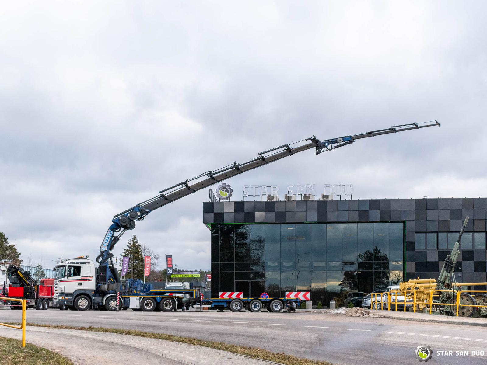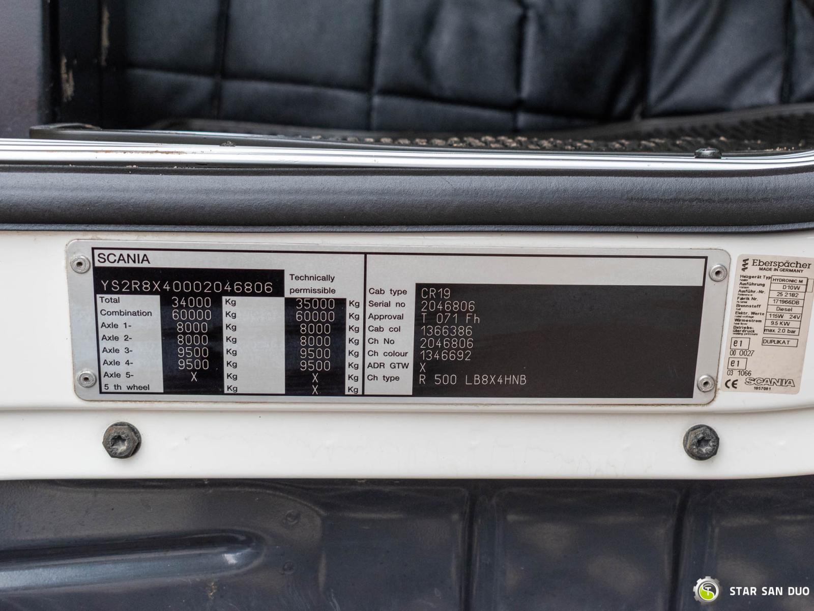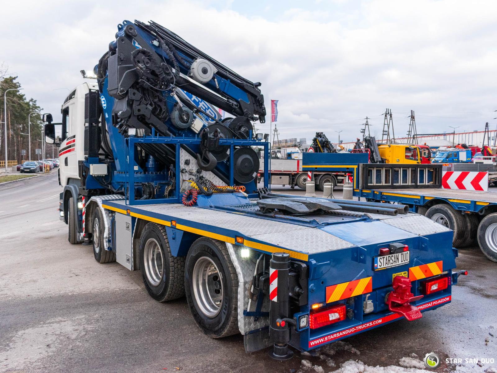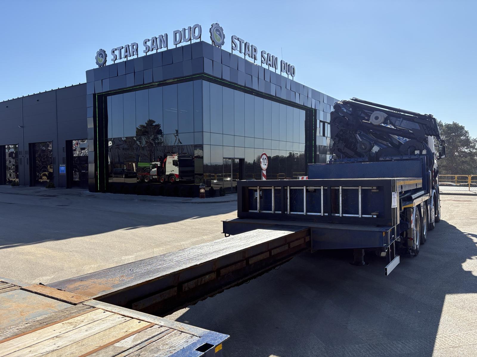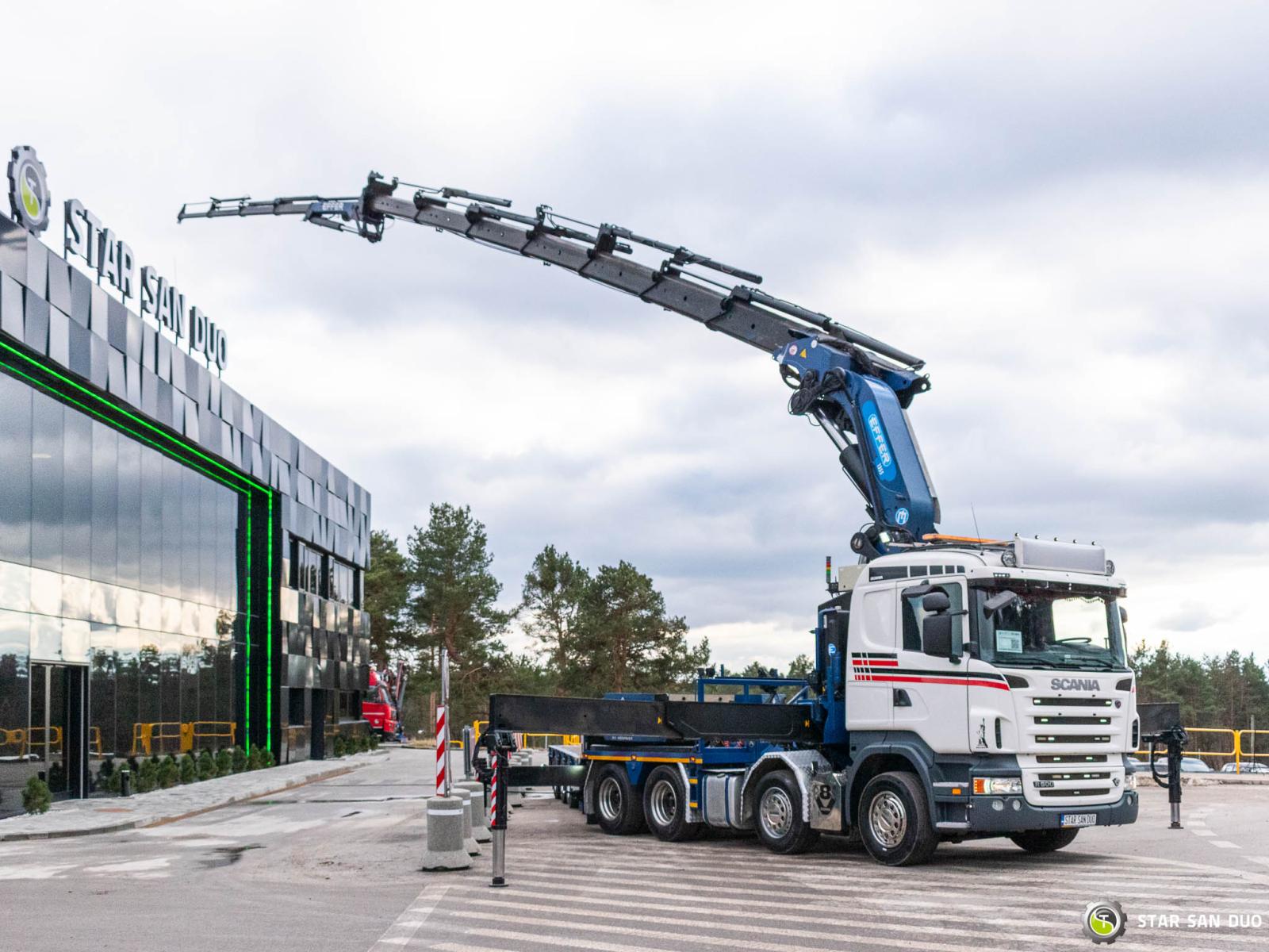 SCANIA R500 8x4 EFFER 1355/7S + M&V RZOC-3T3 Note: price applies to truck with crane only. Trailer available separately. ID No.: 1055 ________________________________________ Vehicle specifications: • SCANIA R500 • VIN: YS2R8X40002046806 • Drive: 8x4 • Year of manufacture: 2009 • First registration: 29.06.2009 • Engine power: 500 HP • Emission standard: Euro 5 • Mileage: 369,623 km • Gearbox: Automatic ________________________________________ Crane specifications: • EFFER 1355/7S • 7 hydraulic segments + 4 Fly Jib segments • Winch on crane • Radio control ________________________________________ Technical parameters: • Curb weight: 25,800 kg • Permissible Gross vehicle weight (GVW) in Poland: 32,000 kg • Payload (calculated): 6,200 kg ________________________________________ Vehicle dimensions: • Overall length: 8,600 mm • Overall height: 3,800 mm • Wheelbase: • 1-2: 1,900 mm • 2-3: 2,300 mm • 3-4: 1,370 mm ________________________________________ Additional equipment: • ABS • Central locking • CD player • Electric windows • Towbar • Immobilizer • On-board computer • Factory radio • Tachograph • Power steering • Air conditioning ________________________________________ Set with trailer: M&V RZOC-3T3 • VIN: WMP3ZTA547CBL0965 • Year of production: 2007 • 3 axles • Empty weight: 11,000 kg • GVW: 40,000 kg • Technical GVW: 54,000 kg • Maximum axle load: 24,000 kg • Loading space length: 3,100 mm + 7,000 mm • Width: 2,500 mm • The trailer has the possibility to extend the platform by 3500 mm. ________________________________________ Services: • Authorized service for cranes from FASSI, HIAB, EFFER, and others • Repairs of all crane brands and trucks • Spare parts availability ________________________________________ Technical inspections and certificates: • We are authorized by the Office of Technical Inspection (UDT) • We conduct inspections and coordinate documentation with UDT • We perform initial technical inspections of the vehicle at Diagnostic Stations ________________________________________ Warranty and preparation for operation: • Possibility to purchase a technical warranty for an additional fee • Professional preparation of the vehicle and crane for Work ________________________________________ Financing: We offer assistance in arranging a lease or loan for the purchase of a vehicle - ask us for details. ________________________________________ Location: Our headquarters is in Starachowice. We invite you to inspect the vehicle in person and take it for a test drive. ________________________________________ Additional Information: Why choose our offer? • Experience and professionalism - we have been selling and servicing 4x4, 6x6, and 8x8 off-road vehicles for years. • Comprehensive service - we provide support with the purchase, financing, and servicing of vehicles. • Quality guarantee - each vehicle undergoes a detailed pre-sale inspection, guaranteeing its operational reliability. ________________________________________ You can find more offers on our sales platform: www.starsanduo-trucks.com ________________________________________ Don't wait - contact us today and schedule a vehicle viewing! ________________________________________ Legal information: This announcement is for informational purposes only and does not constitute an offer within the meaning of Article 66 § 1 of the Civil Code. Our company is not responsible for minor errors, incomplete information, or out-of-date information.
