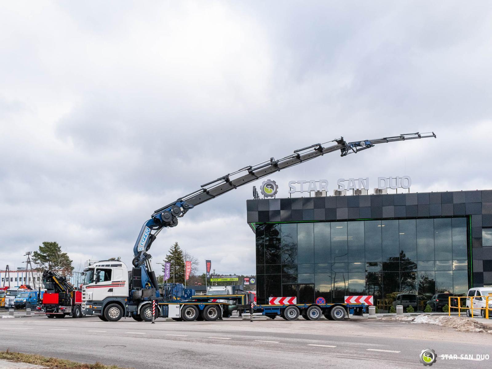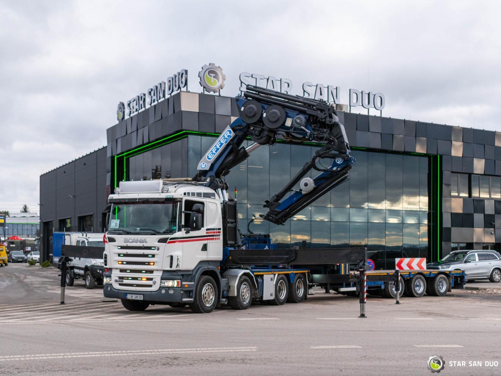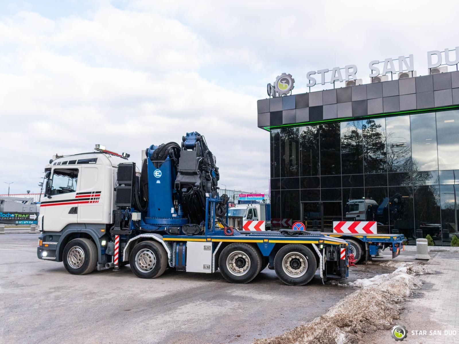 SCANIA R500 8x4 EFFER 1355/7S + M&V RZOC-3T3 Note: price applies to truck with crane only. Trailer available separately. ID No.: 1055 ________________________________________ Vehicle specifications: • SCANIA R500 • VIN: YS2R8X40002046806 • Drive: 8x4 • Year of manufacture: 2009 • First registration: 29.06.2009 • Engine power: 500 HP • Emission standard: Euro 5 • Mileage: 369,623 km • Gearbox: Automatic ________________________________________ Crane specifications: • EFFER 1355/7S • 7 hydraulic segments + 4 Fly Jib segments • Winch on crane • Radio control ________________________________________ Technical parameters: • Curb weight: 25,800 kg • Permissible Gross vehicle weight (GVW) in Poland: 32,000 kg • Payload (calculated): 6,200 kg ________________________________________ Vehicle dimensions: • Overall length: 8,600 mm • Overall height: 3,800 mm • Wheelbase: • 1-2: 1,900 mm • 2-3: 2,300 mm • 3-4: 1,370 mm ________________________________________ Additional equipment: • ABS • Central locking • CD player • Electric windows • Towbar • Immobilizer • On-board computer • Factory radio • Tachograph • Power steering • Air conditioning ________________________________________ Set with trailer: M&V RZOC-3T3 • VIN: WMP3ZTA547CBL0965 • Year of production: 2007 • 3 axles • Empty weight: 11,000 kg • GVW: 40,000 kg • Technical GVW: 54,000 kg • Maximum axle load: 24,000 kg • Loading space length: 3,100 mm + 7,000 mm • Width: 2,500 mm • The trailer has the possibility to extend the platform by 3500 mm. ________________________________________ Services: • Authorized service for cranes from FASSI, HIAB, EFFER, and others • Repairs of all crane brands and trucks • Spare parts availability ________________________________________ Technical inspections and certificates: • We are authorized by the Office of Technical Inspection (UDT) • We conduct inspections and coordinate documentation with UDT • We perform initial technical inspections of the vehicle at Diagnostic Stations ________________________________________ Warranty and preparation for operation: • Possibility to purchase a technical warranty for an additional fee • Professional preparation of the vehicle and crane for Work ________________________________________ Financing: We offer assistance in arranging a lease or loan for the purchase of a vehicle - ask us for details. ________________________________________ Location: Our headquarters is in Starachowice. We invite you to inspect the vehicle in person and take it for a test drive. ________________________________________ Additional Information: Why choose our offer? • Experience and professionalism - we have been selling and servicing 4x4, 6x6, and 8x8 off-road vehicles for years. • Comprehensive service - we provide support with the purchase, financing, and servicing of vehicles. • Quality guarantee - each vehicle undergoes a detailed pre-sale inspection, guaranteeing its operational reliability. ________________________________________ You can find more offers on our sales platform: www.starsanduo-trucks.com ________________________________________ Don't wait - contact us today and schedule a vehicle viewing! ________________________________________ Legal information: This announcement is for informational purposes only and does not constitute an offer within the meaning of Article 66 § 1 of the Civil Code. Our company is not responsible for minor errors, incomplete information, or out-of-date information.
