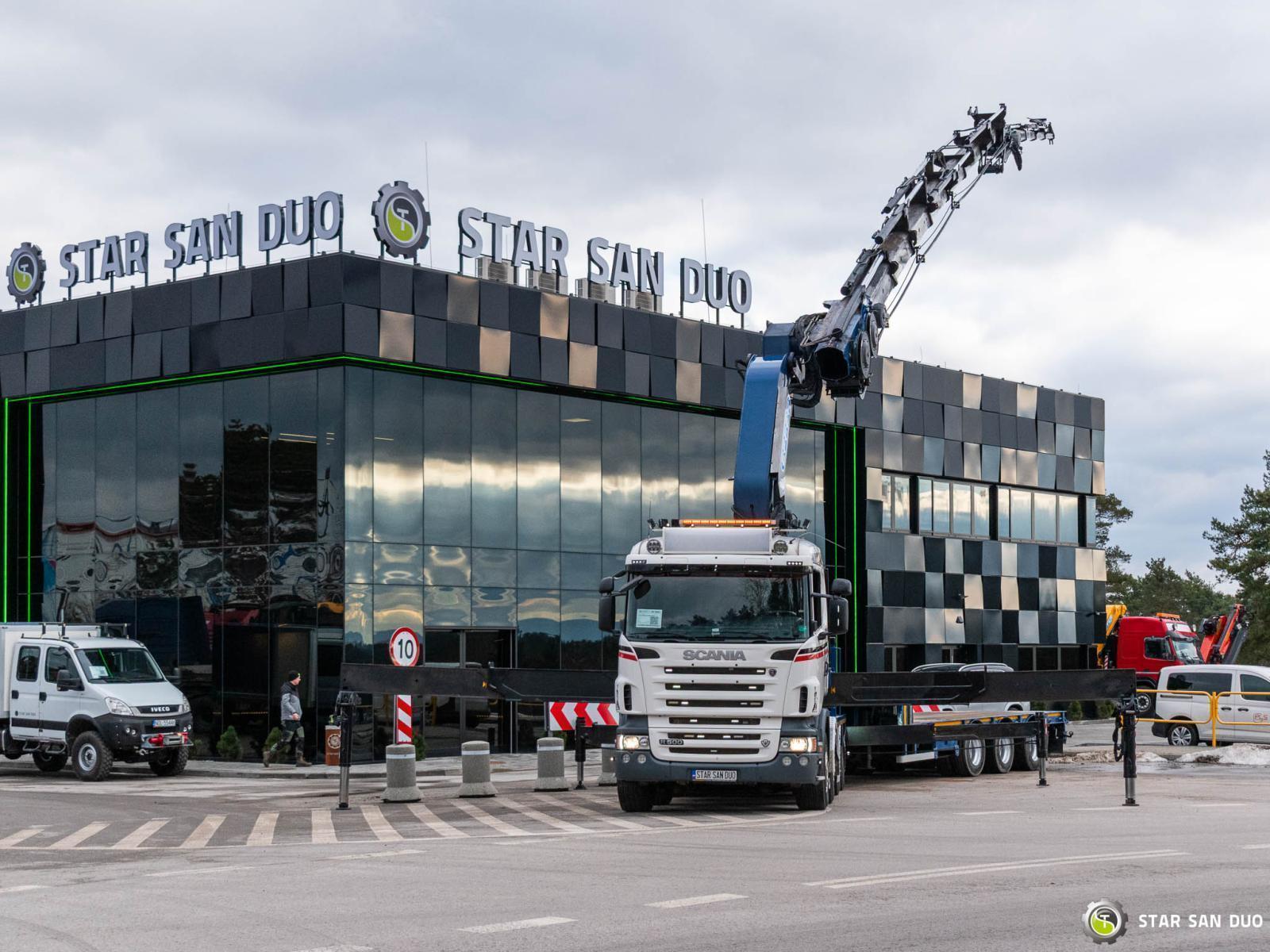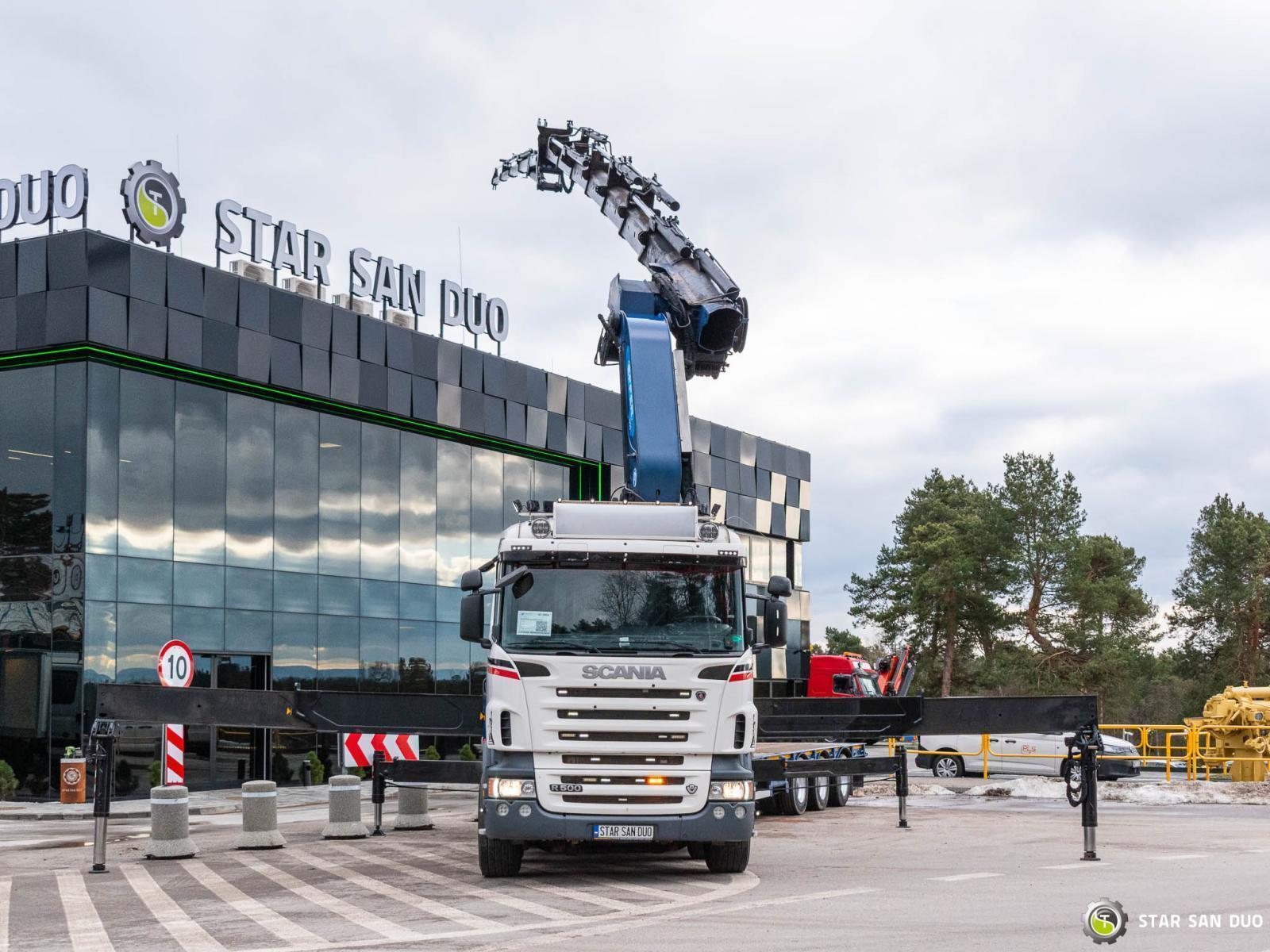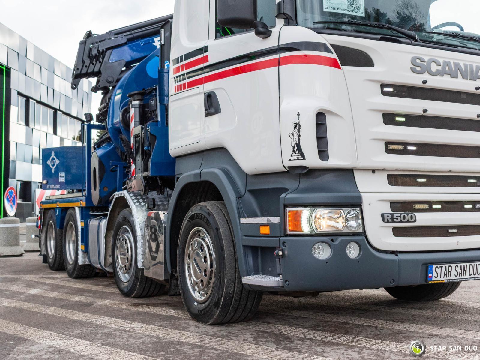 SCANIA R500 8x4 EFFER 1355/7S + M&V RZOC-3T3 Note: price applies to truck with crane only. Trailer available separately. ID No.: 1055 ________________________________________ Vehicle specifications: • SCANIA R500 • VIN: YS2R8X40002046806 • Drive: 8x4 • Year of manufacture: 2009 • First registration: 29.06.2009 • Engine power: 500 HP • Emission standard: Euro 5 • Mileage: 369,623 km • Gearbox: Automatic ________________________________________ Crane specifications: • EFFER 1355/7S • 7 hydraulic segments + 4 Fly Jib segments • Winch on crane • Radio control ________________________________________ Technical parameters: • Curb weight: 25,800 kg • Permissible Gross vehicle weight (GVW) in Poland: 32,000 kg • Payload (calculated): 6,200 kg ________________________________________ Vehicle dimensions: • Overall length: 8,600 mm • Overall height: 3,800 mm • Wheelbase: • 1-2: 1,900 mm • 2-3: 2,300 mm • 3-4: 1,370 mm ________________________________________ Additional equipment: • ABS • Central locking • CD player • Electric windows • Towbar • Immobilizer • On-board computer • Factory radio • Tachograph • Power steering • Air conditioning ________________________________________ Set with trailer: M&V RZOC-3T3 • VIN: WMP3ZTA547CBL0965 • Year of production: 2007 • 3 axles • Empty weight: 11,000 kg • GVW: 40,000 kg • Technical GVW: 54,000 kg • Maximum axle load: 24,000 kg • Loading space length: 3,100 mm + 7,000 mm • Width: 2,500 mm • The trailer has the possibility to extend the platform by 3500 mm. ________________________________________ Services: • Authorized service for cranes from FASSI, HIAB, EFFER, and others • Repairs of all crane brands and trucks • Spare parts availability ________________________________________ Technical inspections and certificates: • We are authorized by the Office of Technical Inspection (UDT) • We conduct inspections and coordinate documentation with UDT • We perform initial technical inspections of the vehicle at Diagnostic Stations ________________________________________ Warranty and preparation for operation: • Possibility to purchase a technical warranty for an additional fee • Professional preparation of the vehicle and crane for Work ________________________________________ Financing: We offer assistance in arranging a lease or loan for the purchase of a vehicle - ask us for details. ________________________________________ Location: Our headquarters is in Starachowice. We invite you to inspect the vehicle in person and take it for a test drive. ________________________________________ Additional Information: Why choose our offer? • Experience and professionalism - we have been selling and servicing 4x4, 6x6, and 8x8 off-road vehicles for years. • Comprehensive service - we provide support with the purchase, financing, and servicing of vehicles. • Quality guarantee - each vehicle undergoes a detailed pre-sale inspection, guaranteeing its operational reliability. ________________________________________ You can find more offers on our sales platform: www.starsanduo-trucks.com ________________________________________ Don't wait - contact us today and schedule a vehicle viewing! ________________________________________ Legal information: This announcement is for informational purposes only and does not constitute an offer within the meaning of Article 66 § 1 of the Civil Code. Our company is not responsible for minor errors, incomplete information, or out-of-date information.