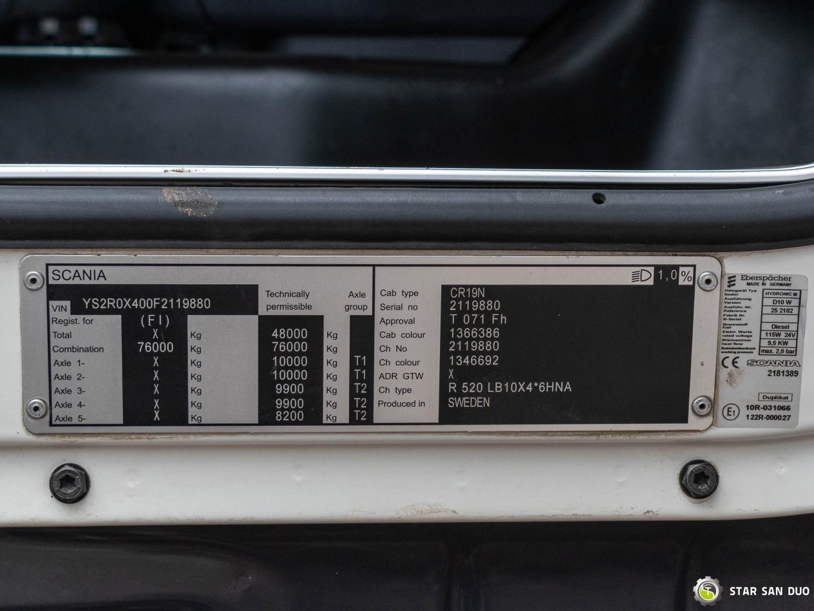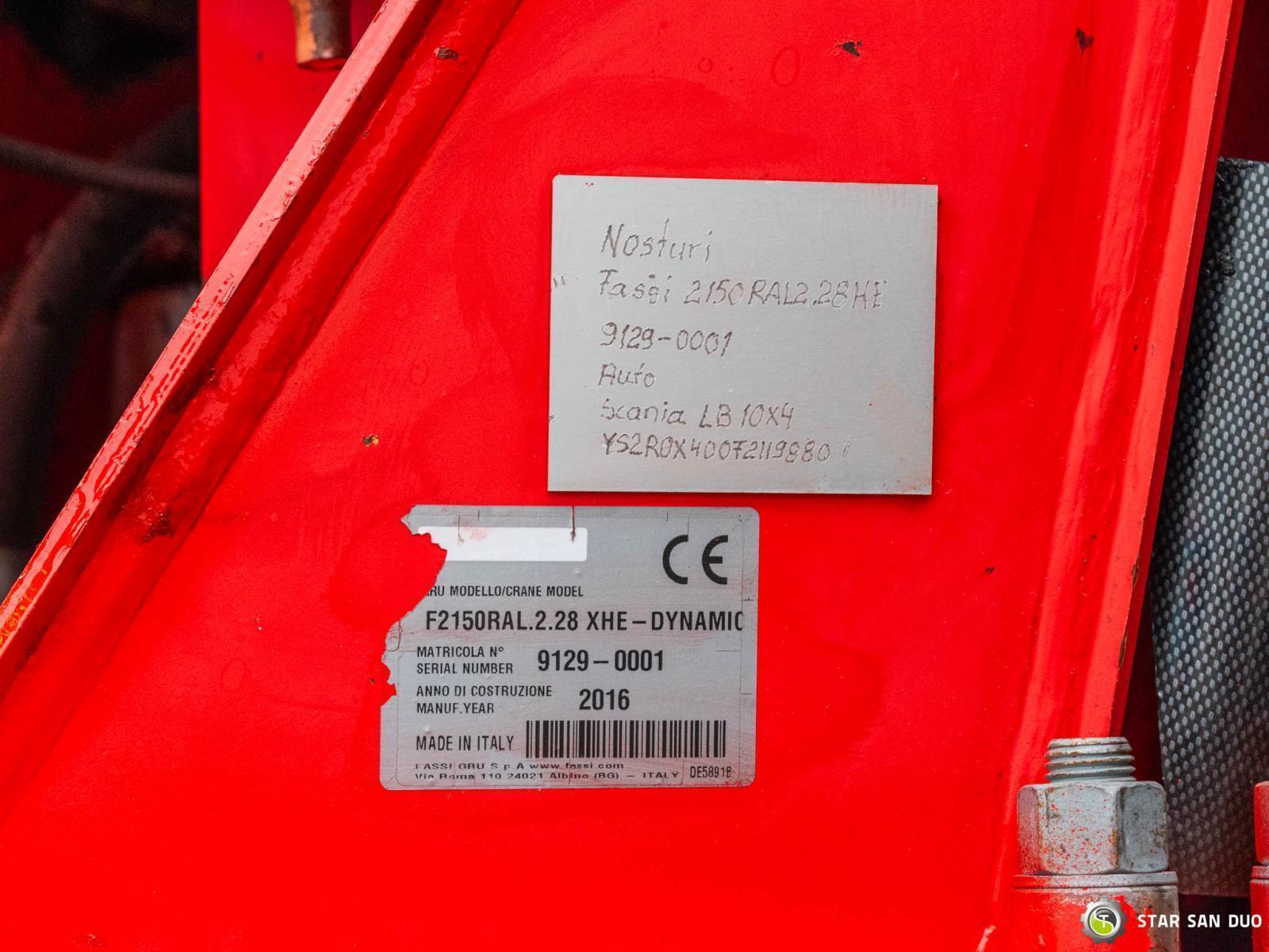 The price listed in the advertisement is an example of an initial lease payment. Financing details and a full calculation are prepared individually upon request. SCANIA R520 10x4 FASSI F2150RAL.2.28 ID: 1052 ________________________________________ Vehicle specifications: • SCANIA R520 • VIN: YS2R0X400F2119880 • Drive: 10x4 • Year of manufacture: 2016 • First registration: 11/03/2016 • Engine power: 520 HP • Emission standard: Euro 6 • Mileage: 120,904 km • Gearbox: Automatic ________________________________________ Crane specifications: • FASSI F2150RAL.2.28 XHE-dynamic • 8 hydraulic segments + 6 Fly Jib segments • Winch on the crane • Radio control ________________________________________ Technical parameters: • Curb weight: 38,600 kg • Technically Gross Vehicle Weight: 48,000 kg ________________________________________ Cargo Space Dimensions: • Length: 6,000 mm • Width: 2,500 mm Overall Length: 11,800 mm Overall Height: 4,100 mm ________________________________________ Wheelbase: • 1-2: 1,940 mm • 2-3: 2,960 mm • 3-4: 1,350 mm • 4-5: 1,800 mm • Liftable Last Axle ________________________________________ Additional Equipment: • ABS • Central Locking • CD • Electric Windows • Tow Bar • Immobilizer • On-board Computer • Factory Radio • Tachograph • Power Steering • Air Conditioning ________________________________________ Additional Options: • Vehicle equipped with a retractable rear beam ____________________________________________________ Services: • Authorized service for cranes from FASSI, HIAB, EFFER, and others • Repairs of all brands of cranes and trucks • Spare parts available ____________________________________________________ Technical inspections and certificates: • We are authorized by the Office of Technical Inspection (UDT) • We conduct inspections and coordinate documentation with UDT • We conduct initial vehicle technical inspections at Diagnostic Stations ____________________________________________________ Warranty and preparation for operation: • Possibility to purchase a technical warranty for an additional fee • Professional preparation of the vehicle and crane for operation ____________________________________________________ Financing: We offer assistance in arranging leasing or a loan for the purchase of a vehicle - ask us for details. ____________________________________________________ Location: Our office is in Starachowice. We invite you to inspect the vehicle in person and take a test drive. ____________________________________________________ Additional information: Why choose our offer? • Experience and professionalism: We have been selling and servicing 4x4, 6x6, 8x8, and 10x4 off-road vehicles for years. • Comprehensive service: We provide support with vehicle purchase, financing, and maintenance. • Quality guarantee: Each vehicle undergoes a detailed pre-sale inspection, guaranteeing its reliability and roadworthiness. ________________________________________ You can find more offers on our sales platform: www.starsanduo-trucks.com ________________________________________ Don't wait - contact us today and schedule a vehicle viewing! ________________________________________ Legal information: This announcement is for informational purposes only and does not constitute an offer within the meaning of Article 66 § 1 of the Civil Code. Our company is not responsible for minor errors, incomplete information, or outdated information.